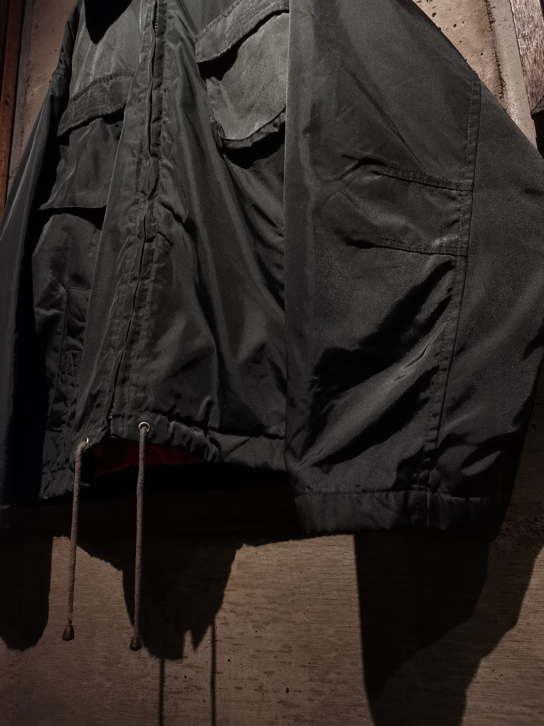 鈍く光沢を放つ、ガンメタルグレーのタフなナイロンボディに、両胸に大ぶりなスラップポケットをON。裾にはドローコードを施した、シンプルルックスながらギミックにグッとくる逸品。