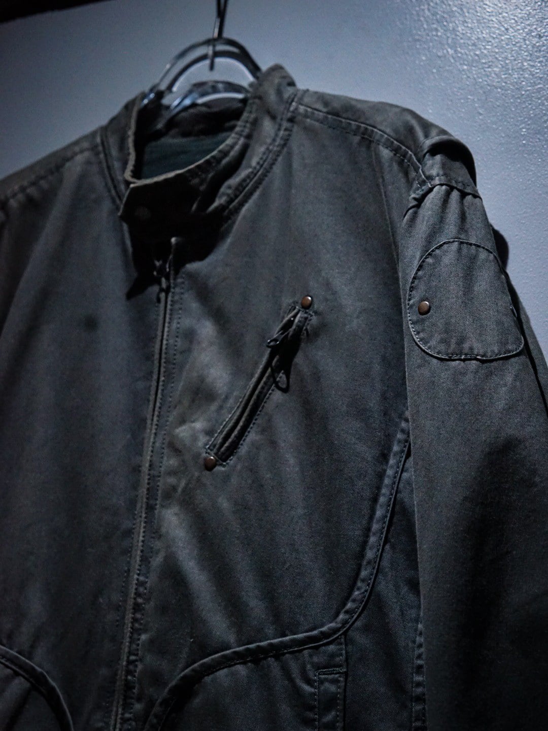 フェード感のあるハリのあるボディに、フロントには象徴的な切り替えにスラッシュポケット、左胸にはジップポケットなどのギミックを施し、シングルのライダース型に落とし込んだ逸品。
