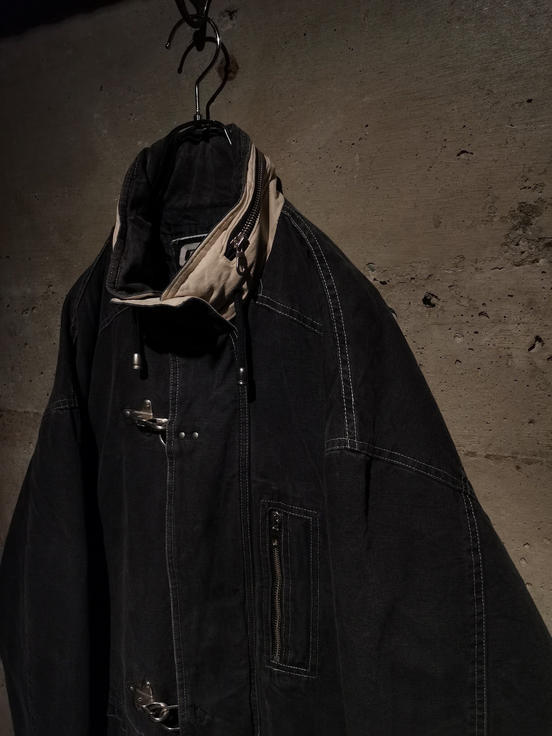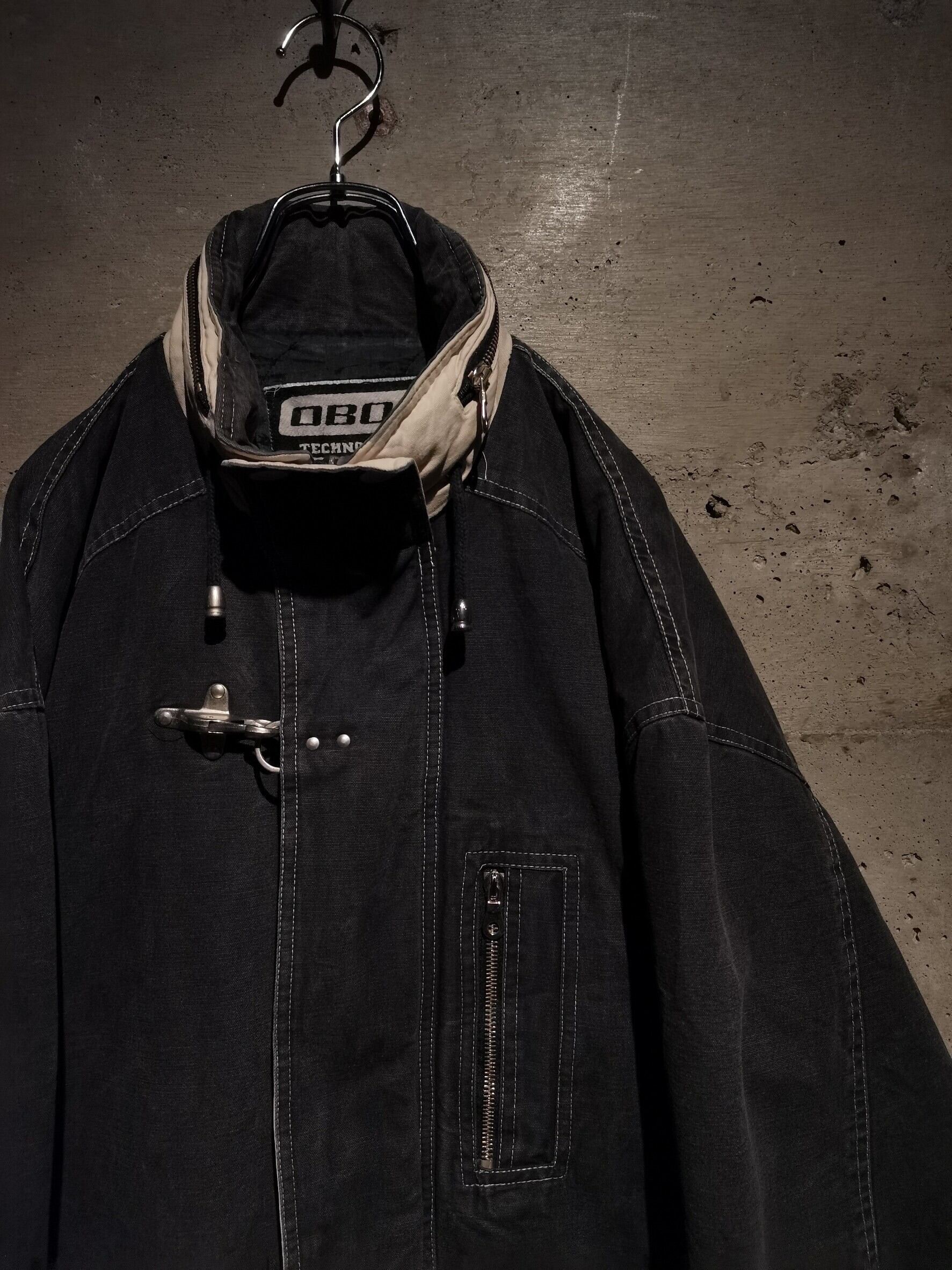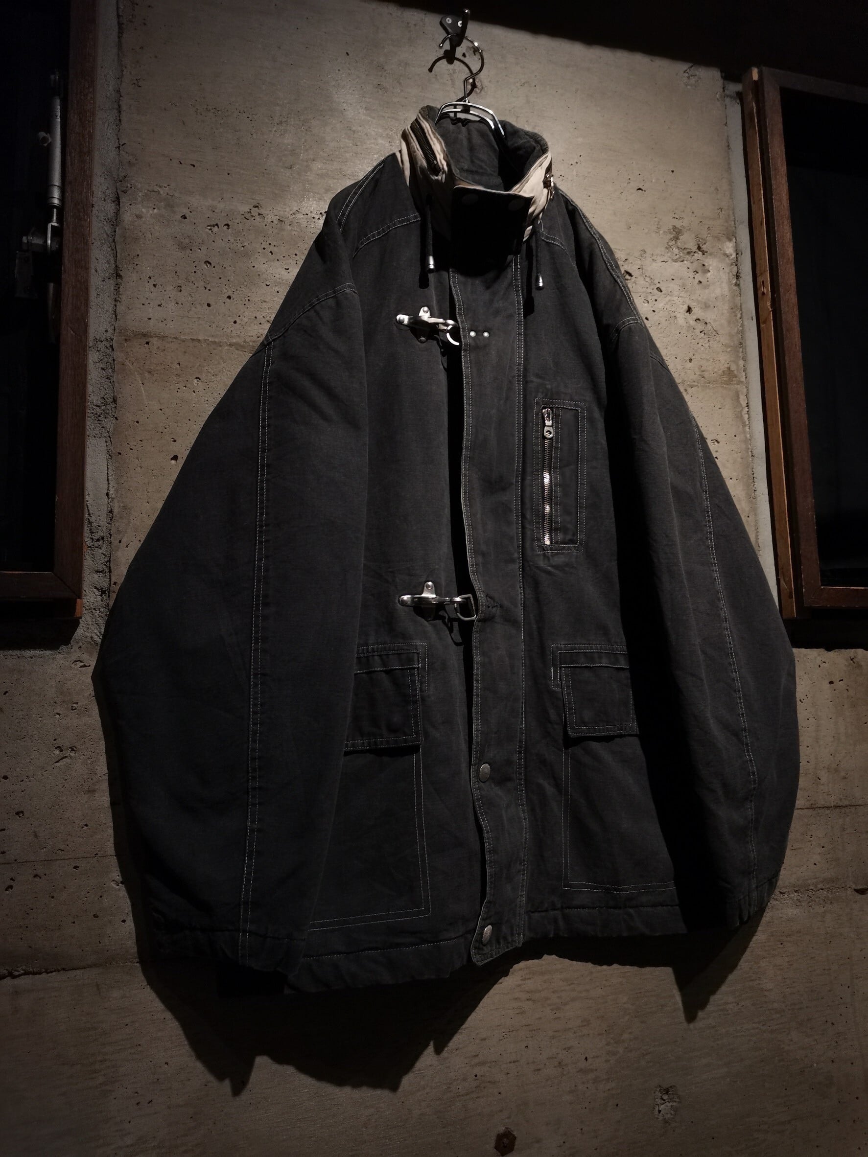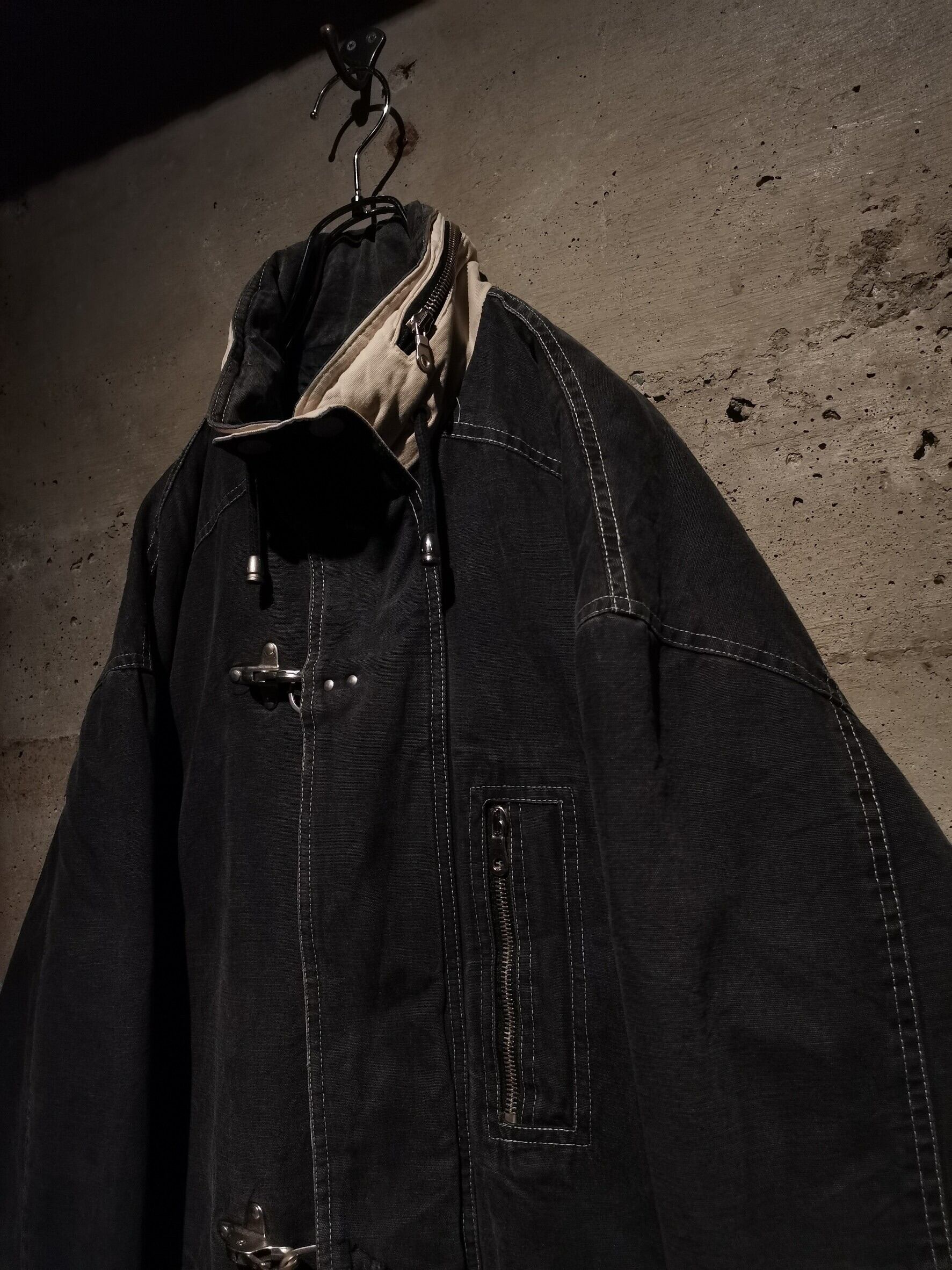 フェードしたダック地をベースに、数多くの有名ブランドがサンプリングするファイヤーマンギミックを載せたパデットジャケット。