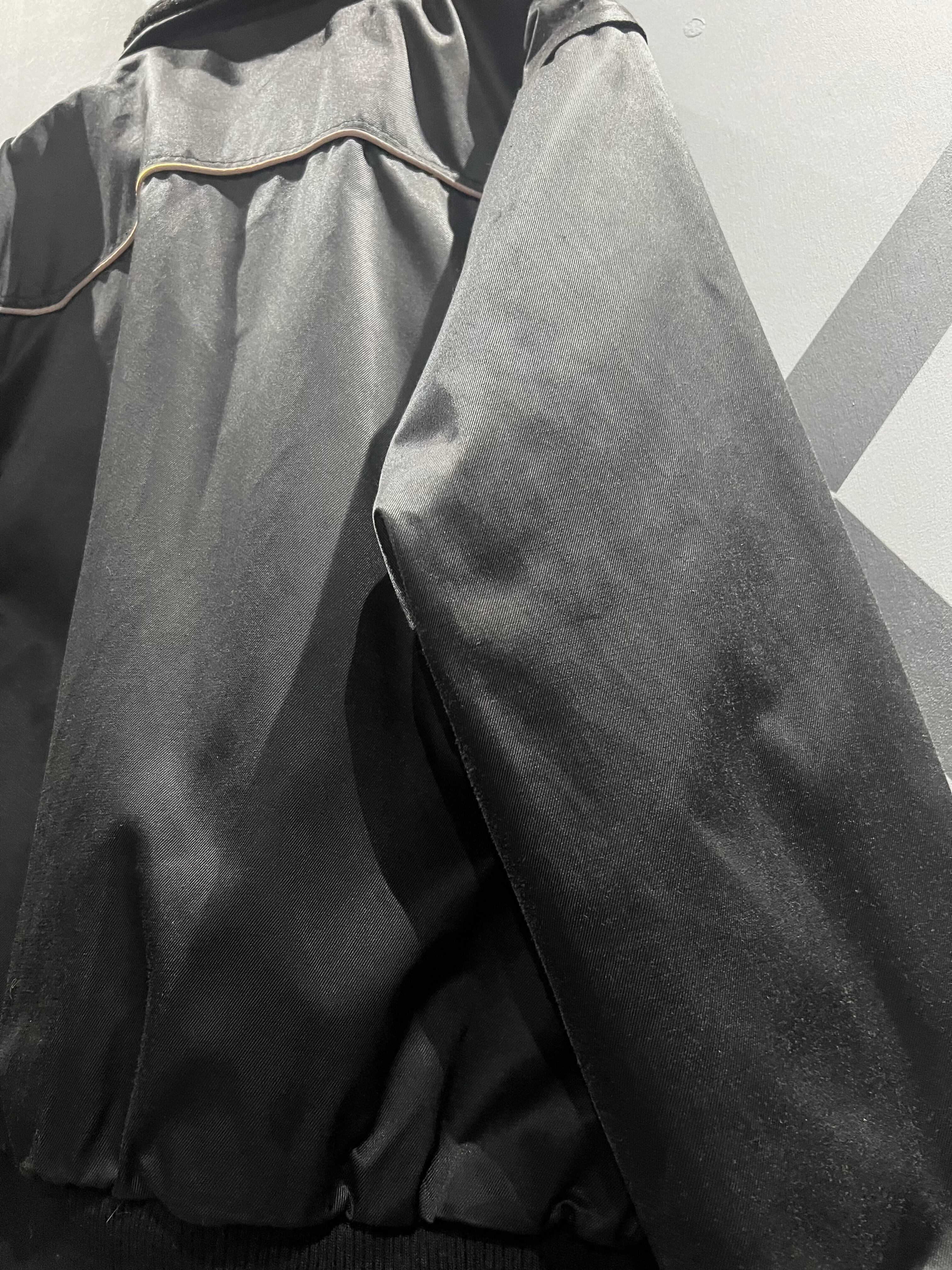 光沢のあるタフなブラックのボディをベースに、様々なギミックを盛り込んだ、フライトジャケットをデザインソースとした1着。