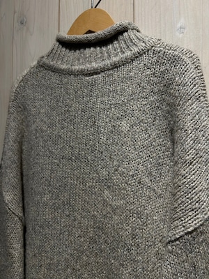 ロールネックの仕様が首元に程良い抜け感を演出。サイズ感もルーズに着用できるゆったりとしたサイジングで、1枚での着用でもバチっとキマります。アクリル×コットン×ウールから成る梱包素材をボディに用いたことで、肉感を持ちながらもサラッとした着心地に仕上げられており、保温性と着心地の双方において優れているのも非常に嬉しいポイントかと。