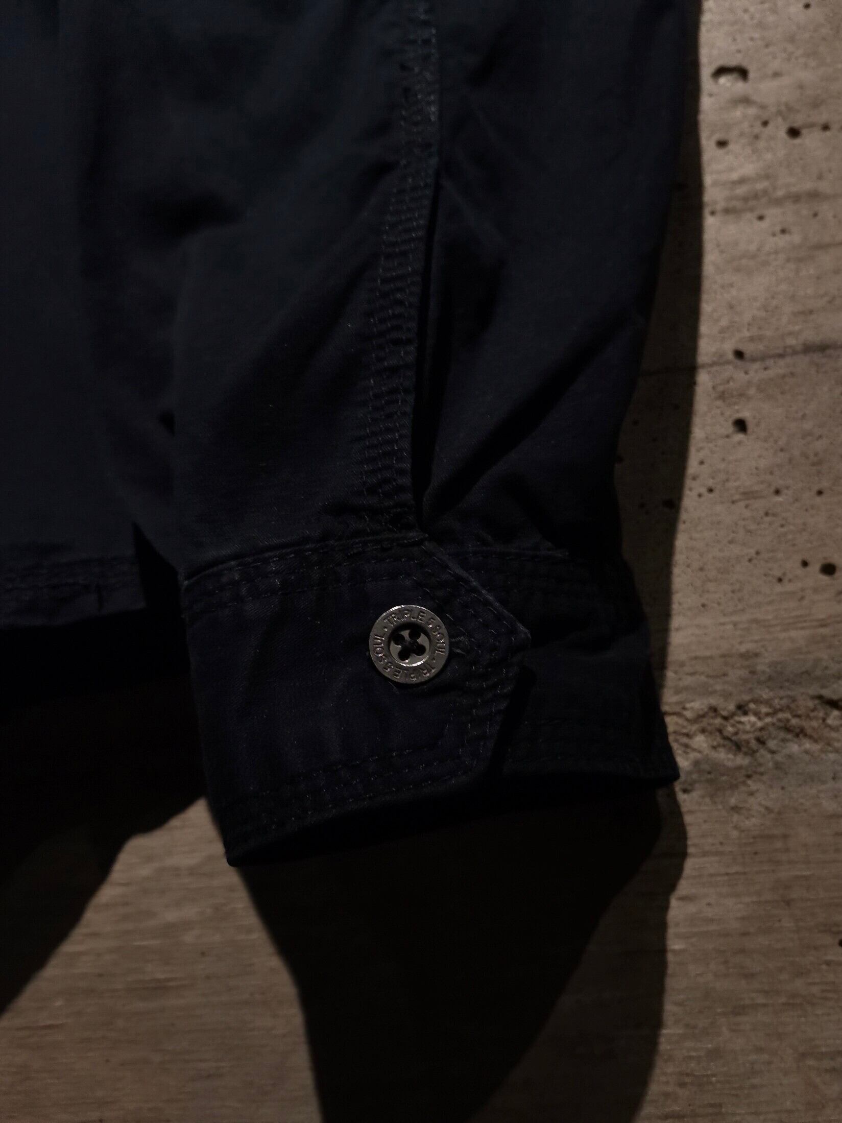 両胸には立体感のあるフラップポケット、フロントはボタンとジップの2WAY。プレーンなシャツジャケットですが、柄の切り替え、盛り込まれたギミックからはこのブランドのハイなプロダクトが垣間見えます。