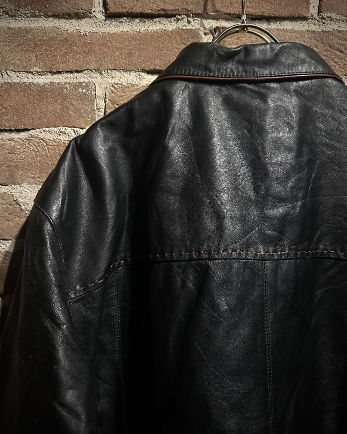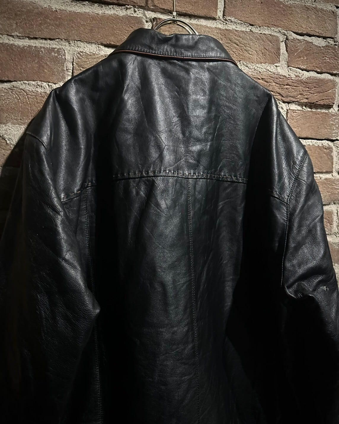 そしてレザーならではの光沢も素晴らしく、この渋い表情に古着好きの心をグッと鷲掴みにされますね、、、レザーなのでさらに着用を重ねることで表情に深みがグッと増していきます。