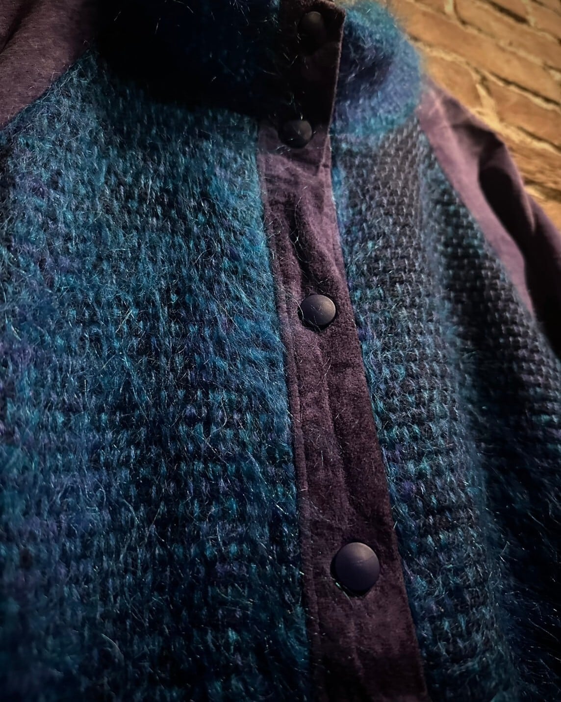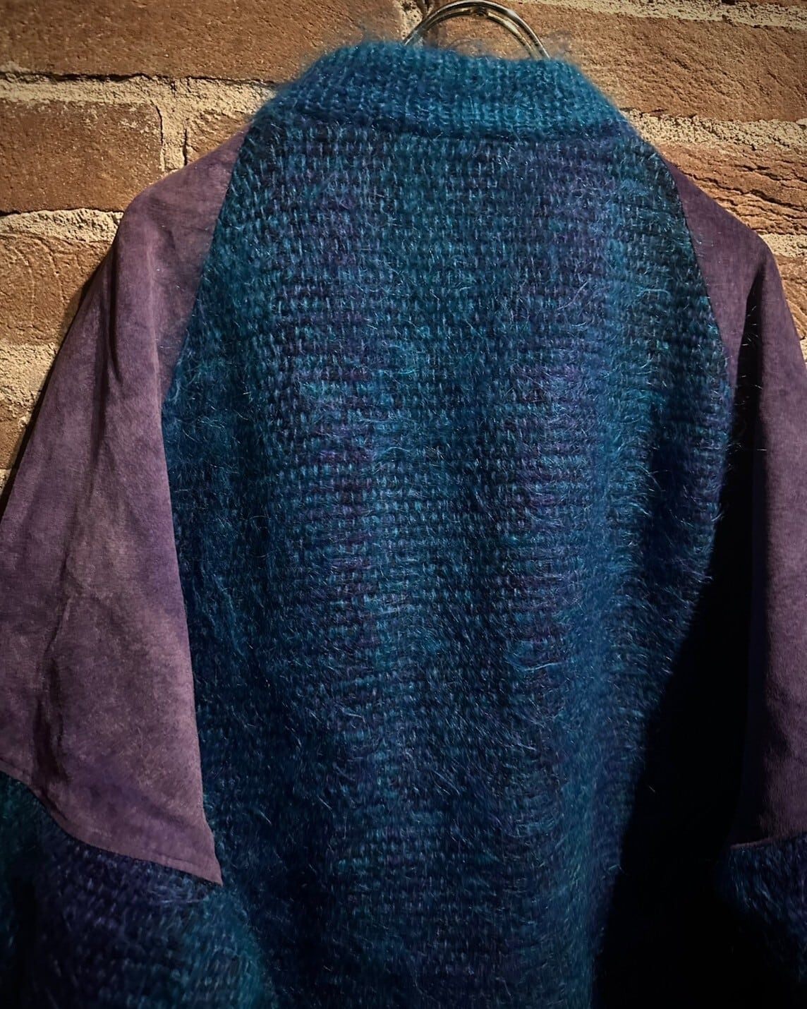 近年古着市場でも大変稀少なジャンルとなり、相場もグンッと上がってきているモヘアアイテムより、巧みなレザーによるデザインを載せたスペシャルな1着をご紹介致します。