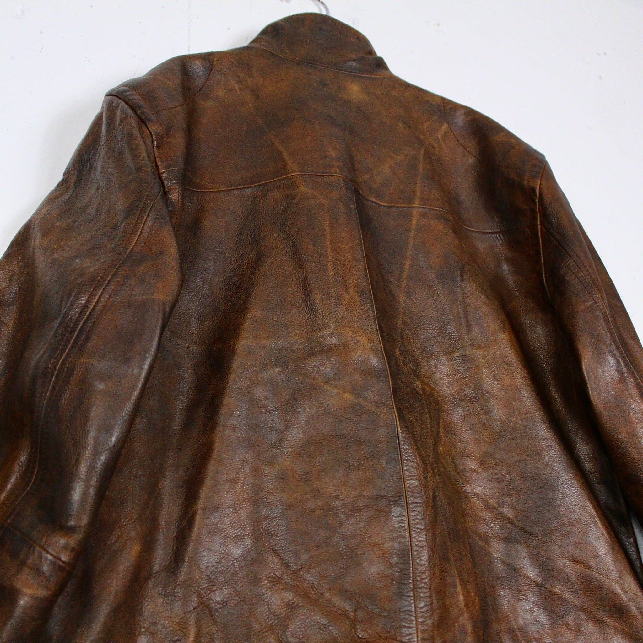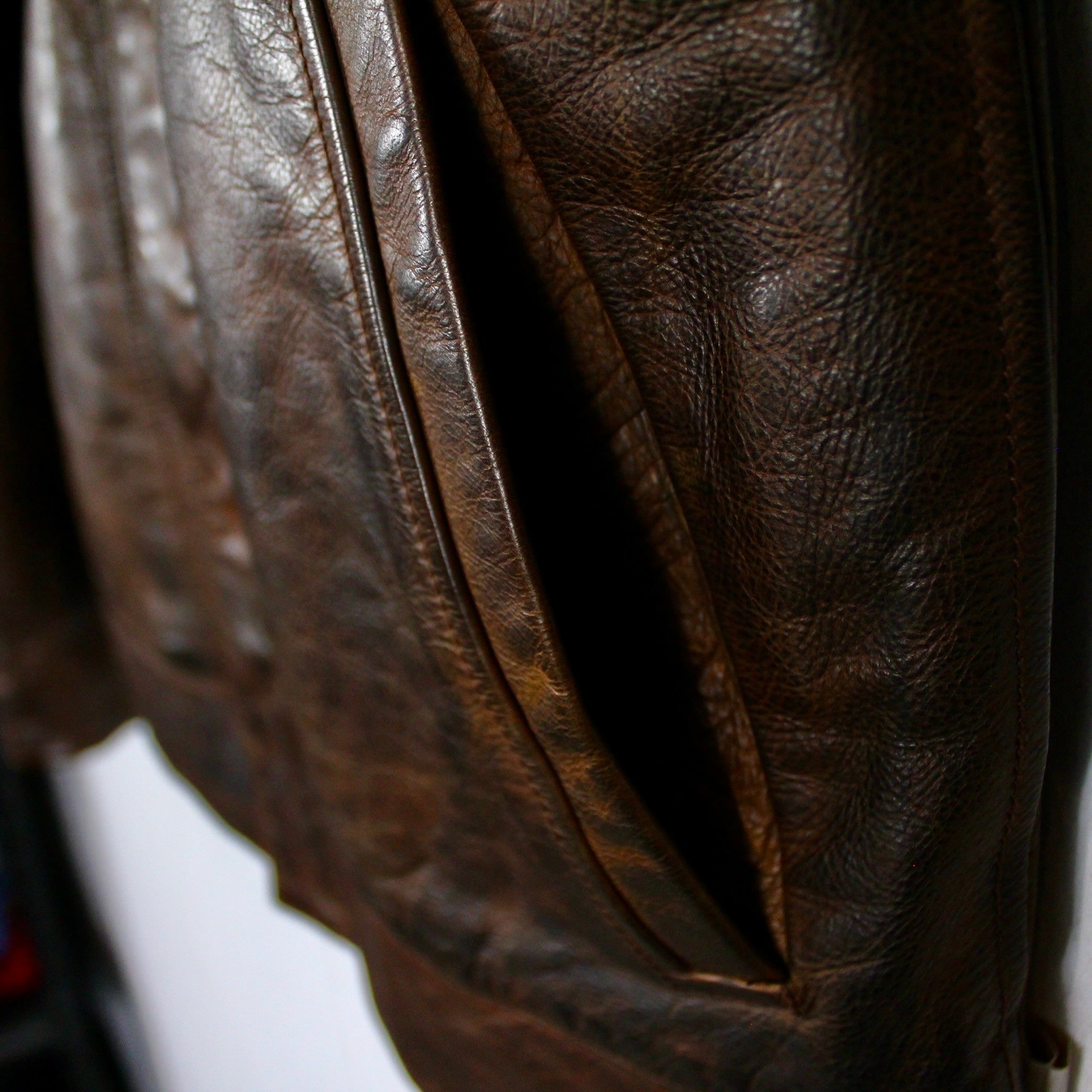 美しいエイジングを効かせた、ガシッとした無骨な風合いを持つブラウンレザーを使用した逸品。