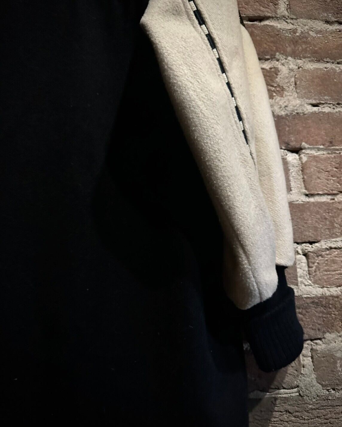 白×黒のパイピングがデザインのアクセントになりつつ、より一層このアイテムの唯一無二感を演出しています。