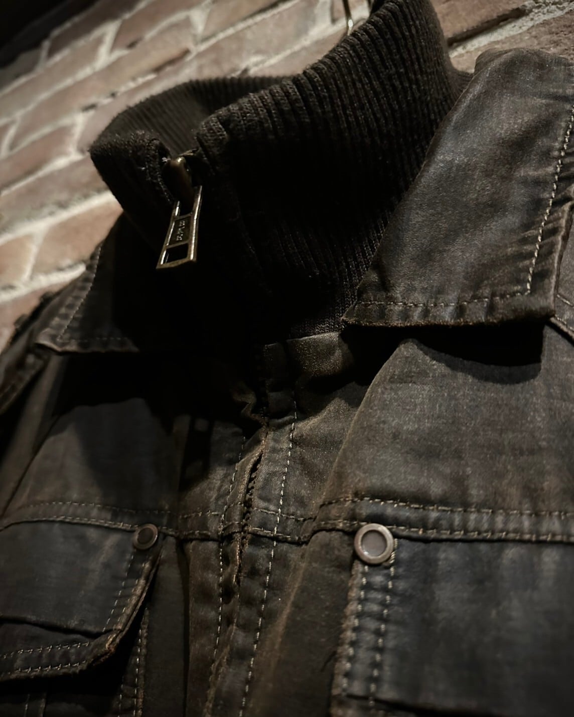 経年変化ならではの渋い表情、服好きの心を鷲掴みにされるギミックを盛り込んだスペシャルなオイルドジャケットです。