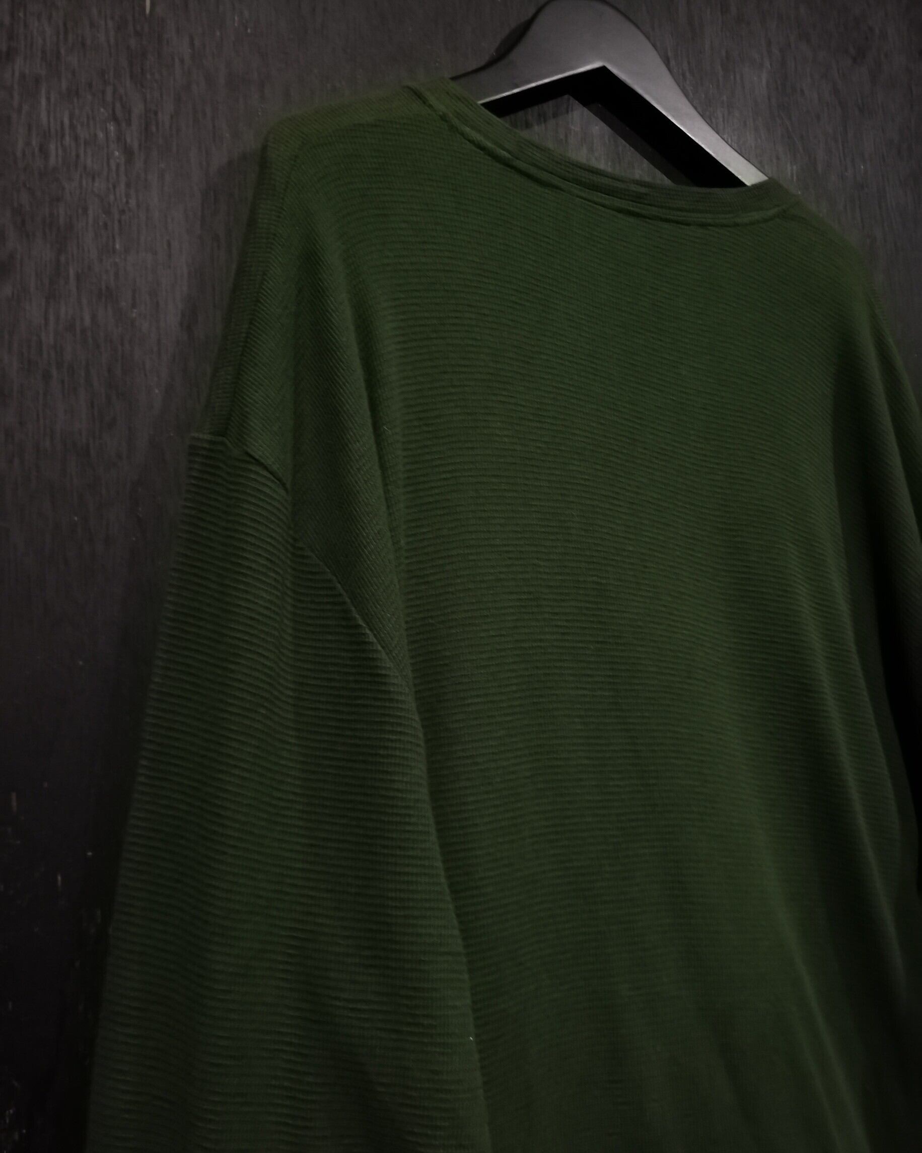 サーマルならではの凹凸のある生地感で肌触りも良く、着心地も最高。ルーズなサイジングで肩の力を抜いてラフに身に纏うことができます。