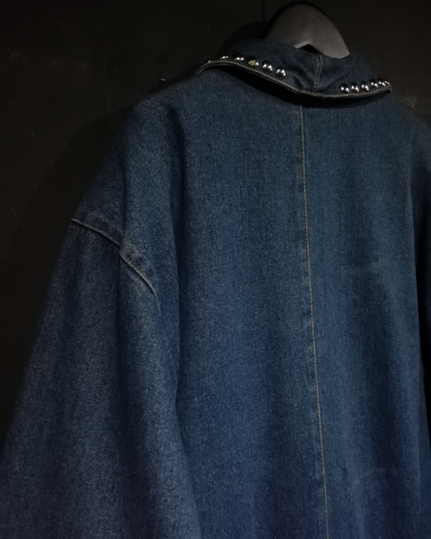 インディゴブルーのベースに、鋭く輝くシルバーのスタッズで装飾を施した稀有なデニムコート。