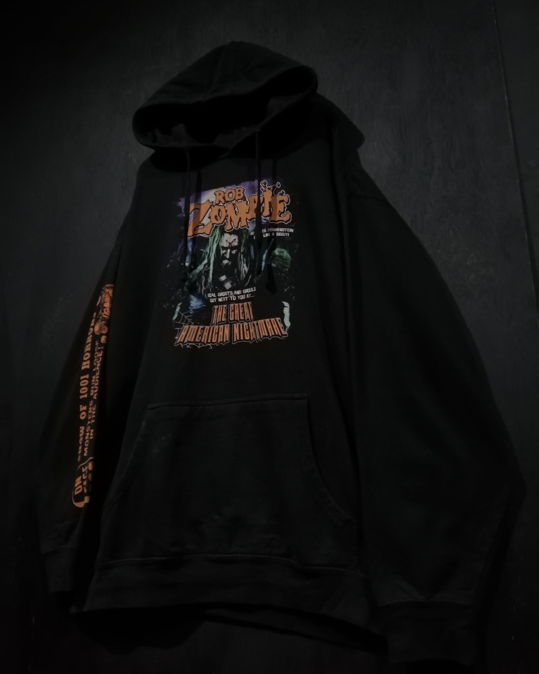 もしマリリン・マンソンと活動時期が被っていたら彼を上回っていたかもしれないと言われているカリスマ。そんなロブゾンビの、デザイン、コンディション、サイジングと三拍子揃ったスペシャルなフーディです。