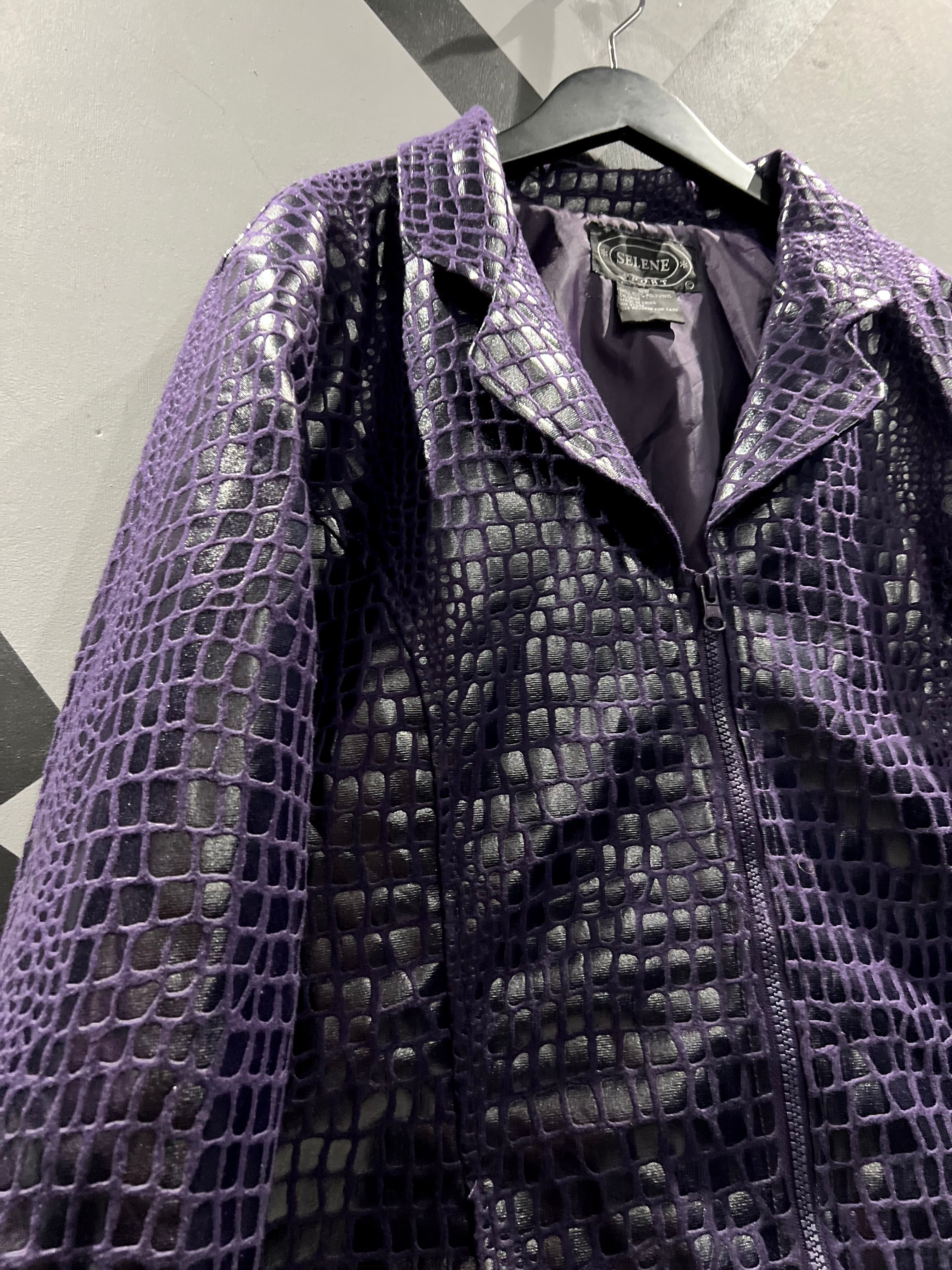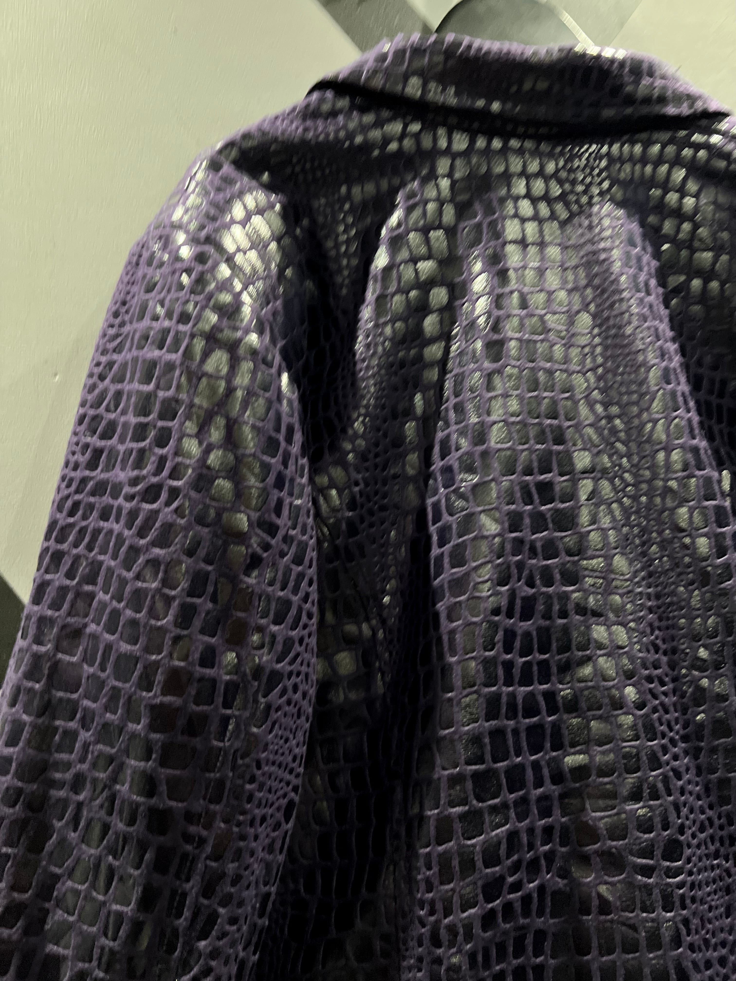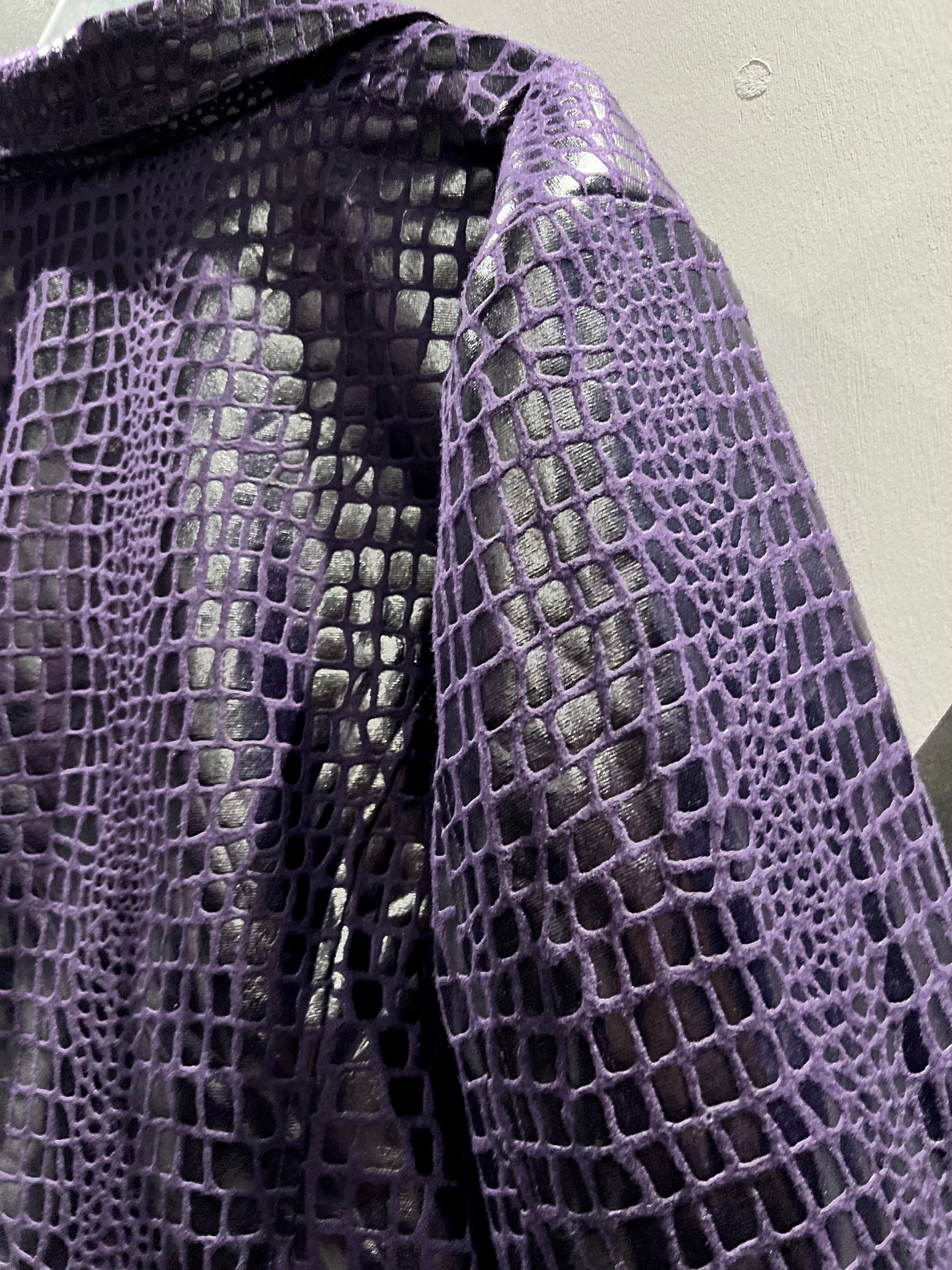 フワッと軽くシーズンレスなポリエステル素材に、鈍く光沢を放つクロコダイル調のコーティングを施し、レザーライクな風合いに仕上げた逸品。