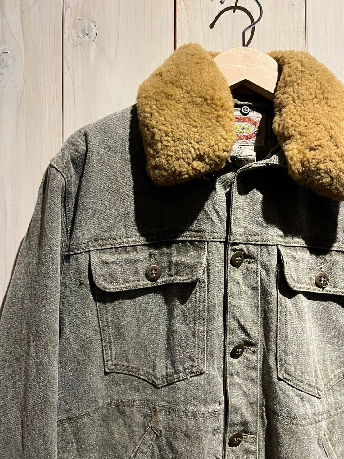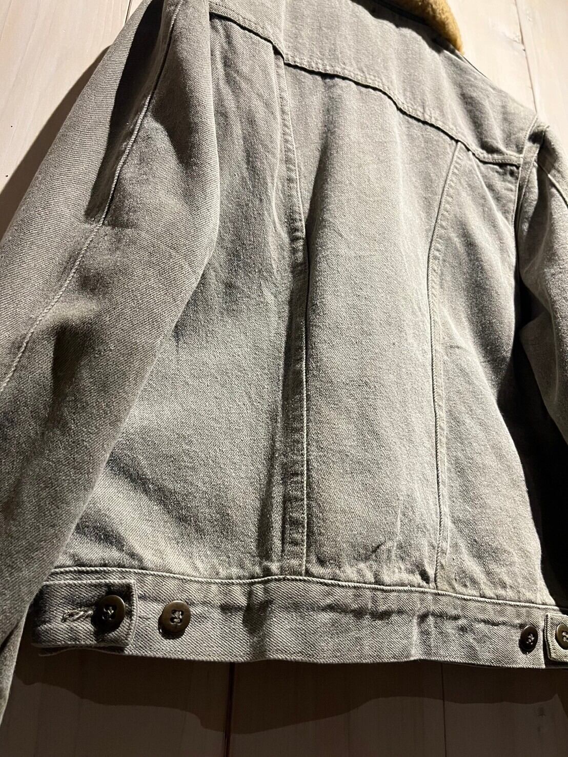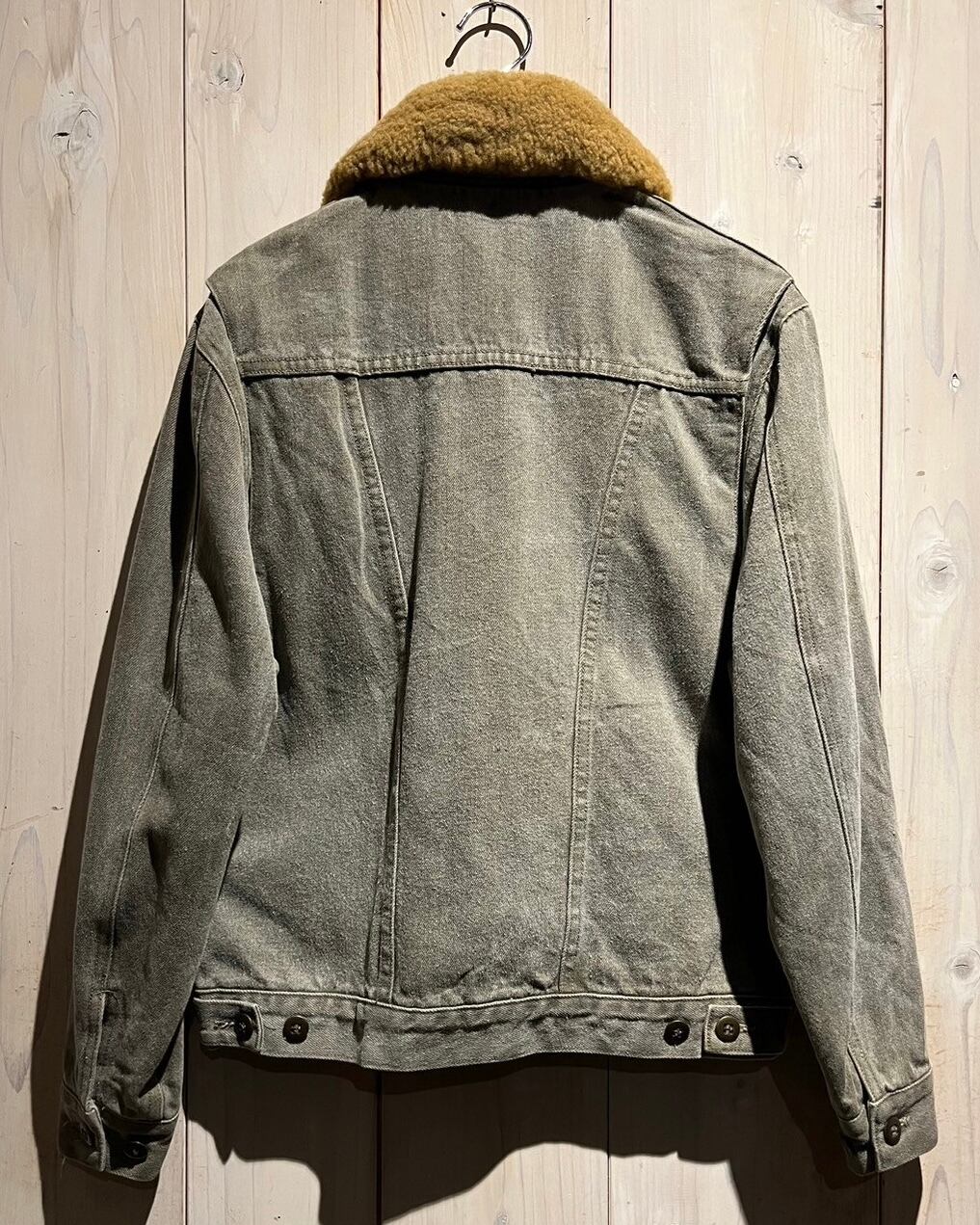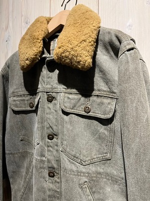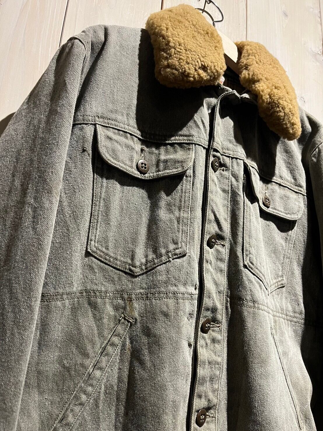 美しいフェードの効いたデニムをボディに使用した、かなり稀少なムートン襟モデルのデニムジャケット。