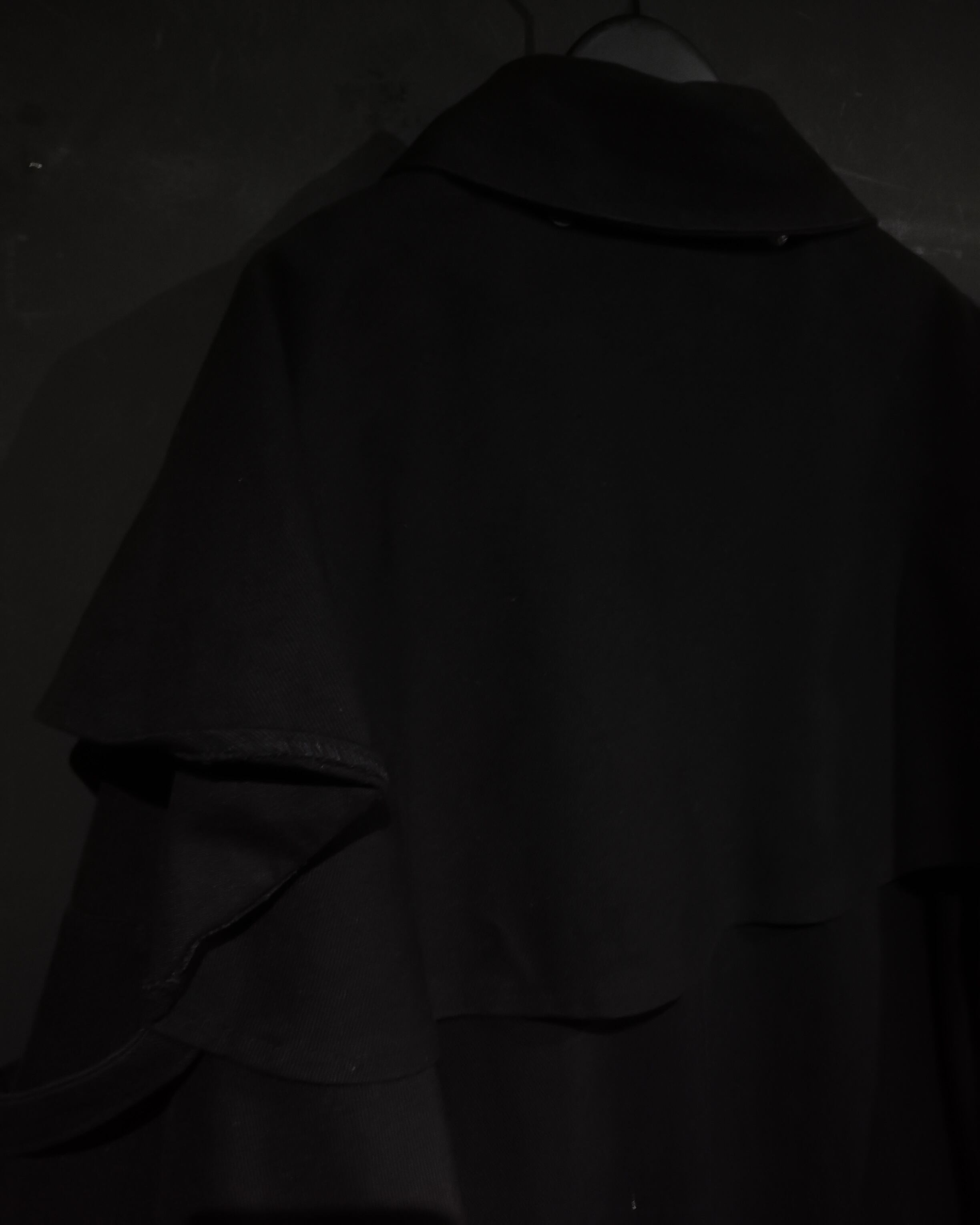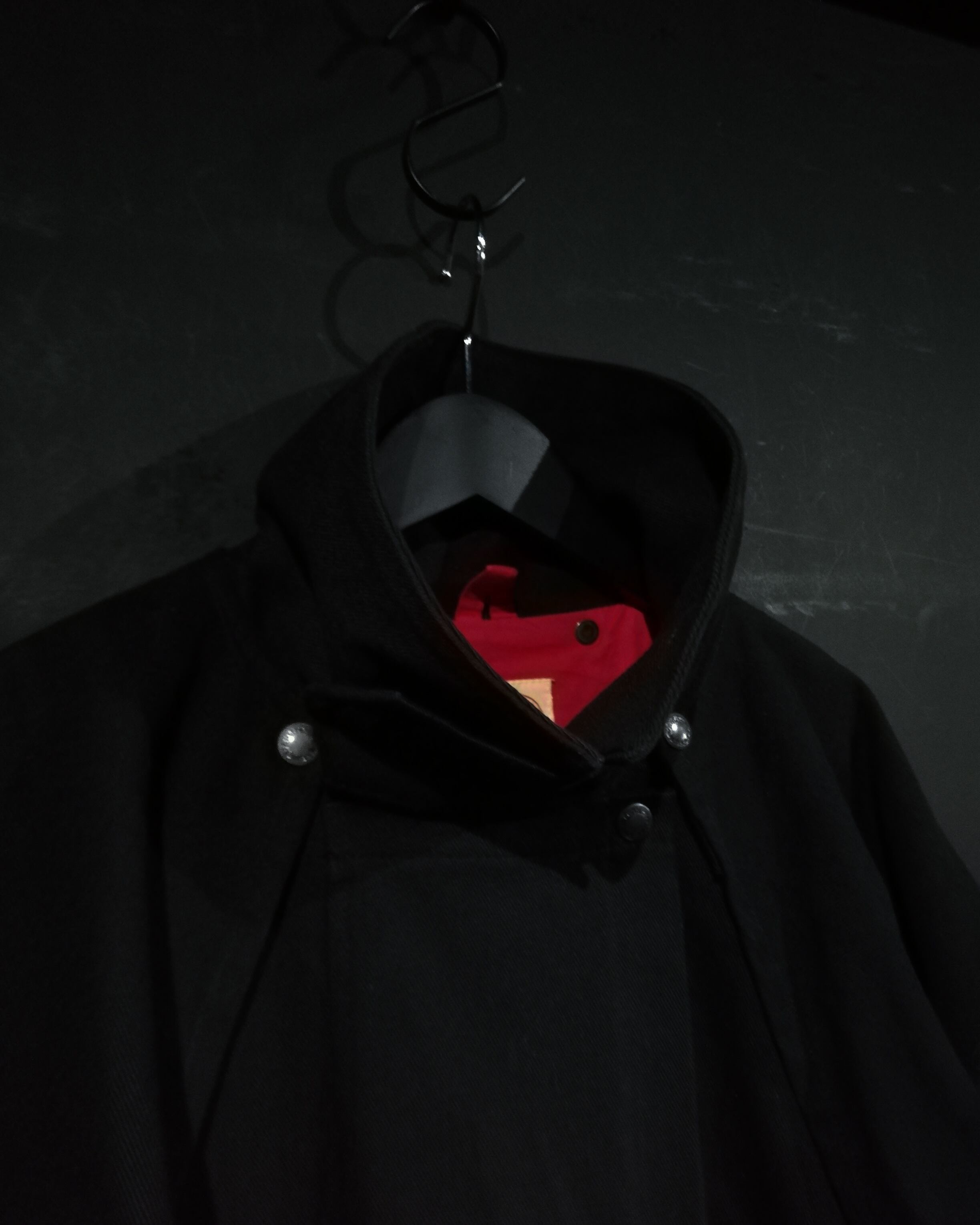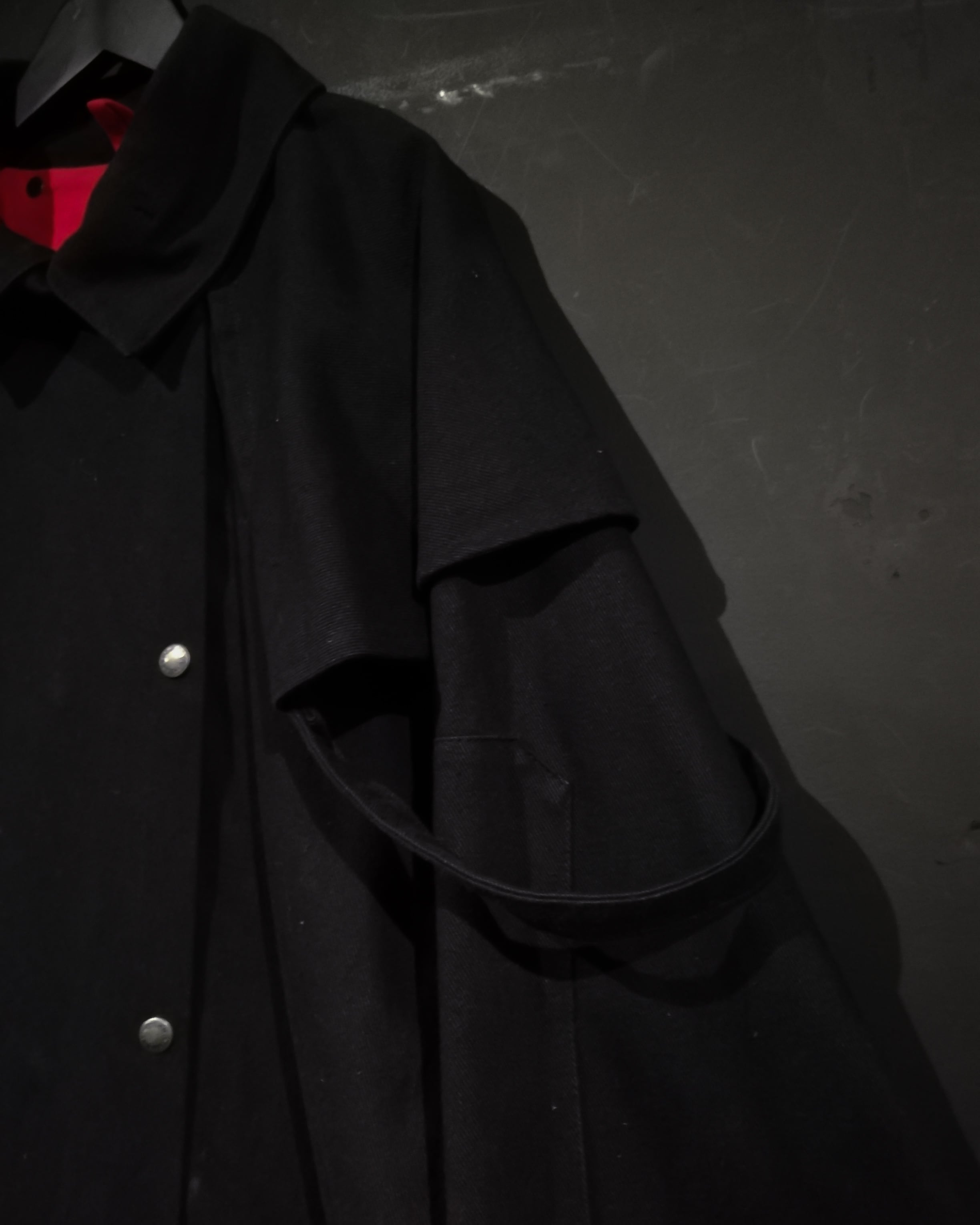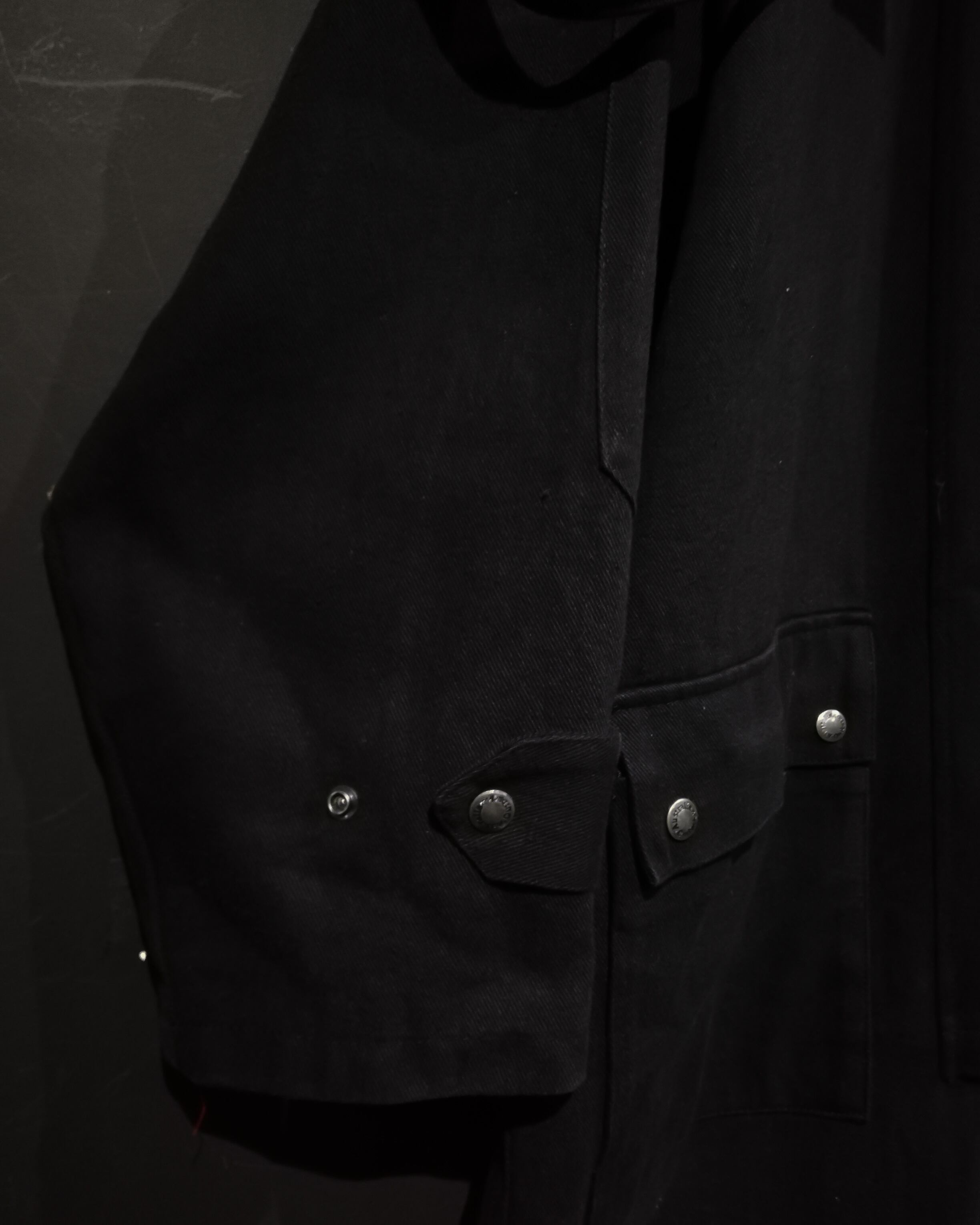 ハリ、コシのあるツイル織りの素材を用いて、オールブラックに仕上げたモードな雰囲気漂うダスターコート。
