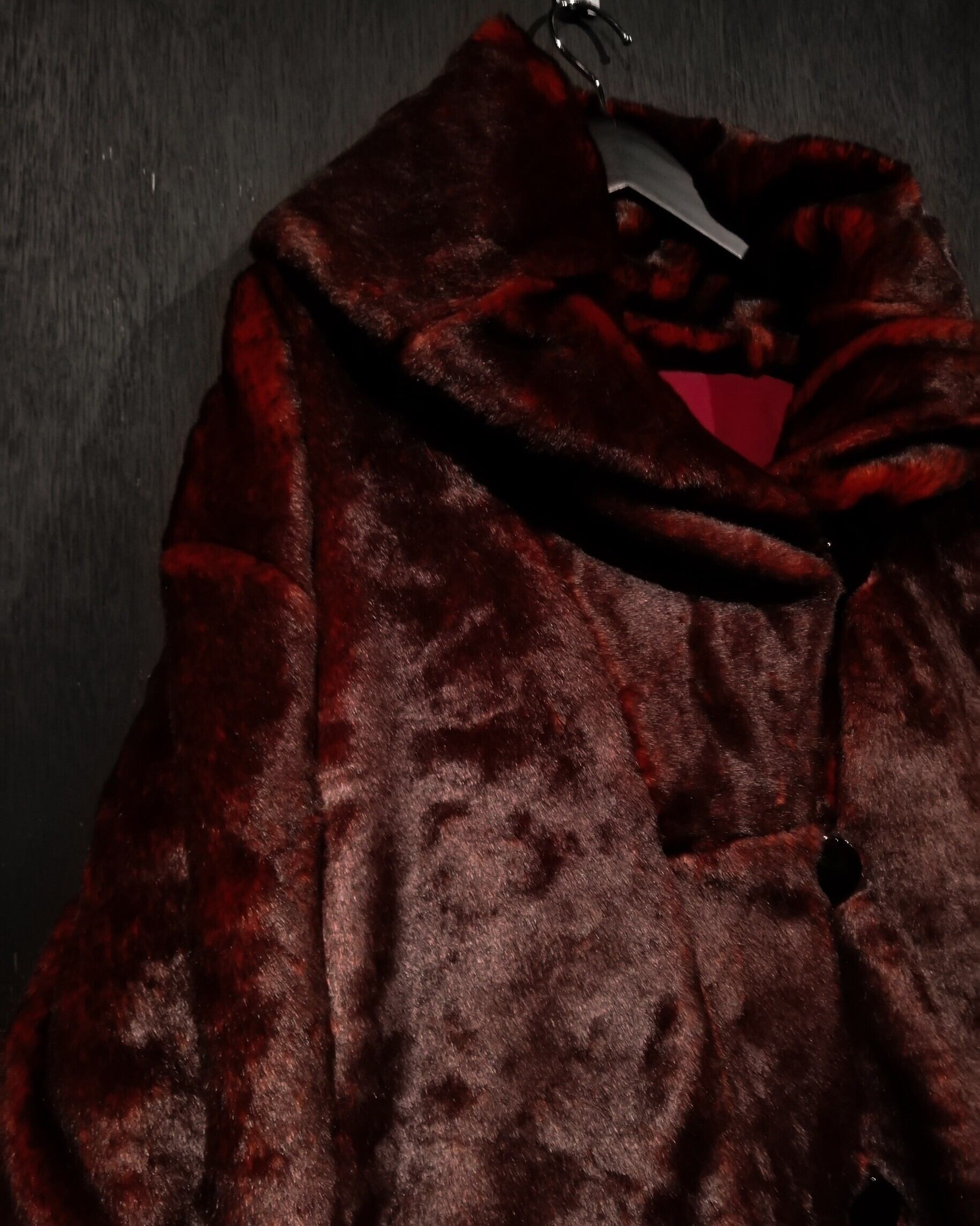 柔らかくふんわりとしたモッフモフの毛並みに、モードな印象が漂うの真紅のカラーで仕上げたこちらのコート。艶やかな毛並みが高級感を漂わせます。