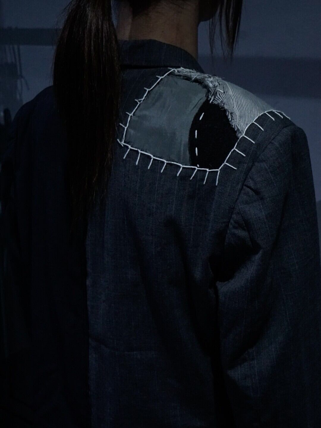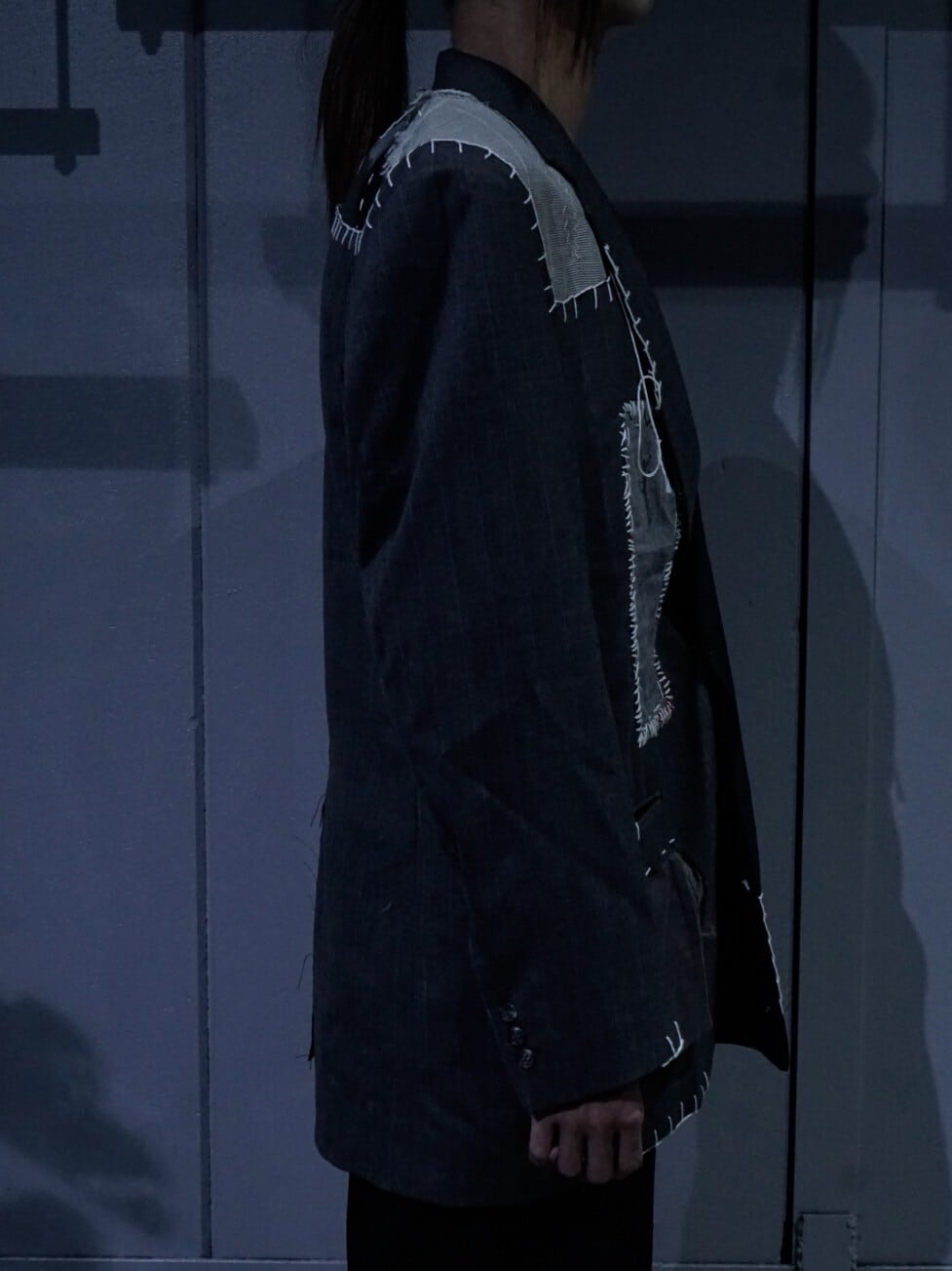 グレーのボディには数種類の生地を載せ、ブラックのボディには太めの糸でステッチデザインを施した、唯一無二なオーラをムンムンに放つ1着。
