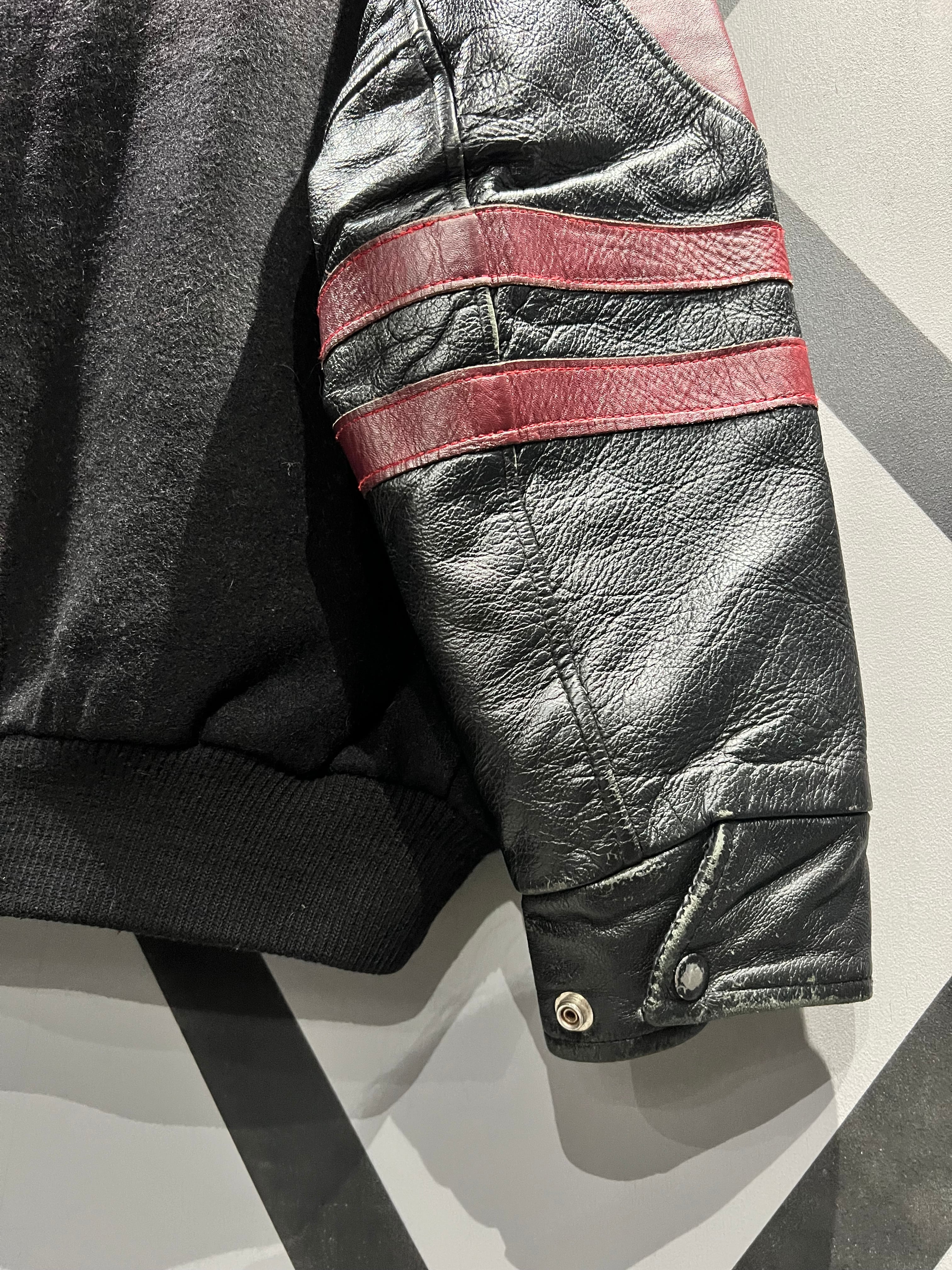 スタジャンらしく身頃は極上ウール、袖は赤と黒の極上レザーと、素材違いならではのコントラストや奥行きがより映えてくれます。