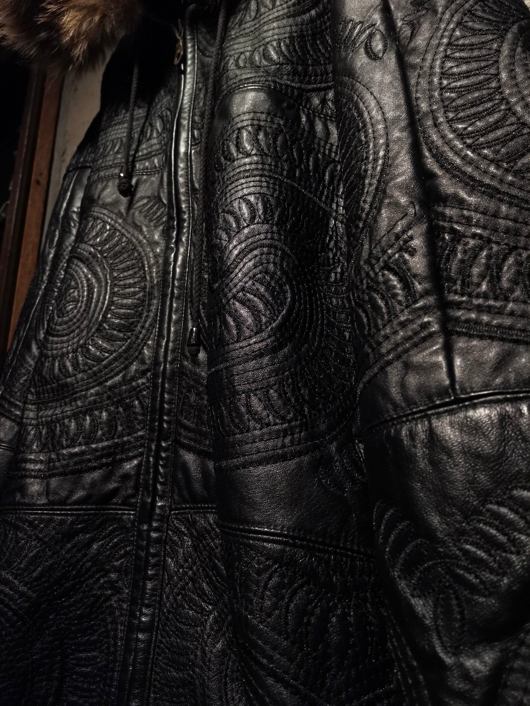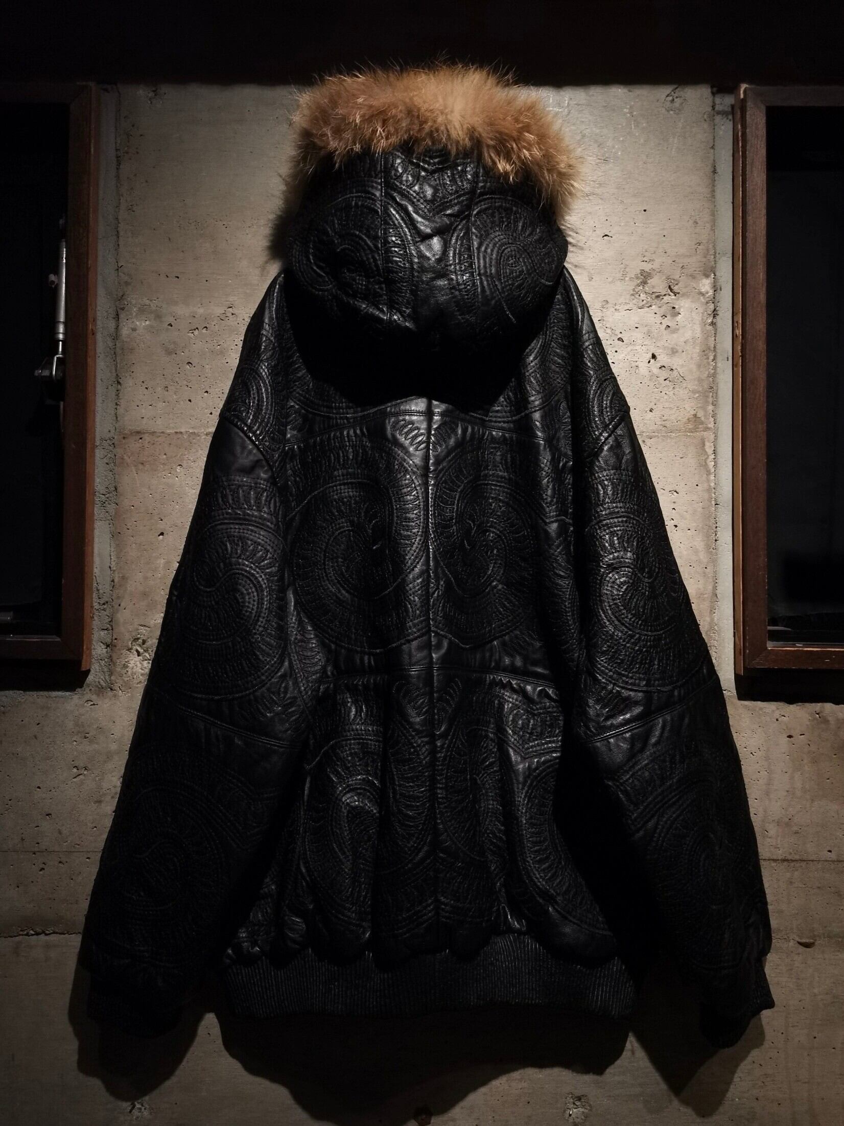 高級感をヒシヒシと感じる極上のレザーに、凹凸、フードに備わったファー、そしてペイズリー柄が加わることによって生まれる表情はまさに極上の域。唯一無二の仕上がりに。