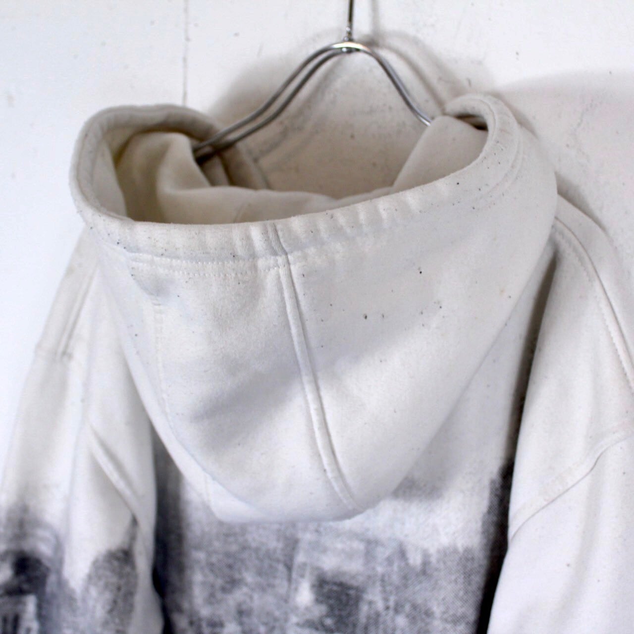 肩幅、身幅、アームのゆったりと採られたルーズなサイジング。デザインは効きながらも落ち着きのあるモノトーンの配色が故に汎用性も非常に高く、今時期はTシャツやシャツの上からガバッと羽織るだけで洒落確定。アウターとしてはもちろんですが、秋冬にはコートやジャケット類のインナーとして使うのもオススメです◎