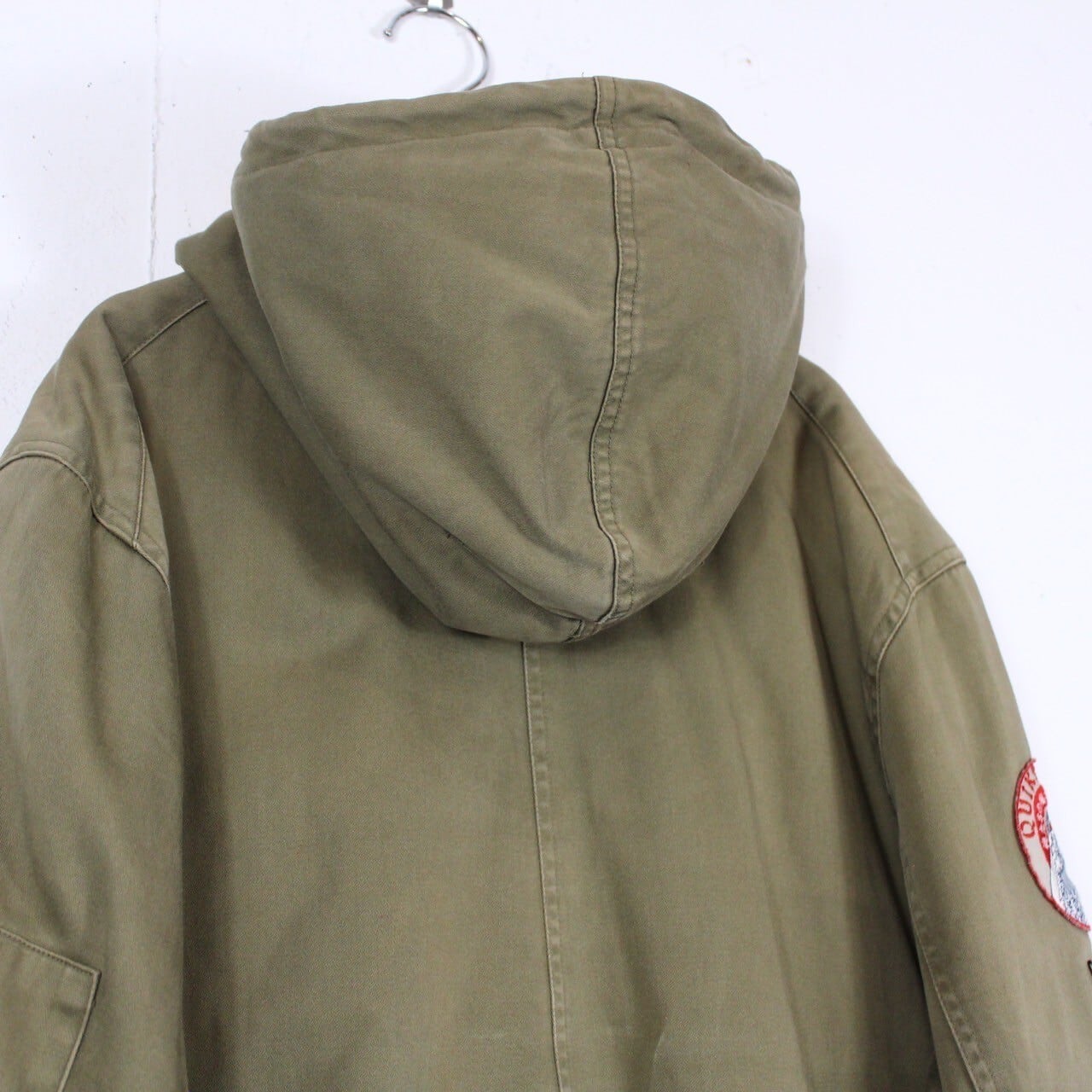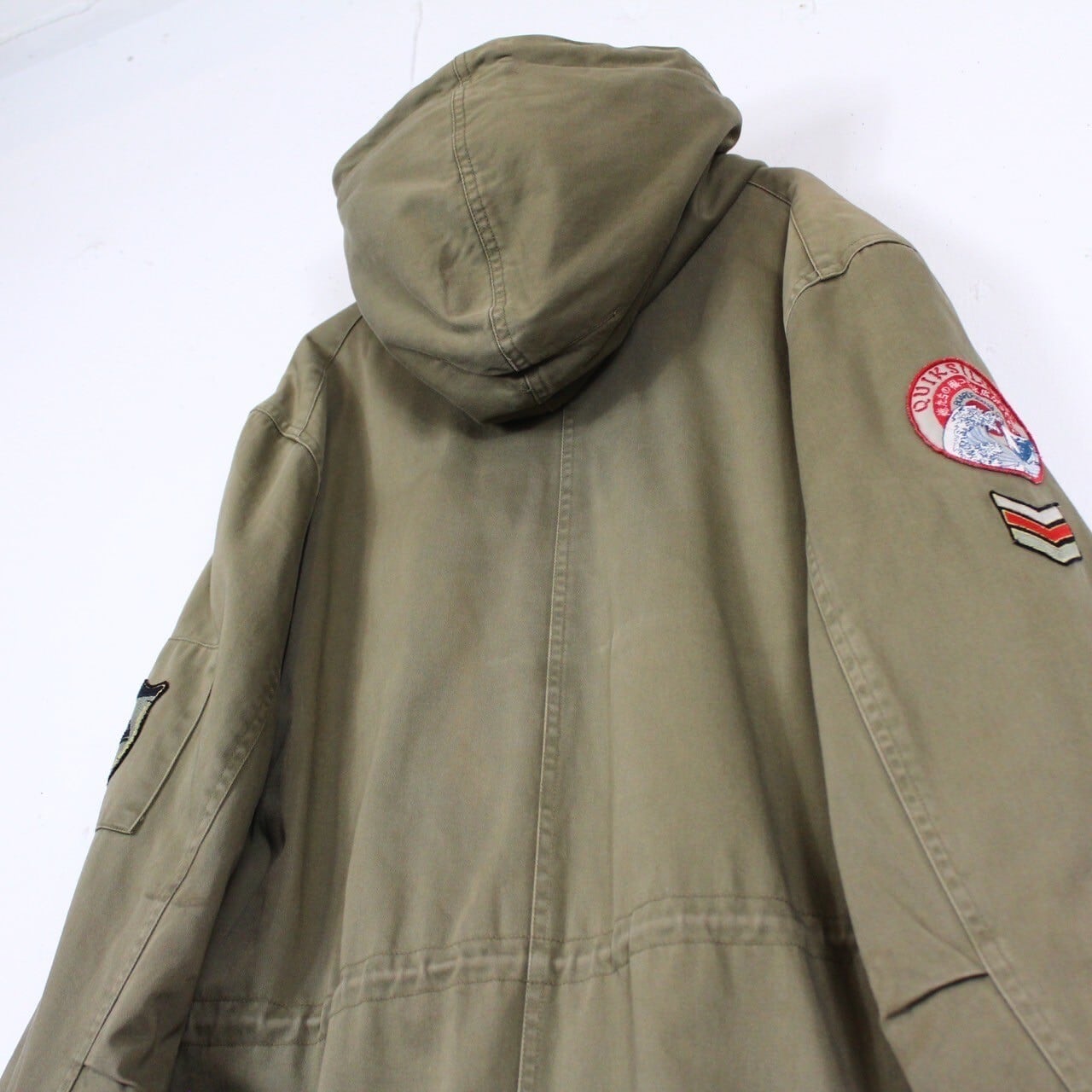 ミリタリージャケットを彷彿とさせる無骨なデザインに、ワッペンカスタムをON。フードや大ぶりのポケット、ハンドウォーマーにユーティリティーポケットなど実用的なギミックを載せたミリタリー型ジャケット。