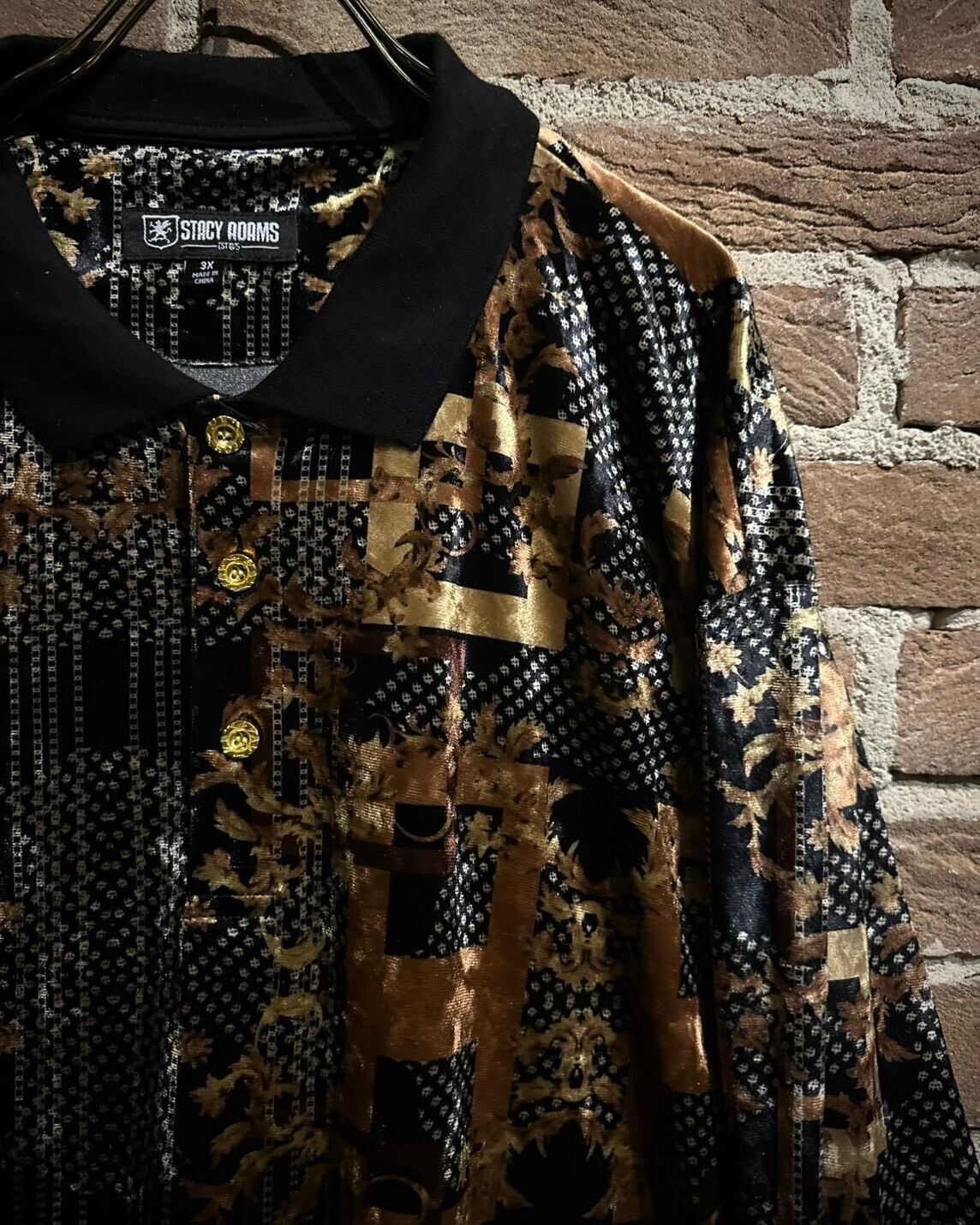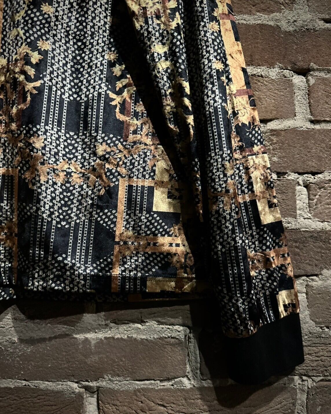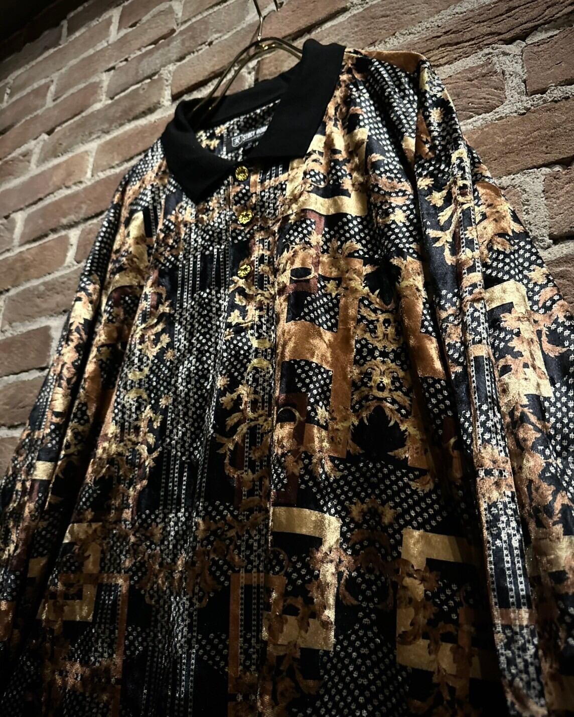 ベロアの素材、柄模様、サイジングが合わさって生まれゆくレトロ、ラグジュアリーな雰囲気を纏った稀有な逸品です。