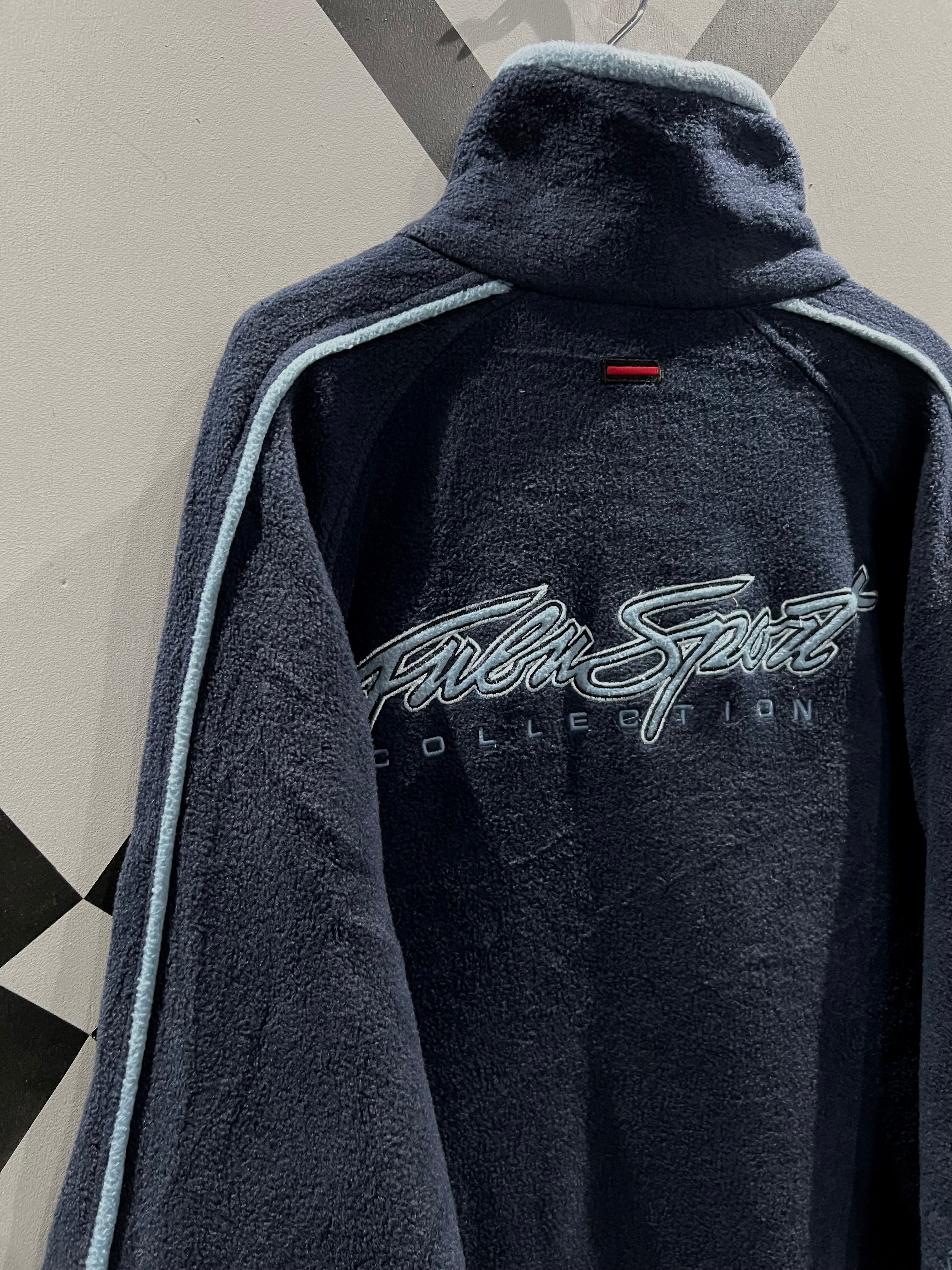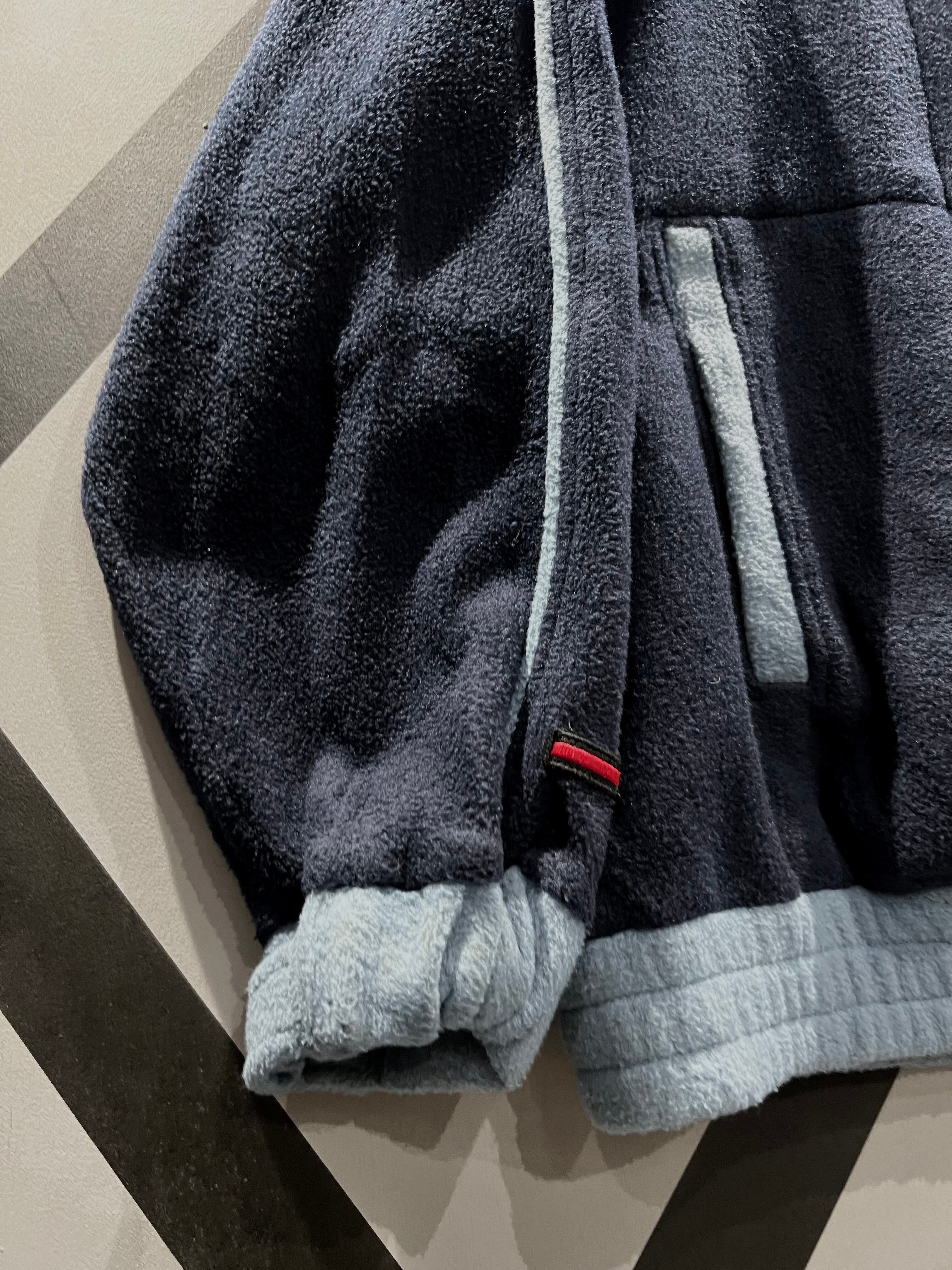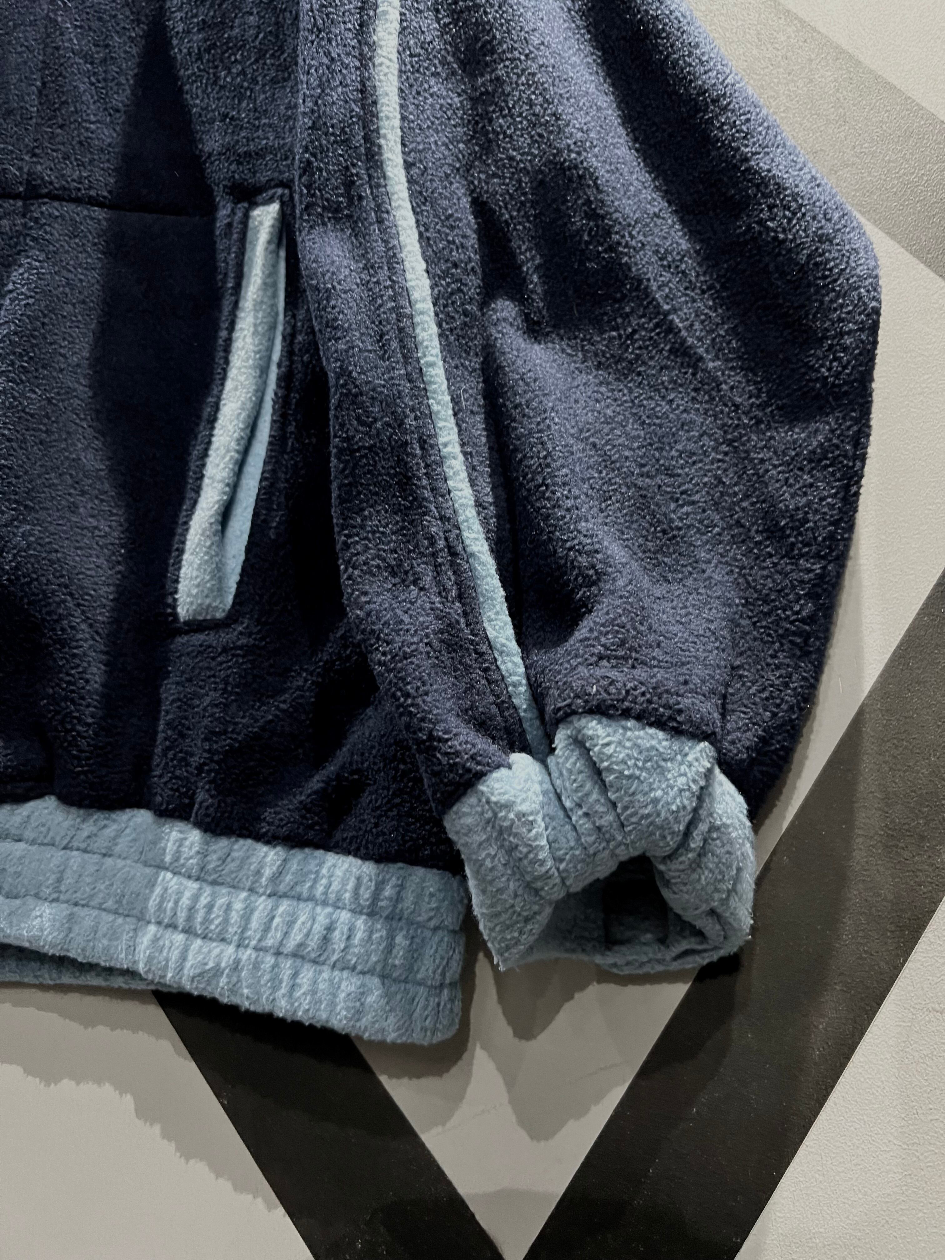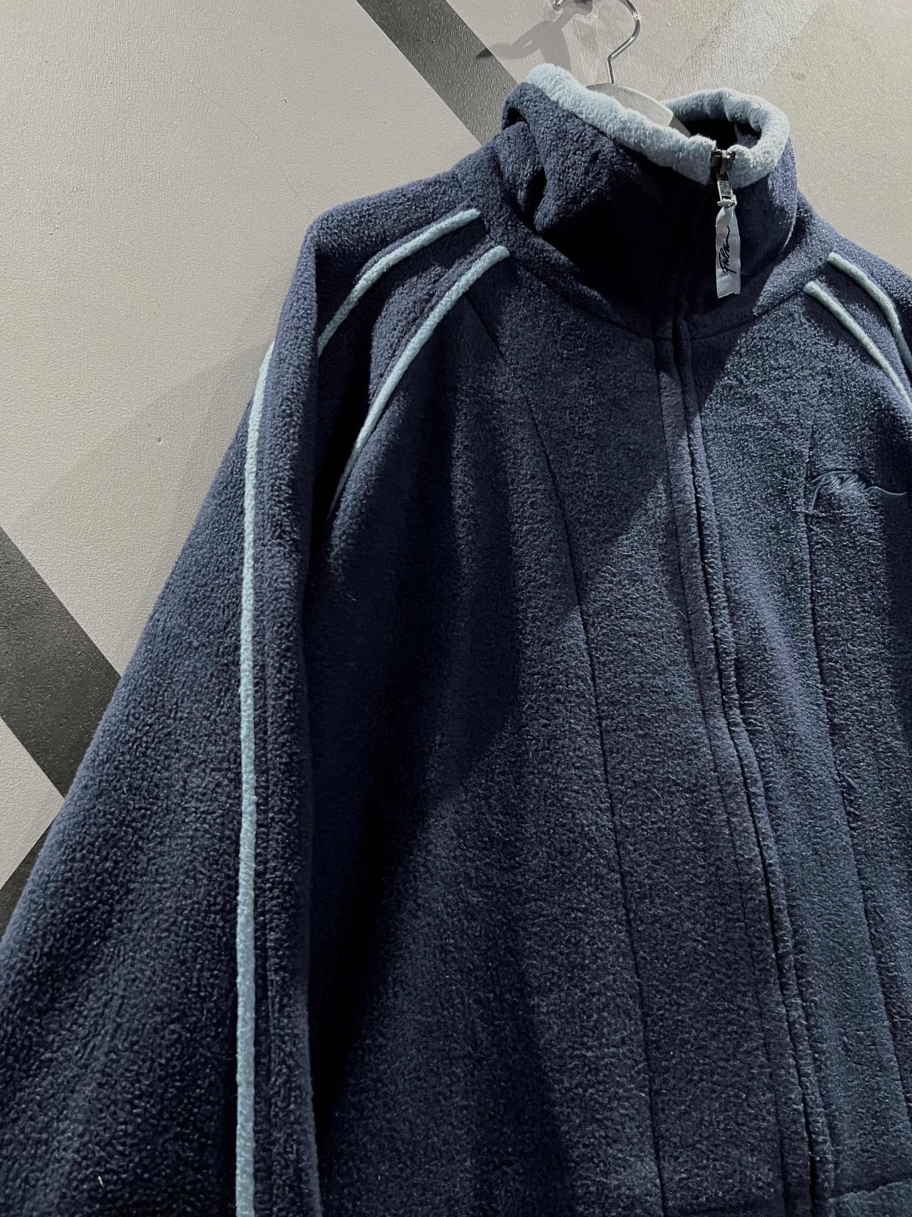 ネイビーのボディをベースに、パイピングや色の切り替えによって立体感を演出したフリースジャケット。