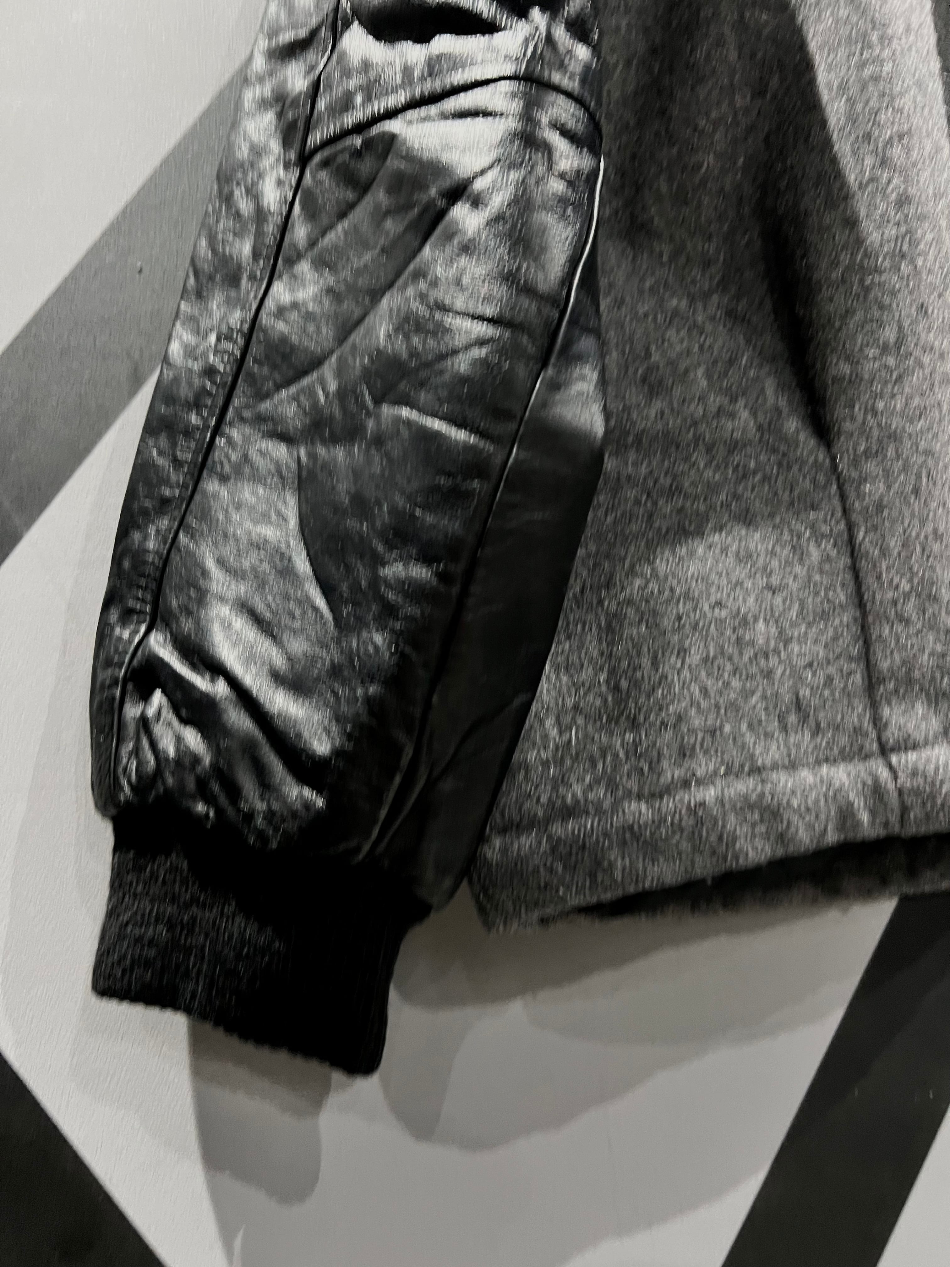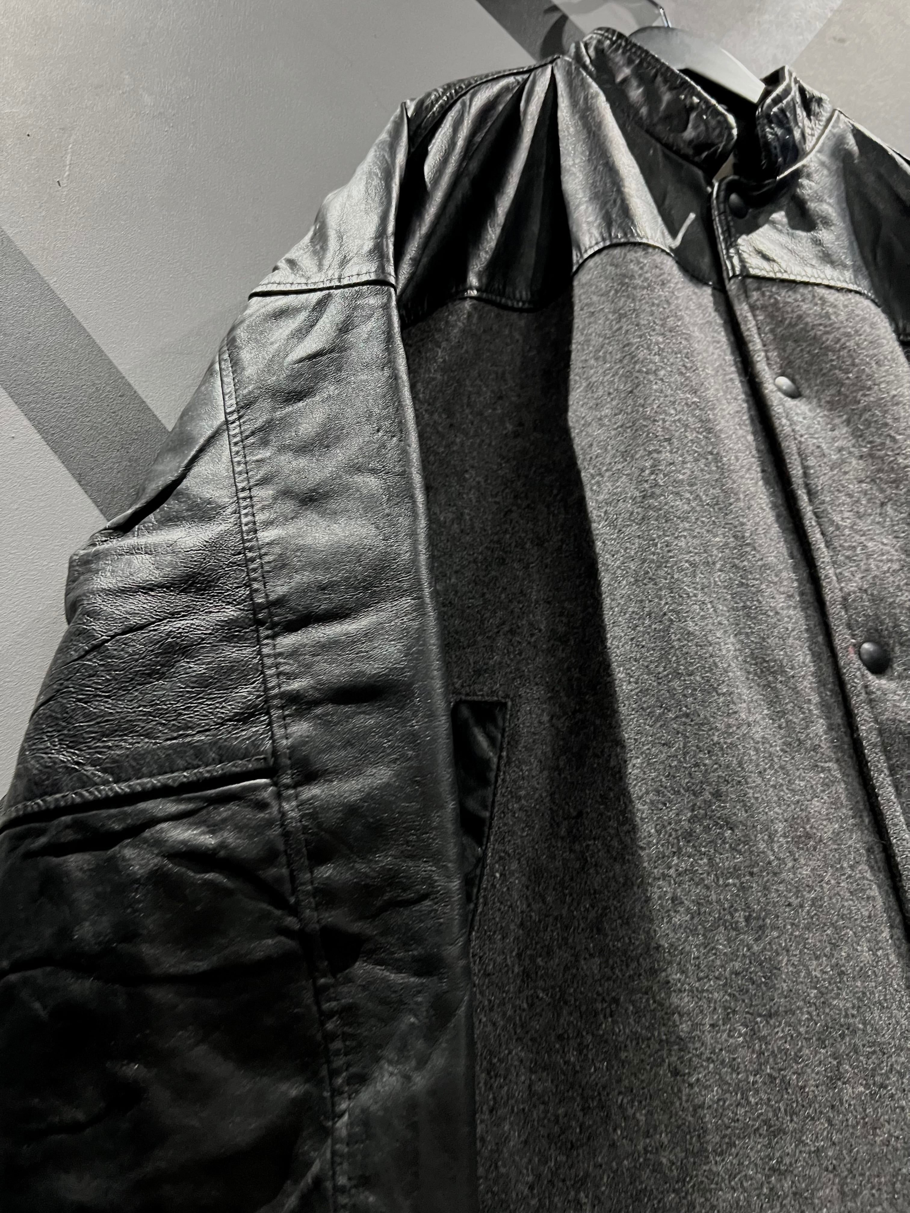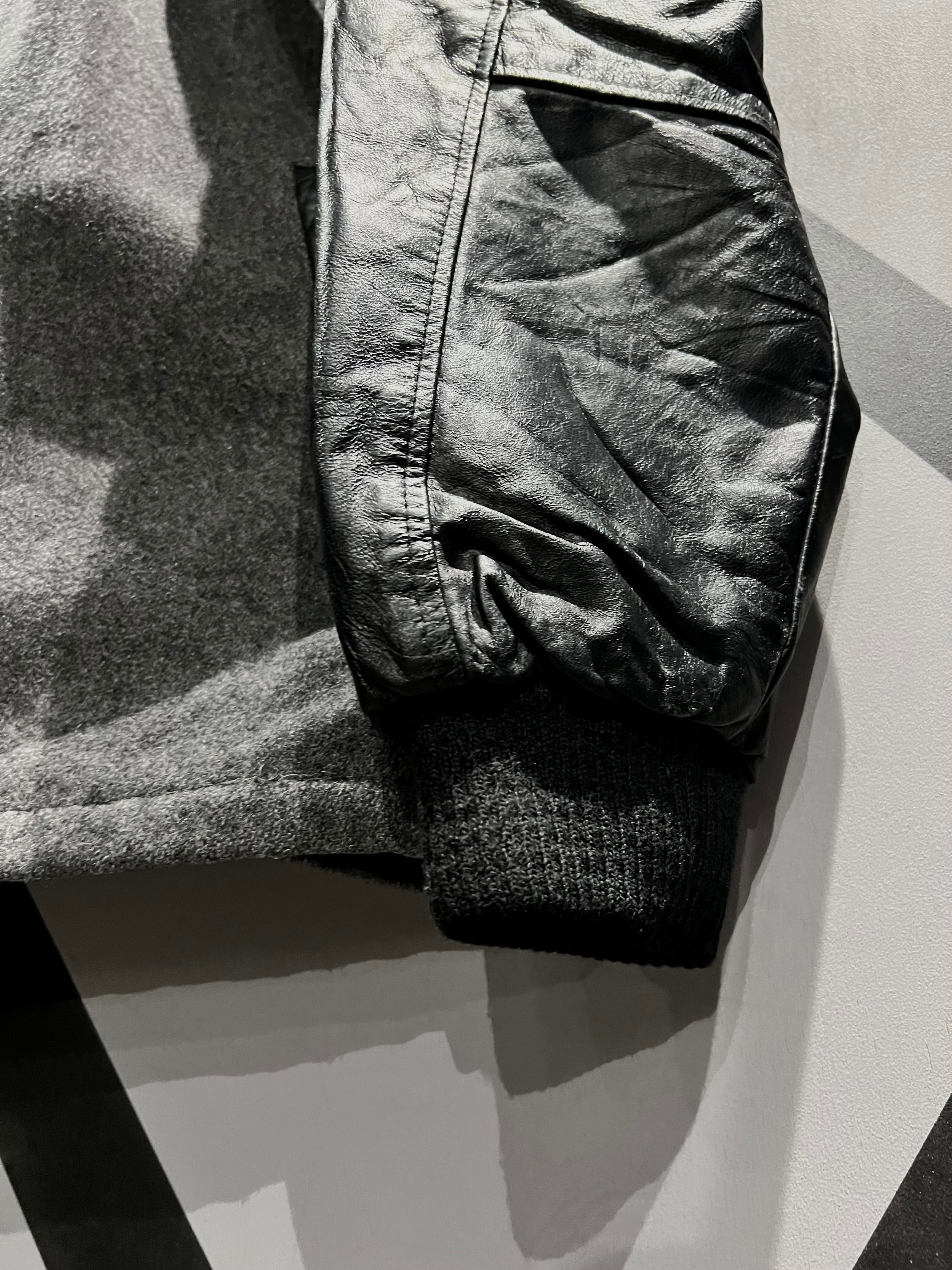 柔らかなグレーのウールのボティに、ヨーク部分、アームに上質なブラックレザーを切り替えたジャケット。