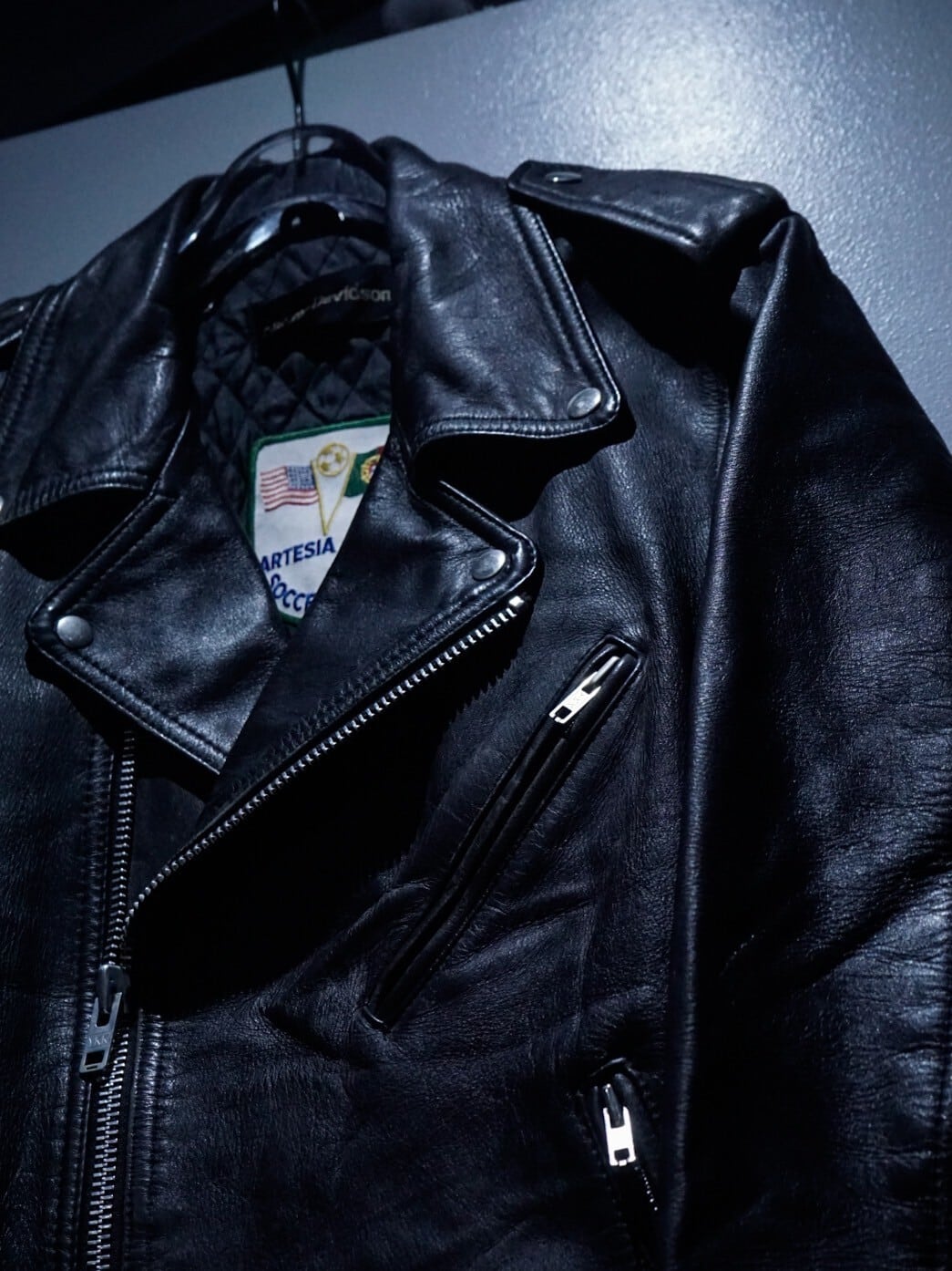重厚感漂う上質なレザー使いに、ダブルライダース王道のディテール。そこに加えられた背面のペイントが絶妙な抜け感を演出。