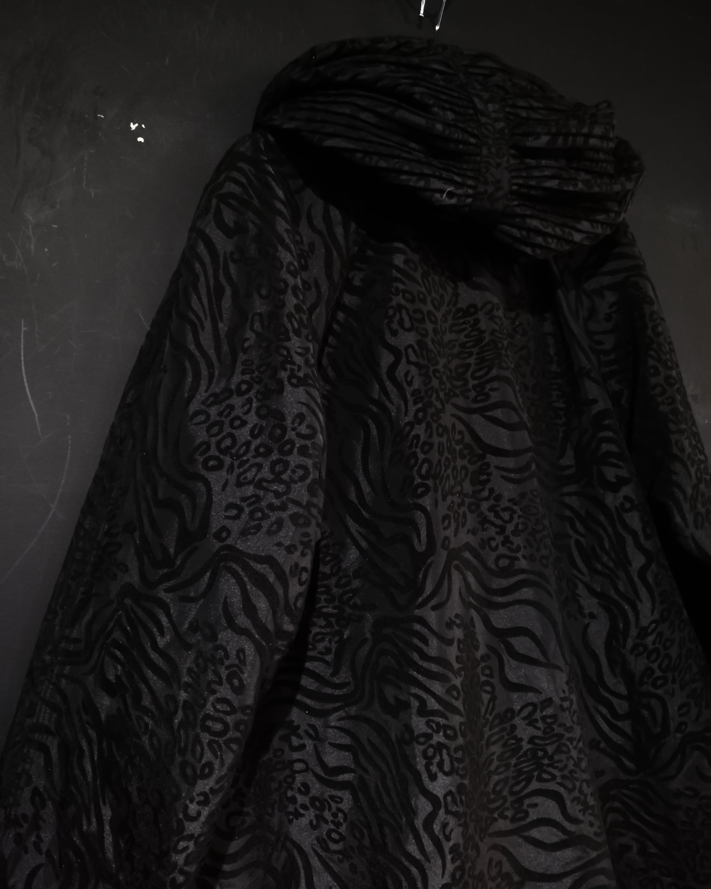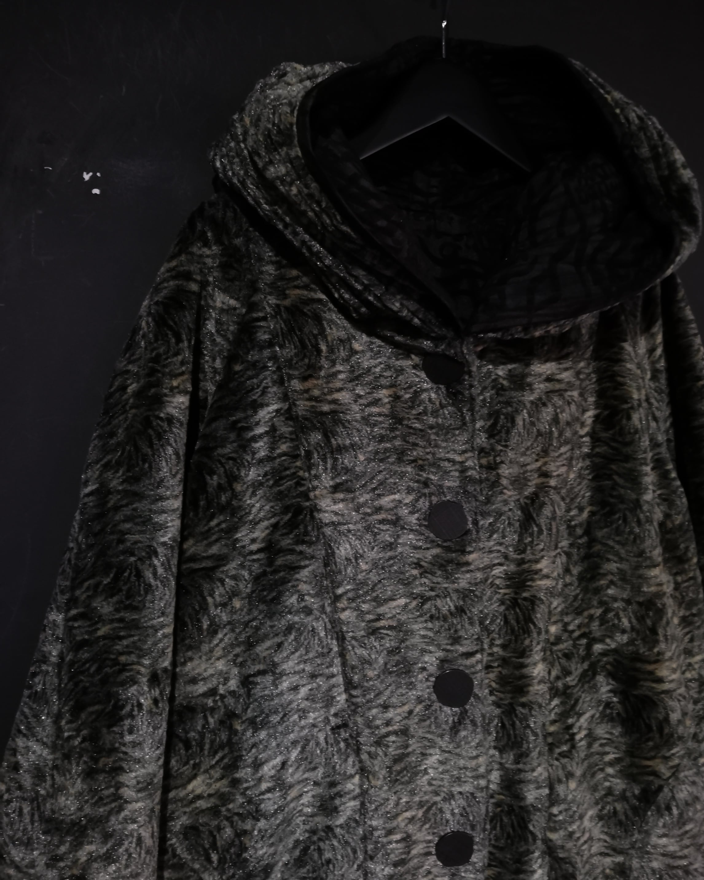 A面には毛足短めのフェイクファー調のボディに細かいタイガーパターンのような柄を全面に載せ、B面にはナイロンボディをベースにフロッキープリントによってゼブラやレオパードを思わせる柄を載せた1着。両面共にめちゃくちゃカッコ良い、、、