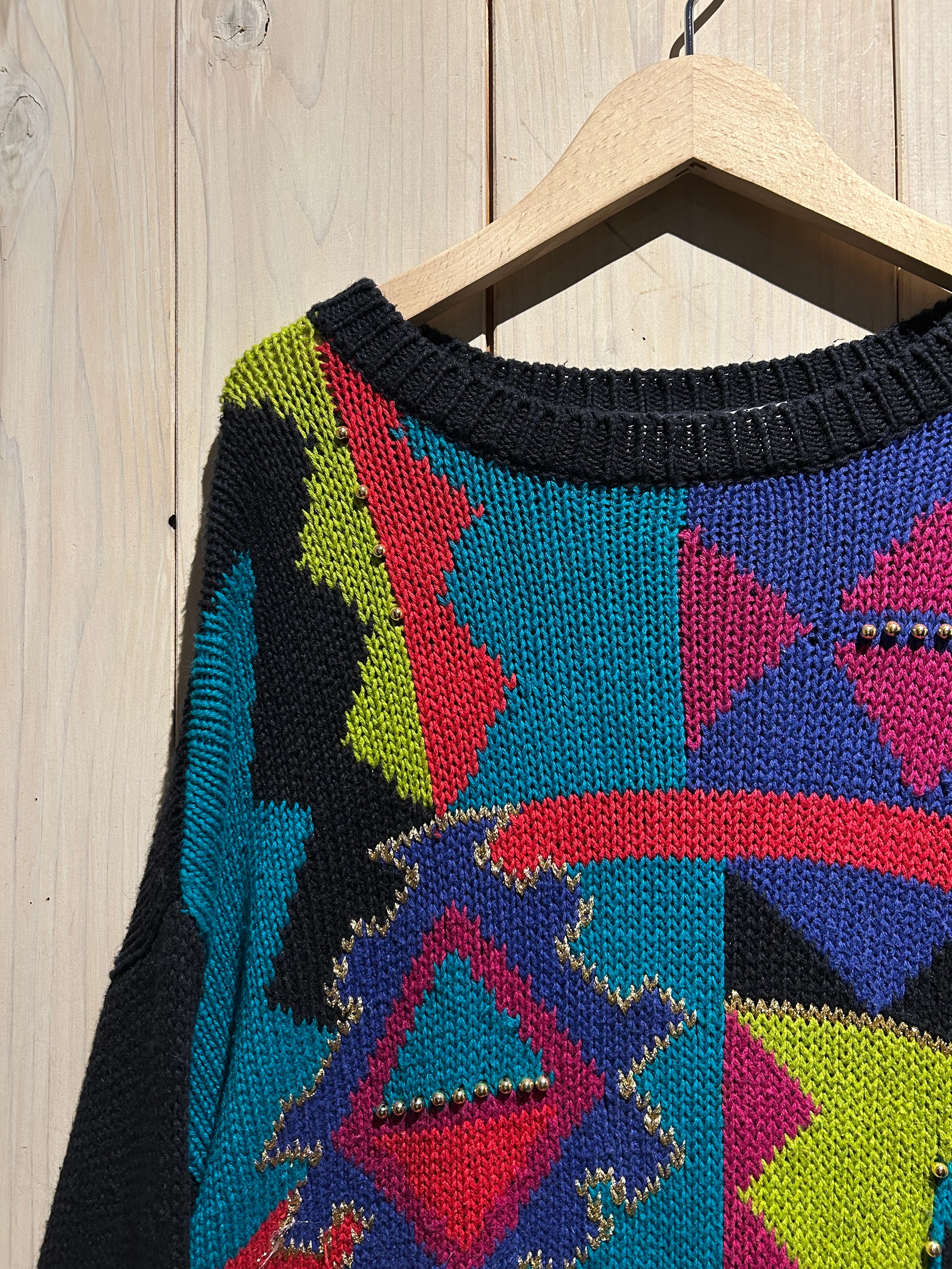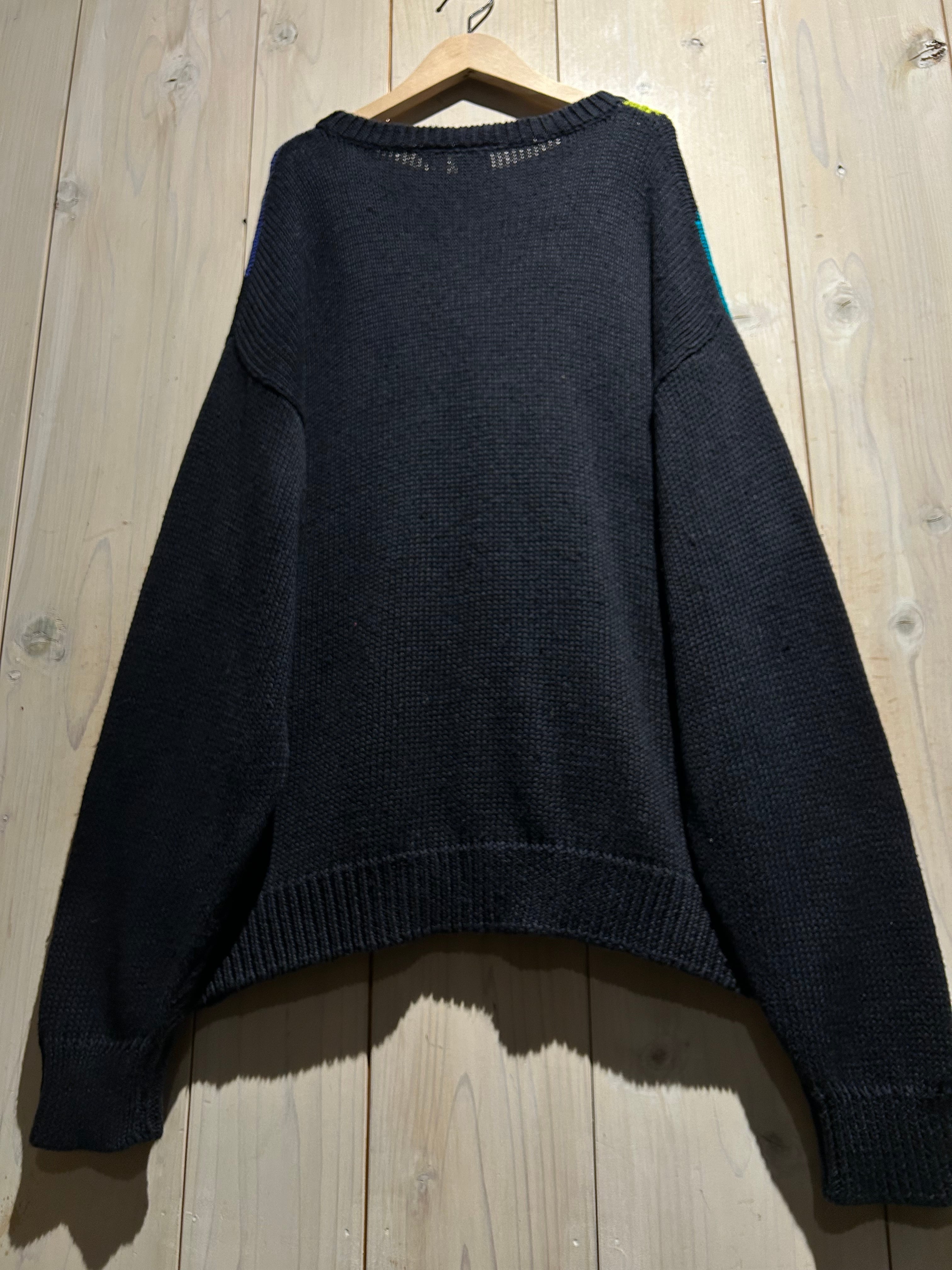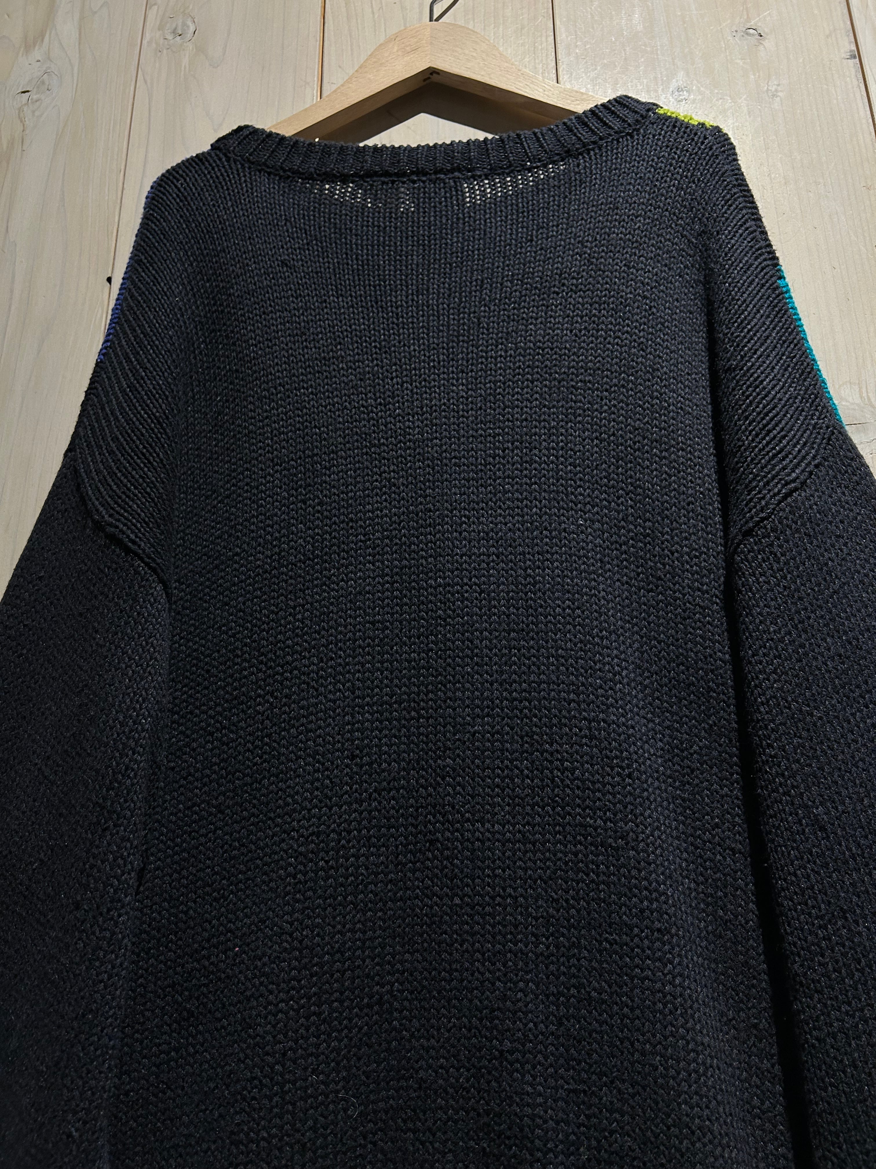 ブラックのボディをベースに、フロントにはピカソを彷彿とさせるカラーリングでアートを載せたニット。