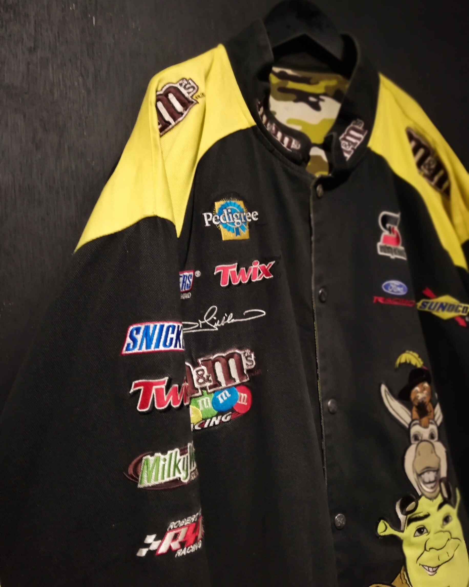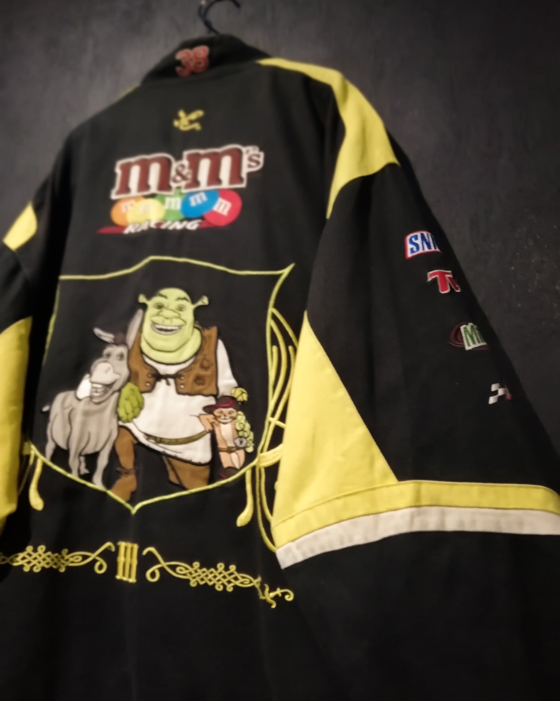 お洋服好きなら1着は押さえておきたいレーシングアイテム。当店でも力を注いで展開しておりますが、その中から、アメリカを代表とする、世界中で愛されているチョコレート菓子"m&m's"とアニメーション映画であるシュレックがコラボレーションした超スペシャルな1着。