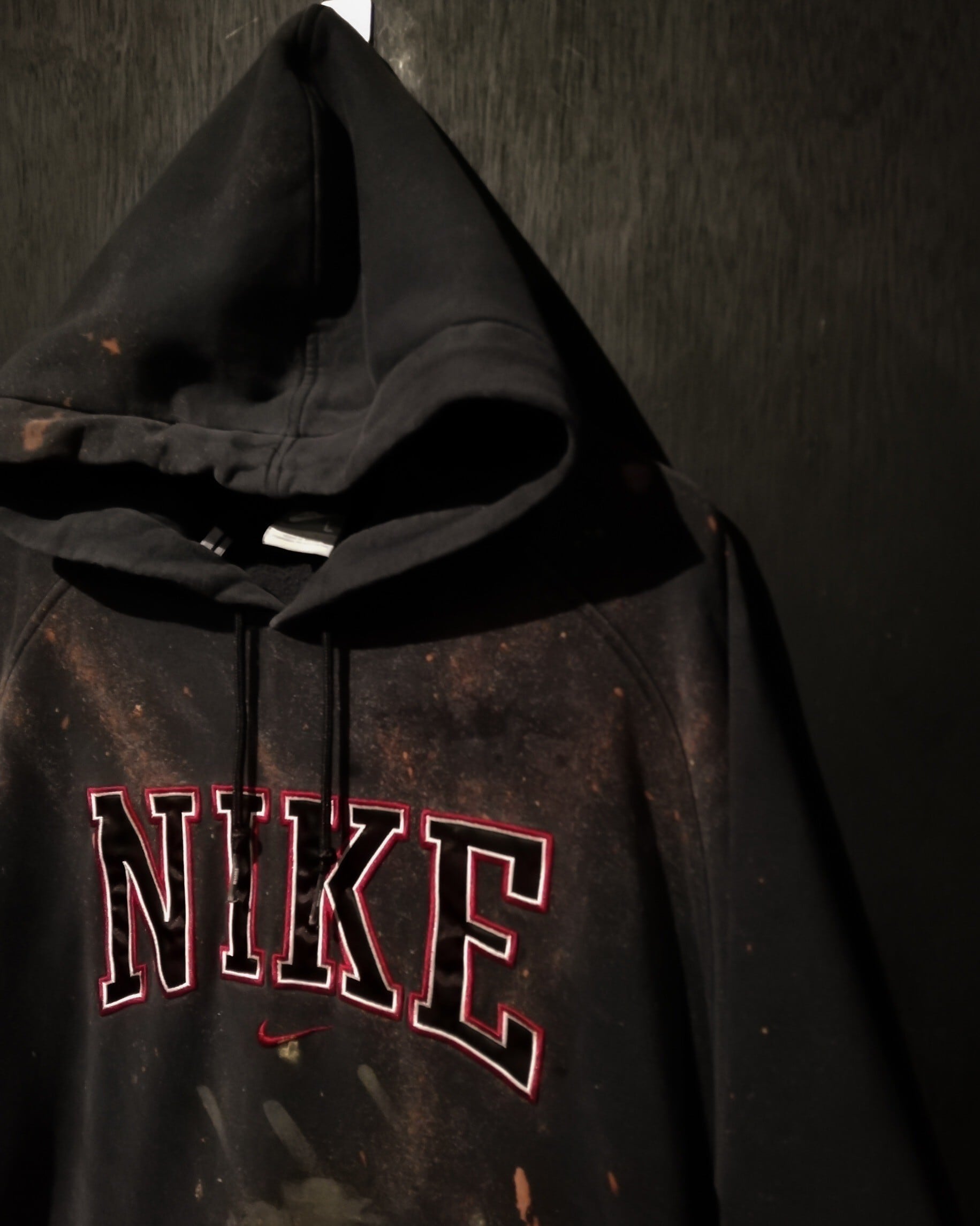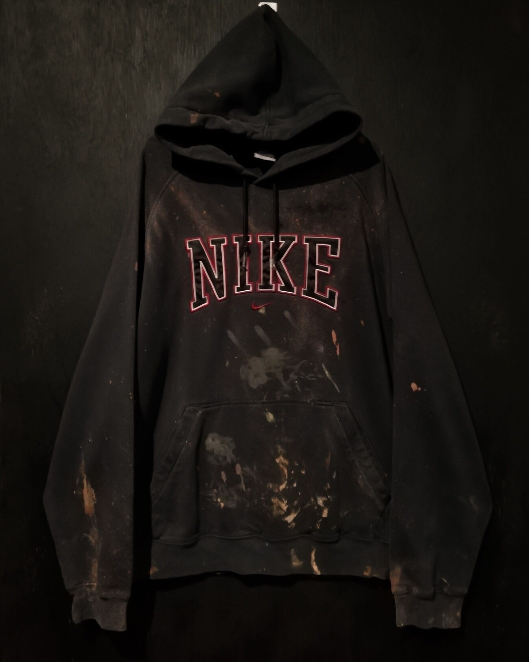 世界的に高い人気を誇るNIKEのフーディーをベースとし、全所有者のブリーチリメイクが施されたスウェットパーカー。自分でやるとなかなか出せないデザインバランスを誇り、前所有者のセンスが光る1着となっています。