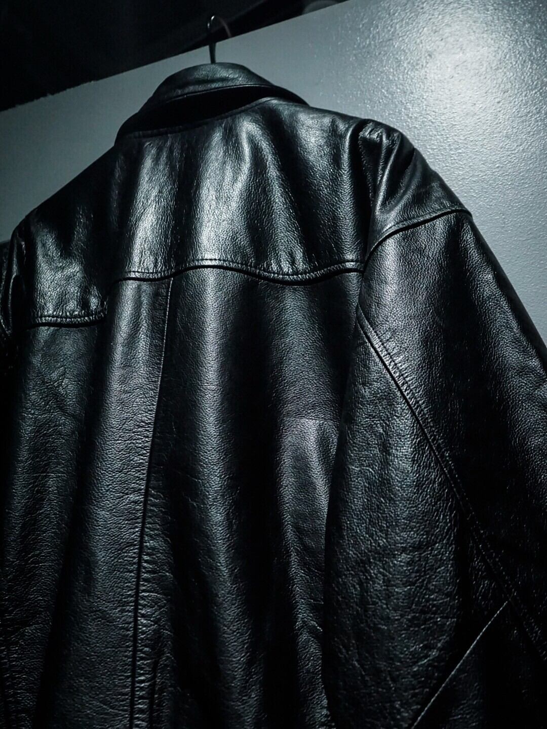 1931年に米陸軍航空隊に採用された、フライトジャケットの名作"A-2"をデザインソースにした1着。写真からもヒシヒシと伝わる上質なブラックレザーが無骨さを引き立ててくれています。