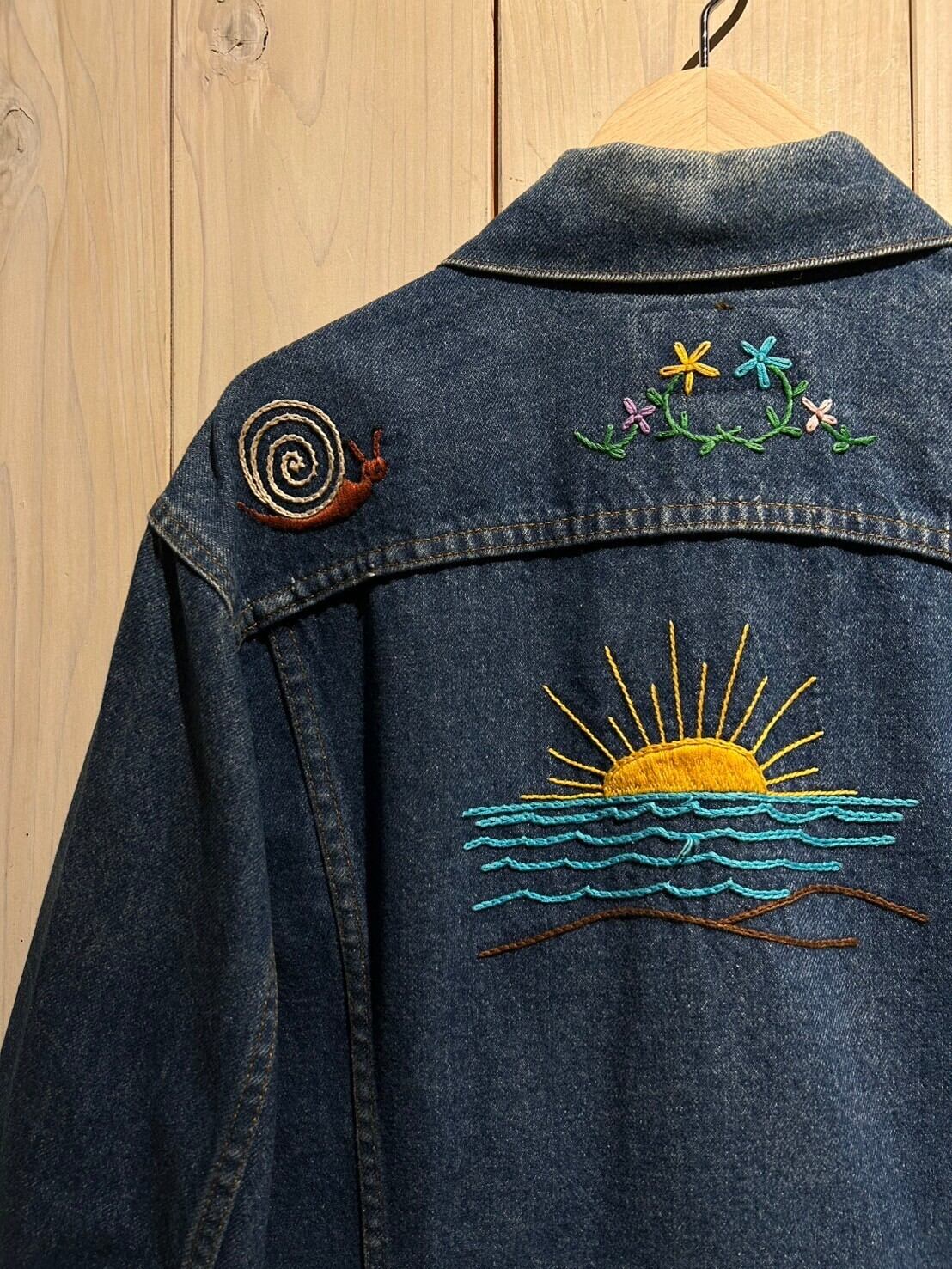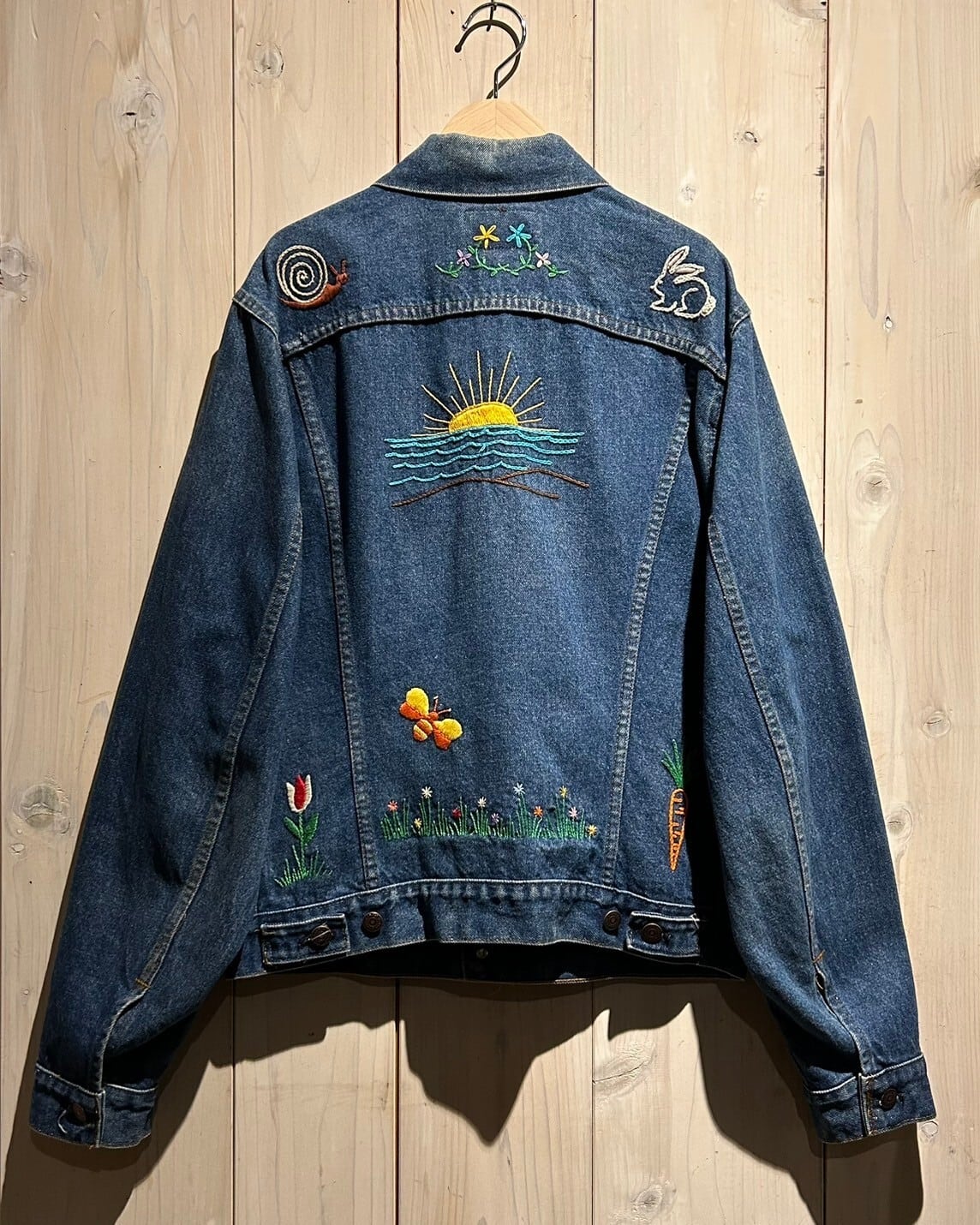カウボーイハットに"HONDA"のワッペン、背面には蝶々に花、うさぎに太陽と以前の持ち主の思想をヒシヒシと感じられる刺繍の数々。もはやアートと言っても過言ではありませんね。