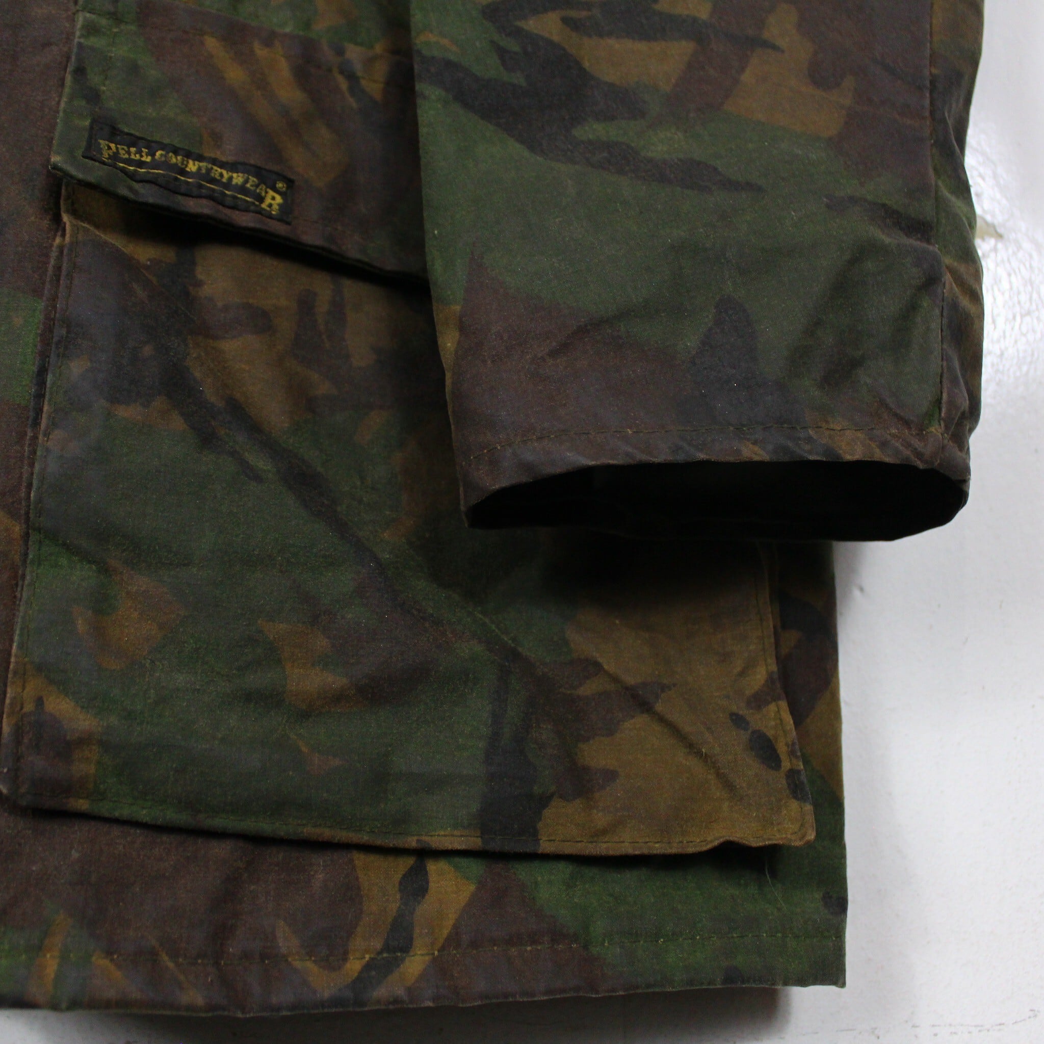 オイルドジャケットといえば無骨さに加え渋みのあるアイテムですが、全面にカモ柄を配した稀有な1着。