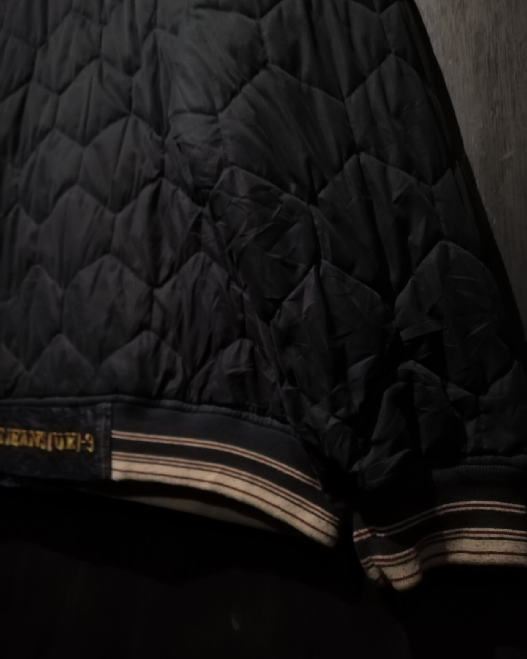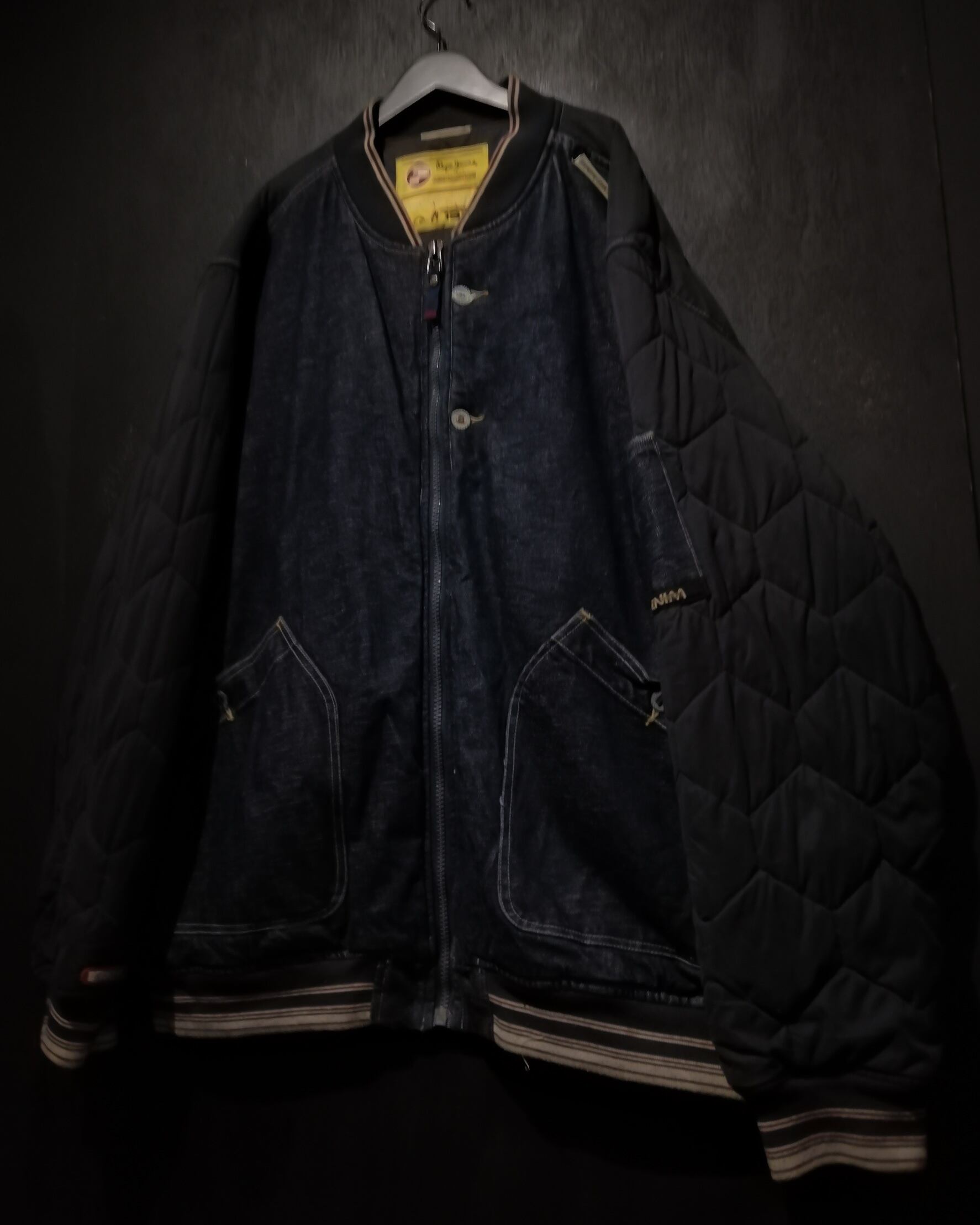 キルティングのボディをベースに、前身頃にインディゴブルーのデニムを切り替えたブルゾンジャケット。