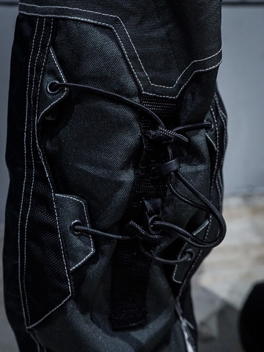 ハリのあるグレーのボディをベースに随所にタフなブラックの生地を切り替え、レーシングらしいギミックを盛り込んだ1本。