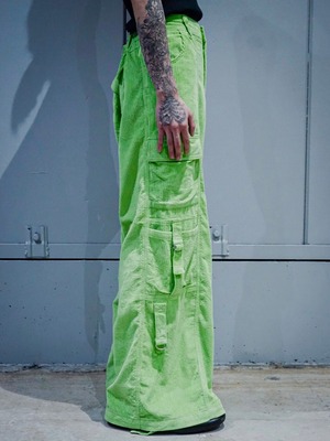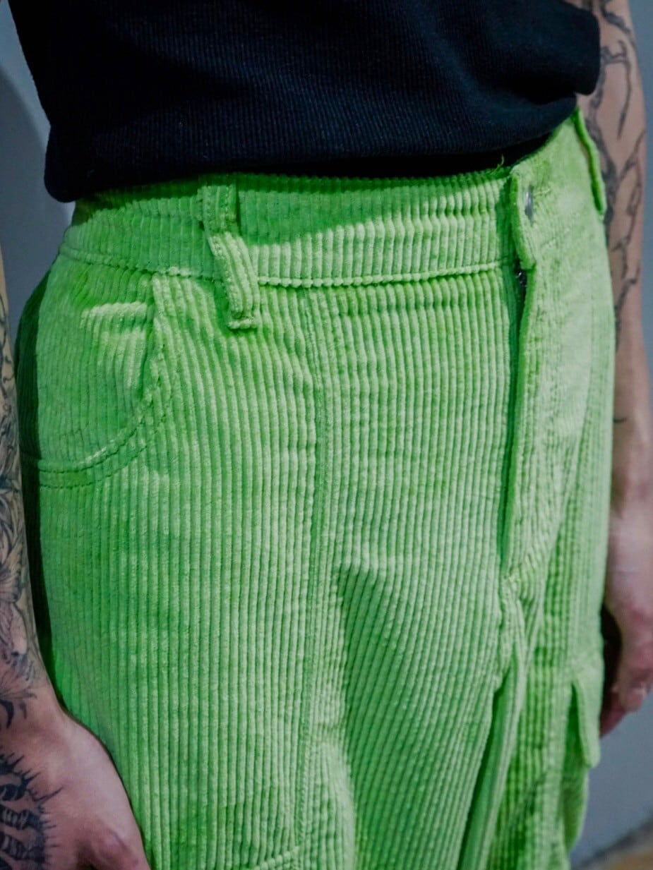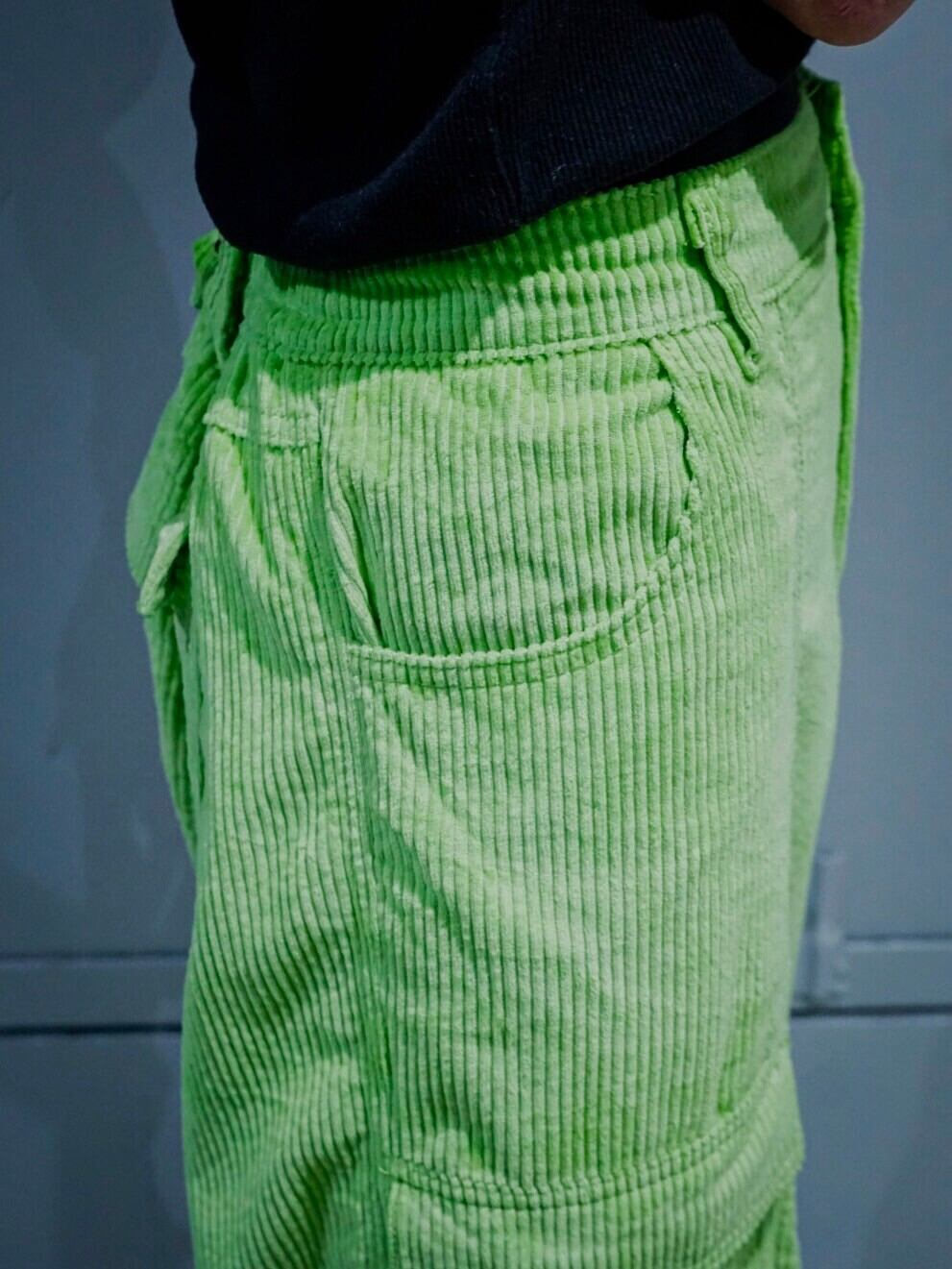 太畝のネオングリーンのコーデュロイを用いた、稀有なレイヴパンツをご紹介致します。