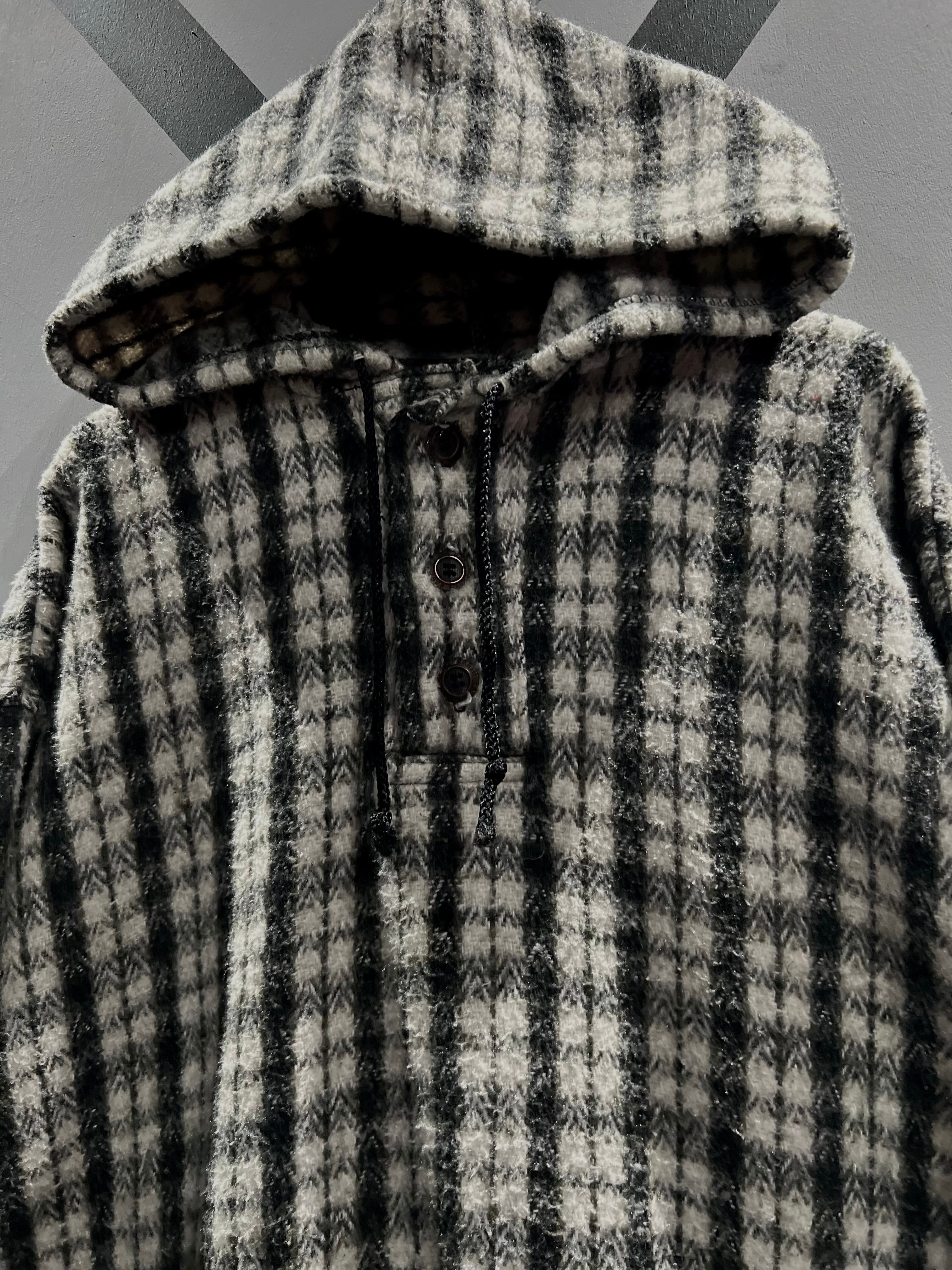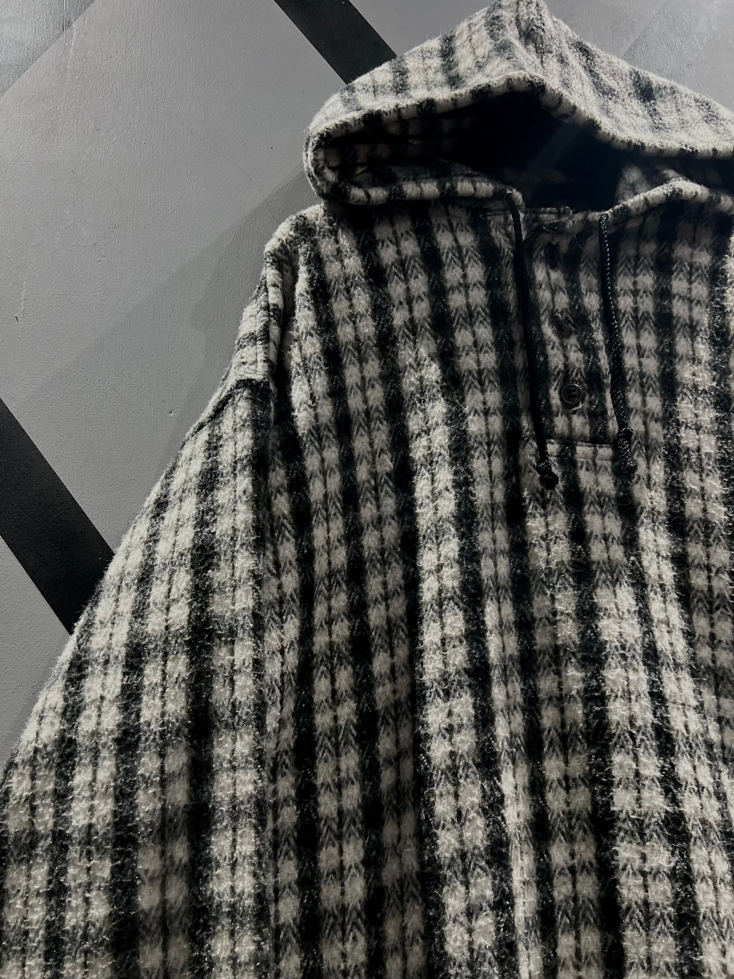 フワッと柔らかく、肌触りの良いコットン×アクリルのボディに、今季超気分なチェックをモノトーンで載せたメキシカンパーカー。ボディにラメ糸を織り込むことで少し輝きがプラスされ、落ち着きながらも存在感をしっかりと放ってくれます。