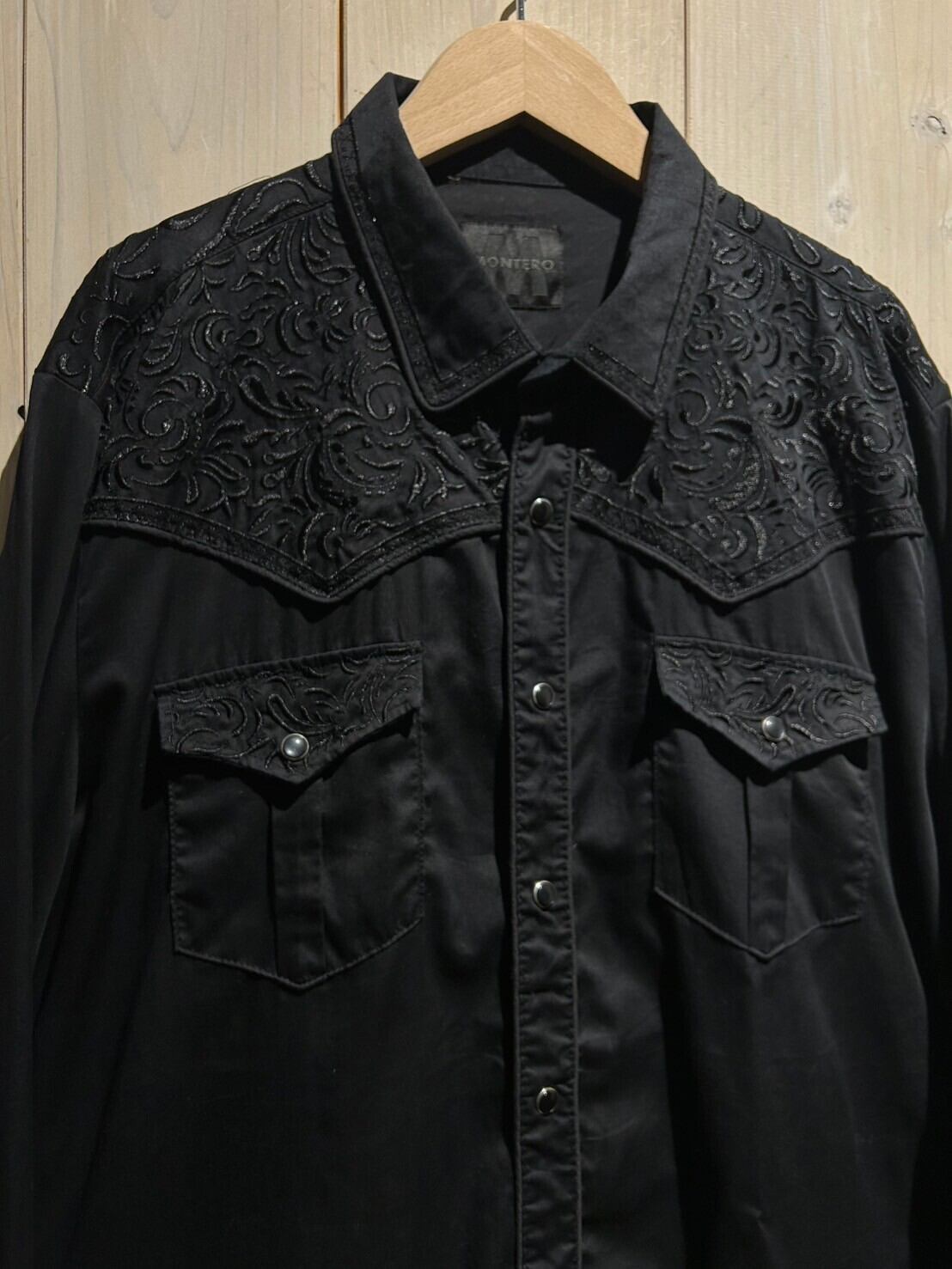 そしてパイピングやパールスナップボタンまで黒で纏められ、ウエスタンシャツの中でもオールブラックは珍しいかと。
