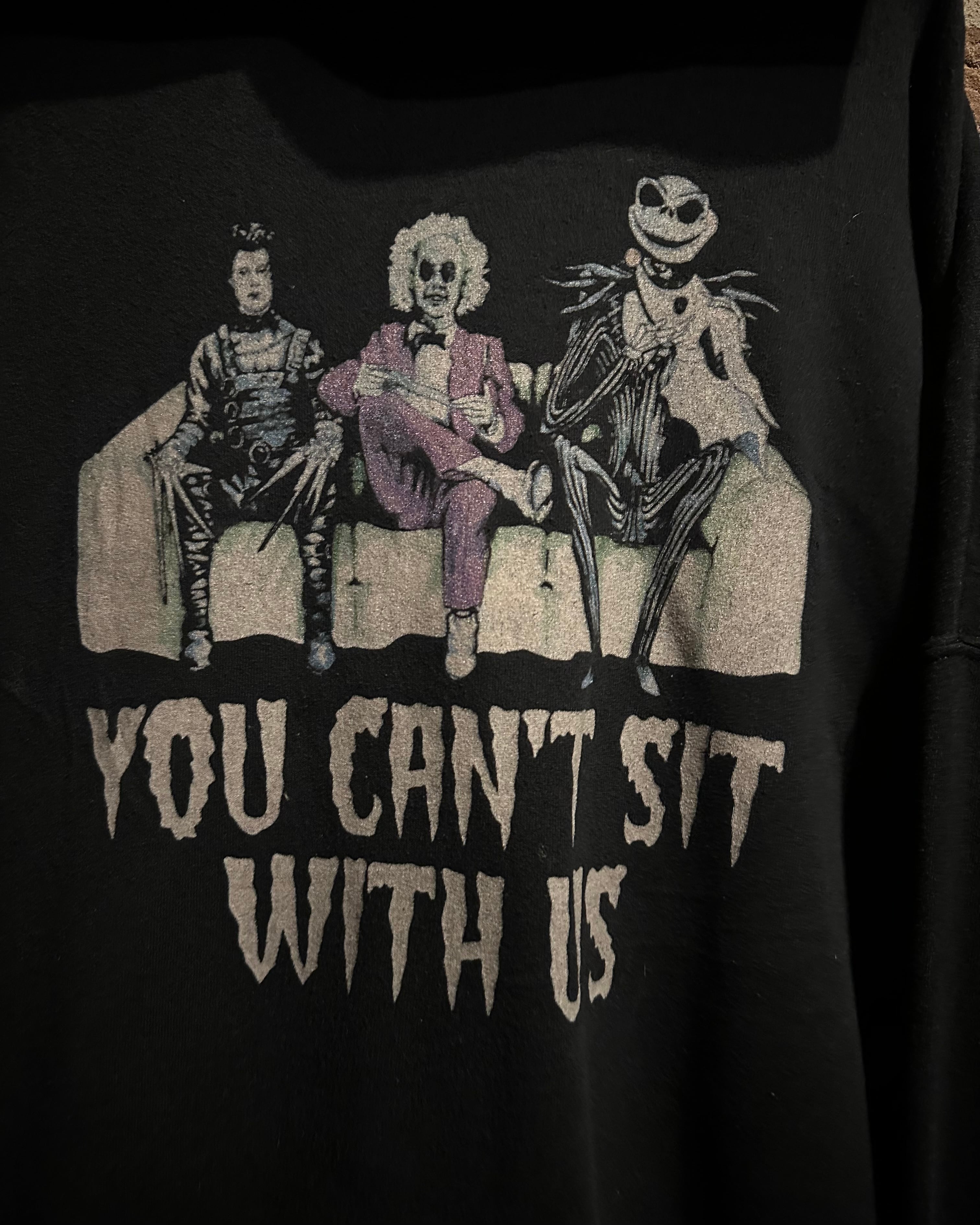 ビートルジュース、シザーハンズ、ジャックの3人が座っているデザイン。"You can't sit with us"前述した通り、悪そうで悪くないぞと言っているようです。