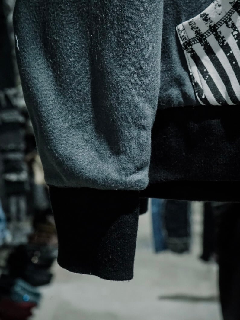 美しくグラデーションがかったフェード、そしてデザインのノリが見事にマッチ、雰囲気をムンムンに漂わせます。この手のデザインでファッションに落とし込めるアイテムって非常に少ないんですが、これめちゃくちゃイケてます、、、