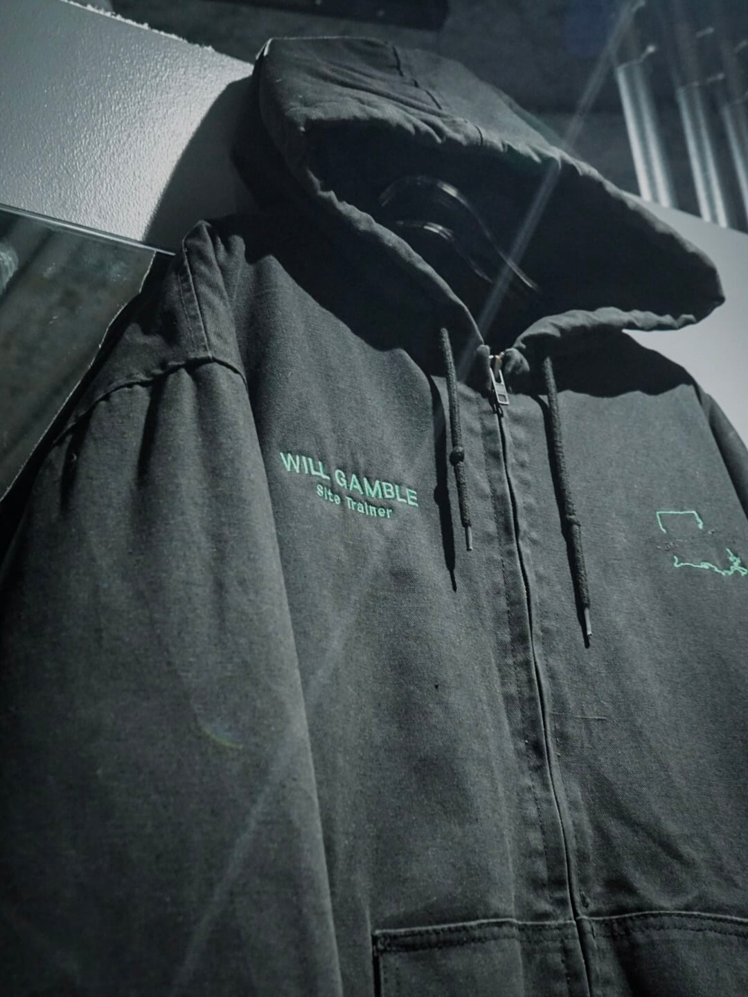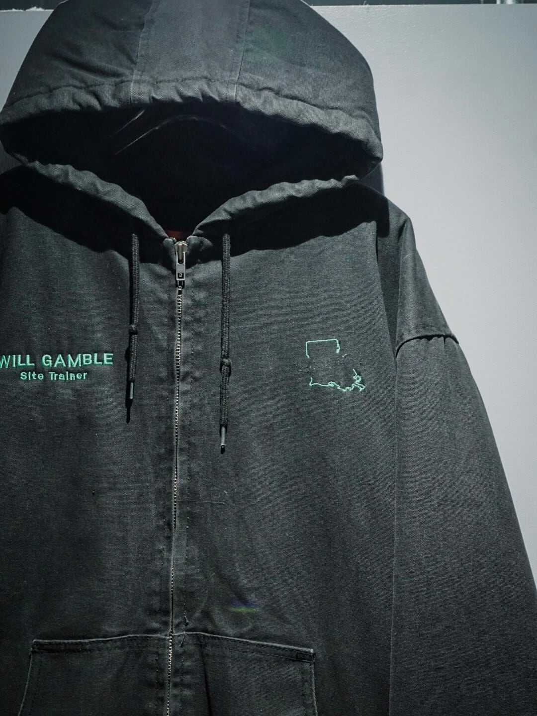 美しいフェードの効いたボディに、刺繍デザインが施された古着ならではの退廃的な表情を見せるダックジャケット。