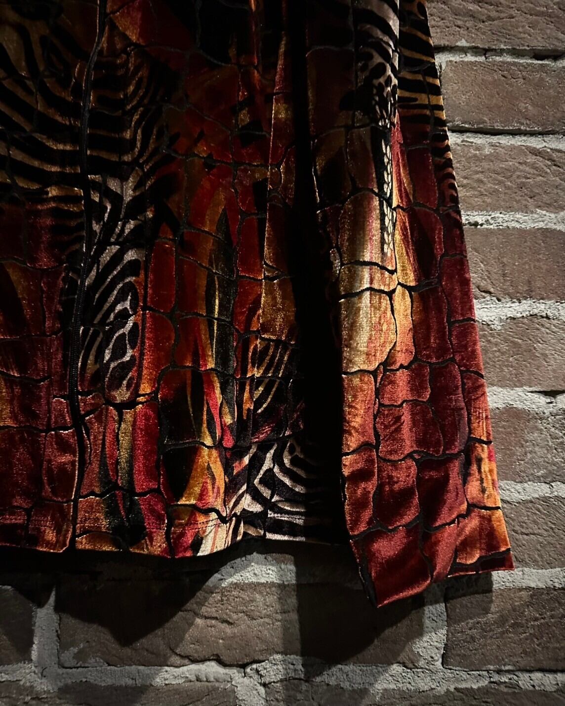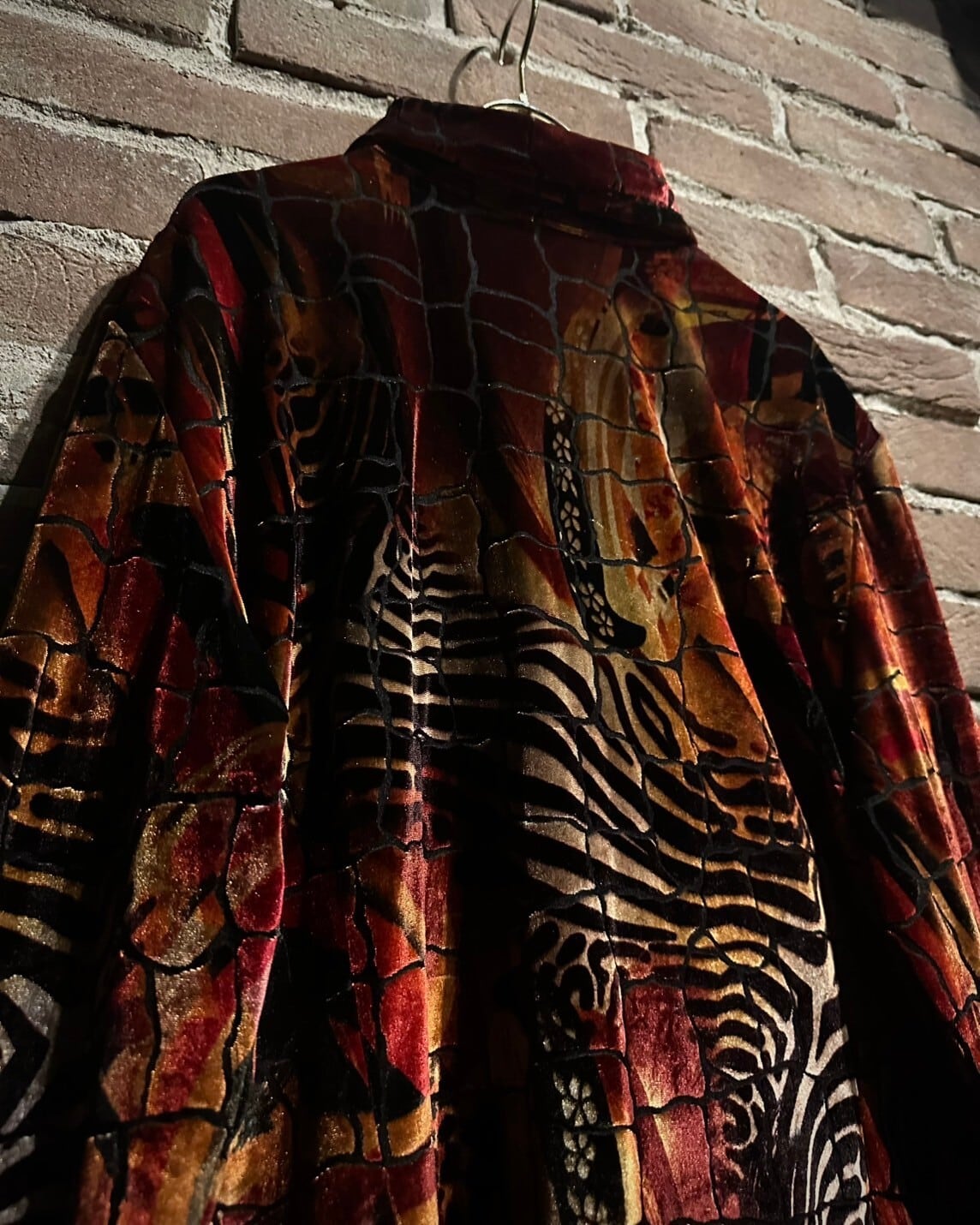 上質なベロアの鈍い光沢が非常に美しい、、、光の当たり加減で表情が変化し、アニマル柄と相まって妖艶な雰囲気を漂わせます。