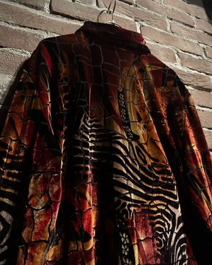 もっちり柔らかく、手触り滑らかなベロアを用いたボディに、ゼブラやクロコダイルなどのアニマル柄を載せたジップアップジャケット。