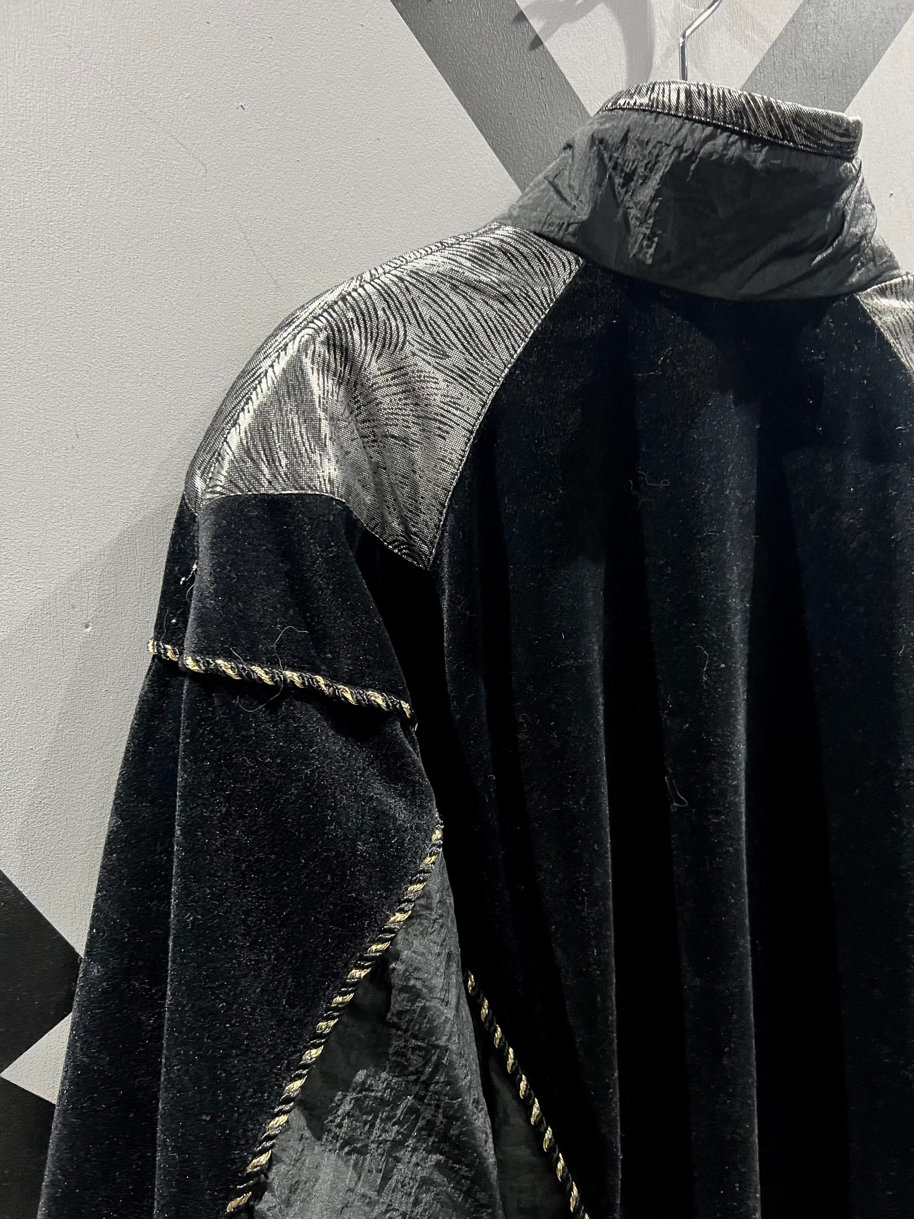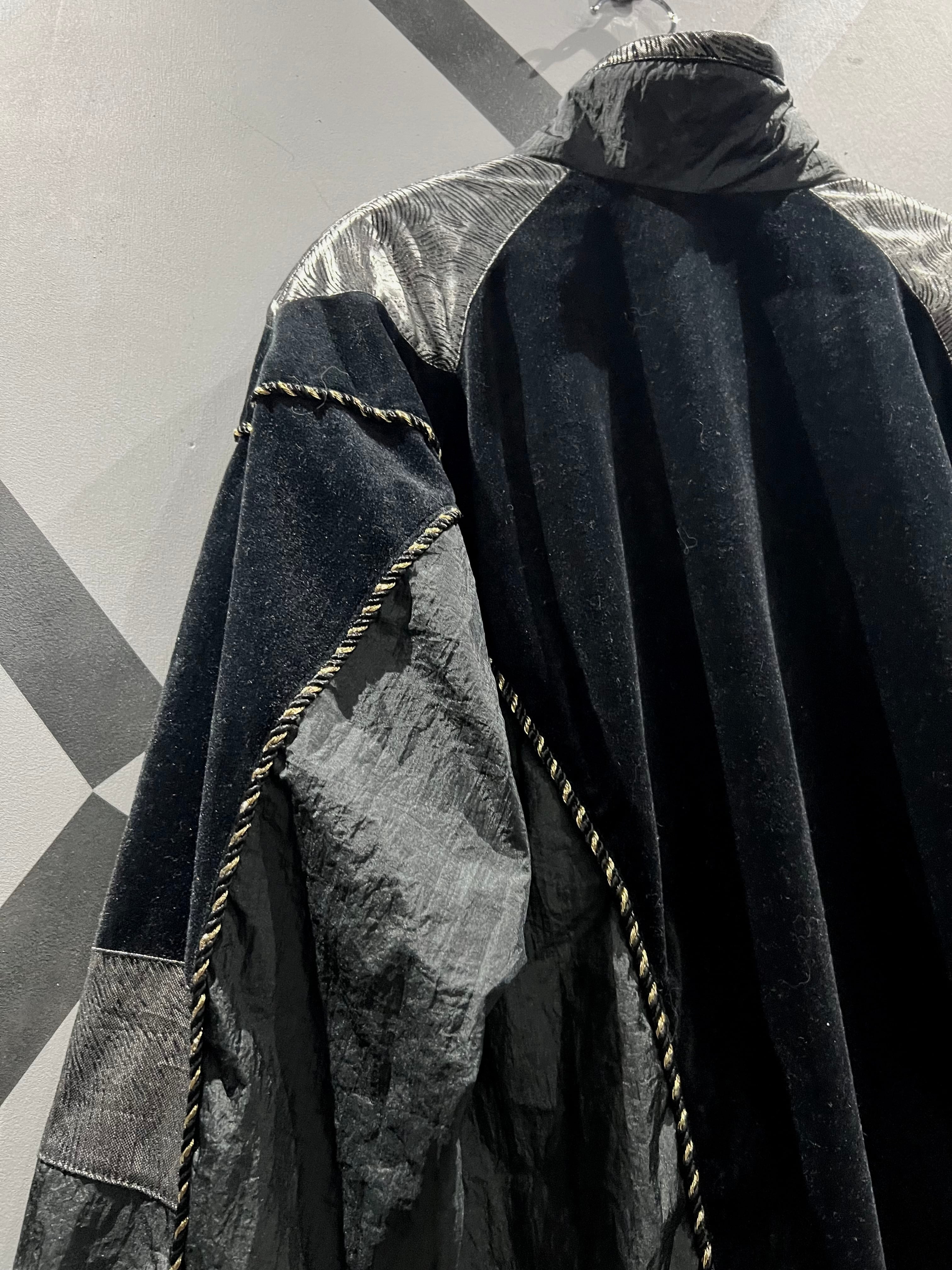 ハリのあるナイロンをベースに、鈍い光沢を放つベロアを切り替えた当店らしいモードな雰囲気を漂わせるジャケット。
