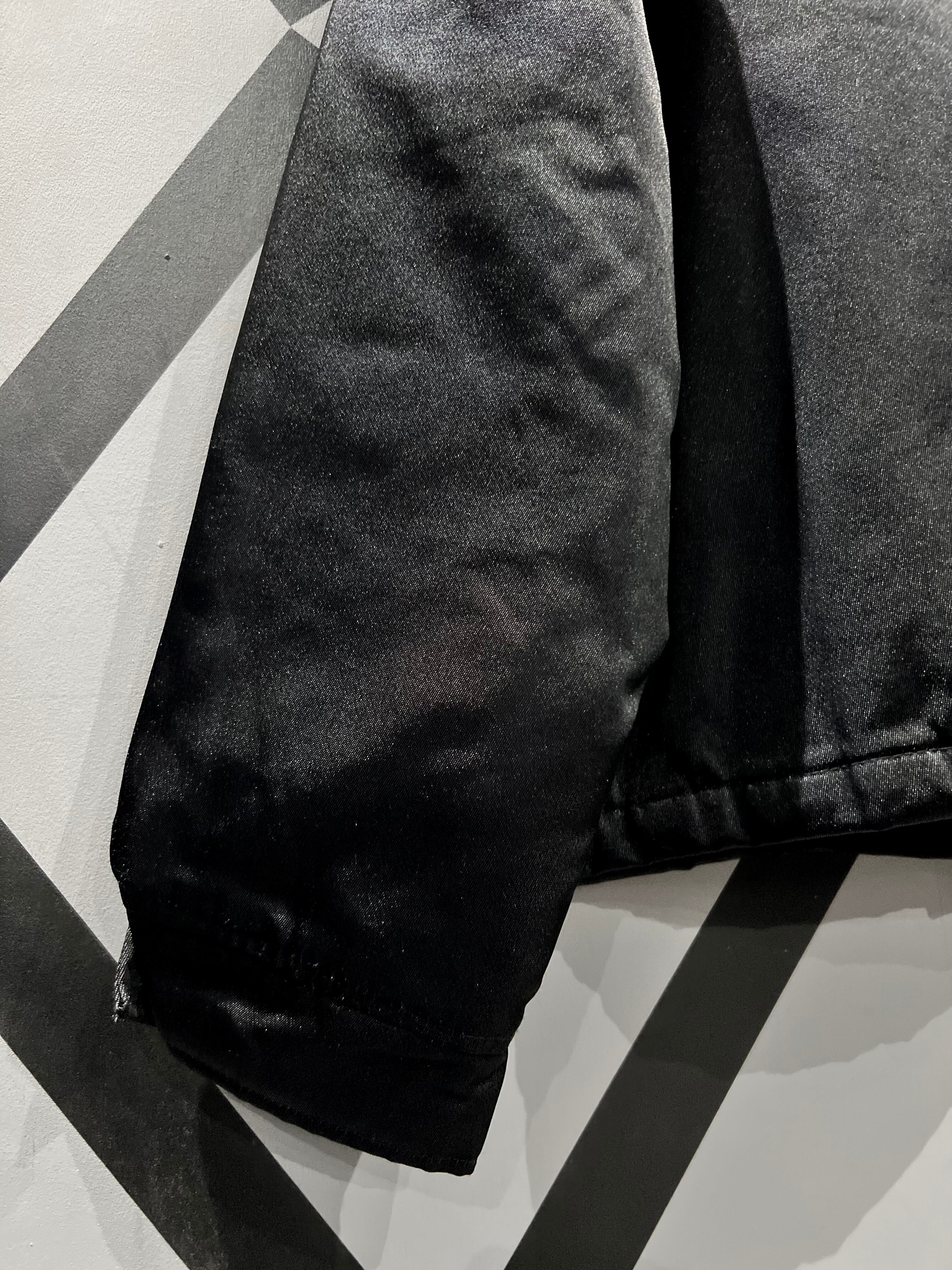 光沢を帯びたハリのあるブラックナイロンをボディに用いた 、1990年代を代表するB-boyブランド"PHAT FARM"の"ブートレグ"のトラッカージャケット。