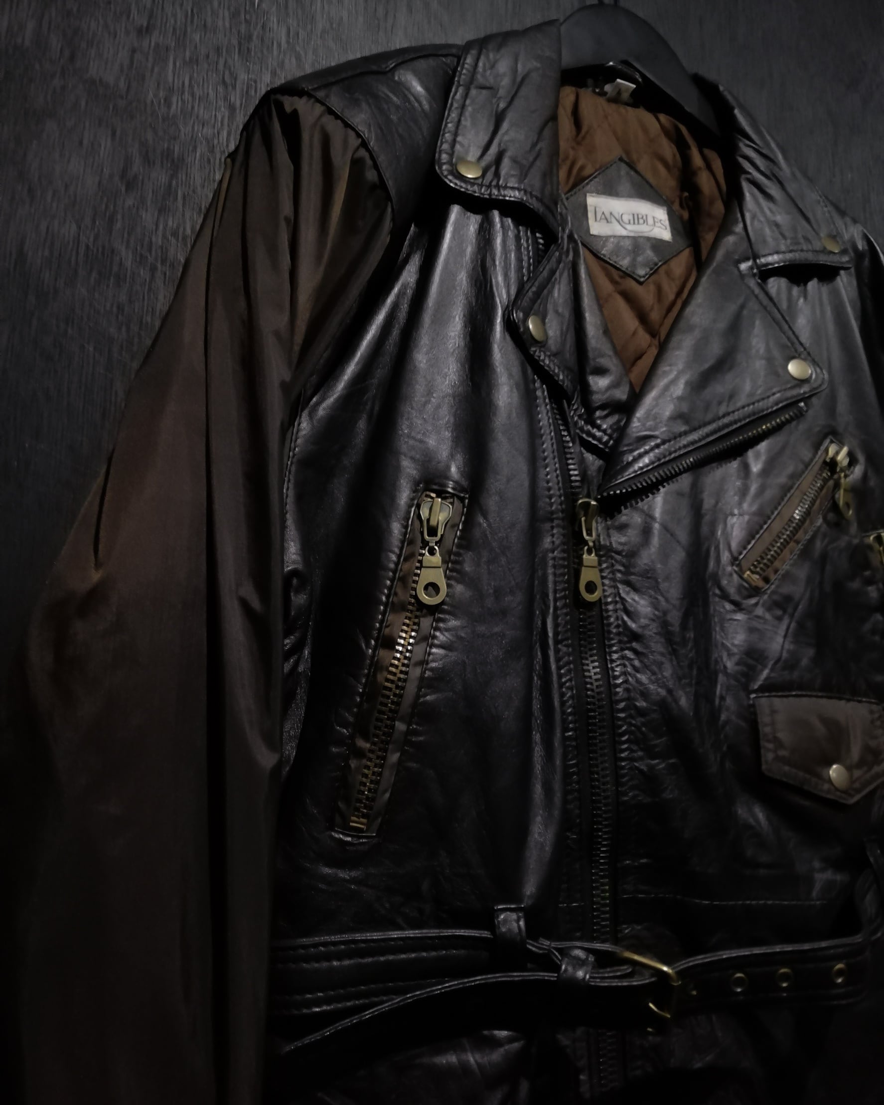 飛行服にルーツを持ち、その後バイクやロックなど様々なカルチャーと結びつきながら進化を遂げたダブルライダースの形。それ故に着丈が短いものが見つかるのがほとんどですが、こちらは稀有な着丈長めのミドル丈サイジング。
