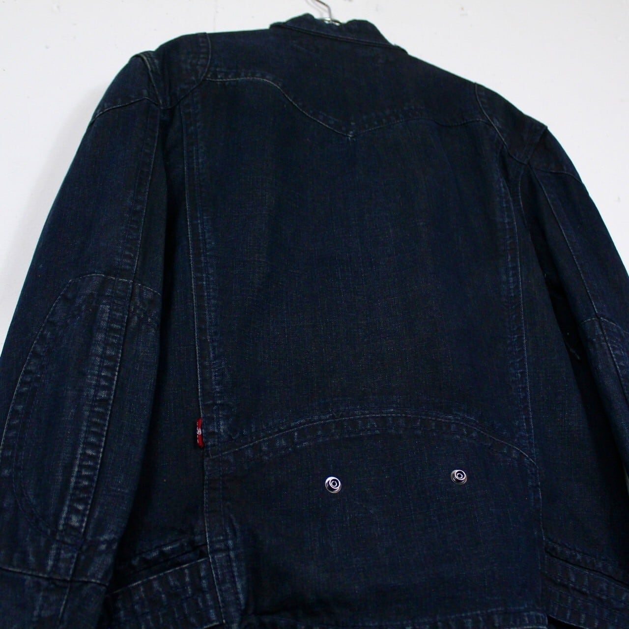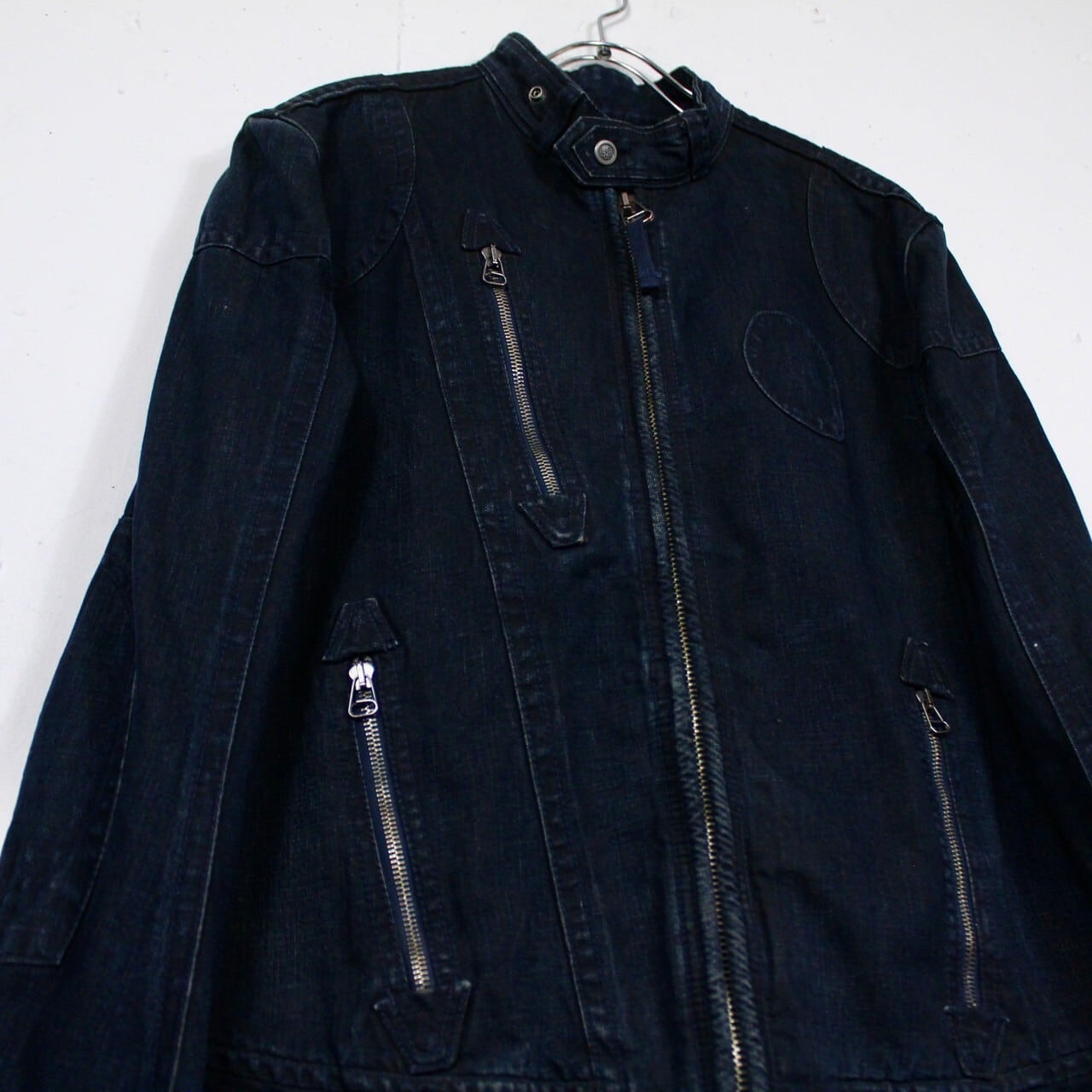 コットン×リネンを混紡した濃紺のデニム生地をボディに使用した"ユーロリーバイス"のシングルライダースデニムジャケット。