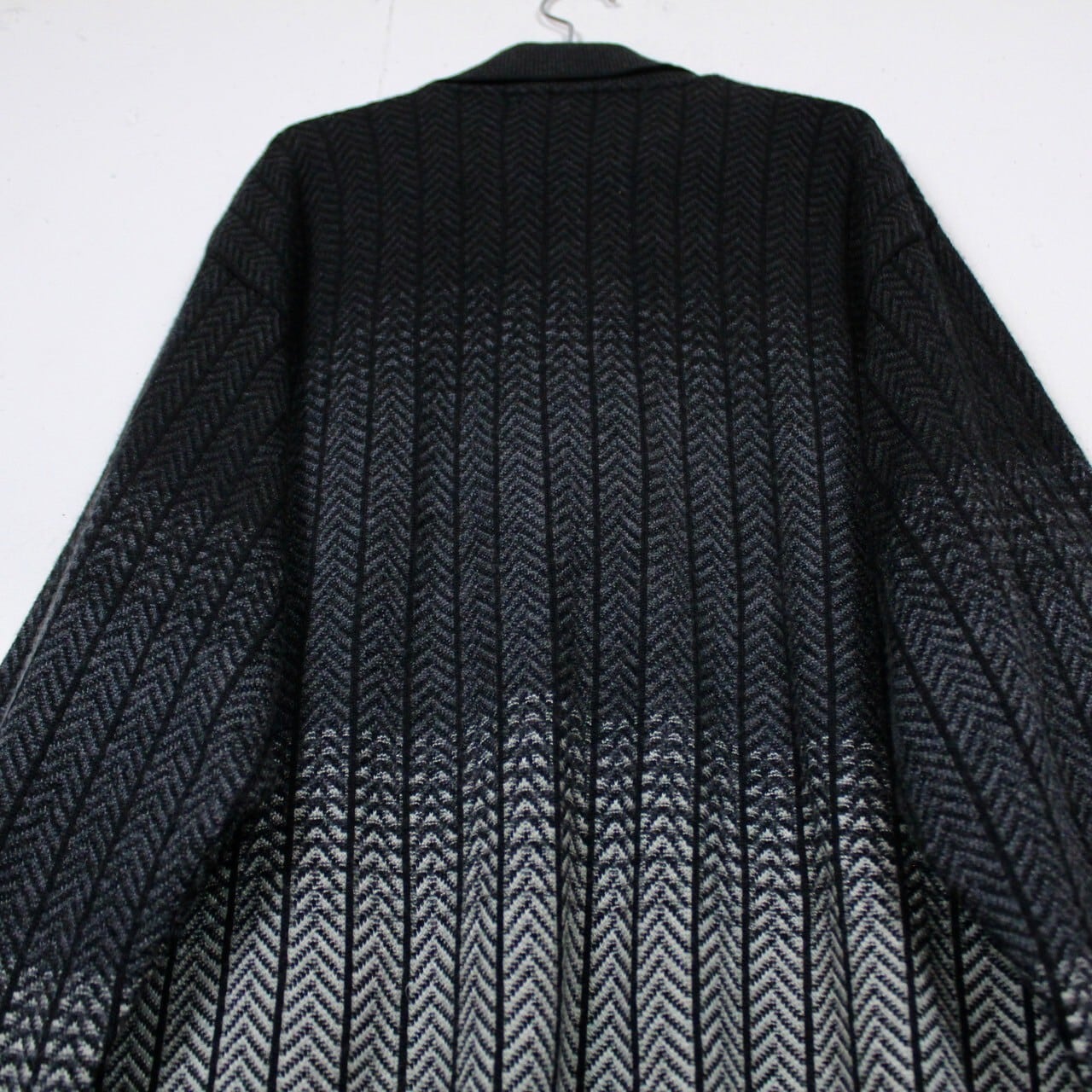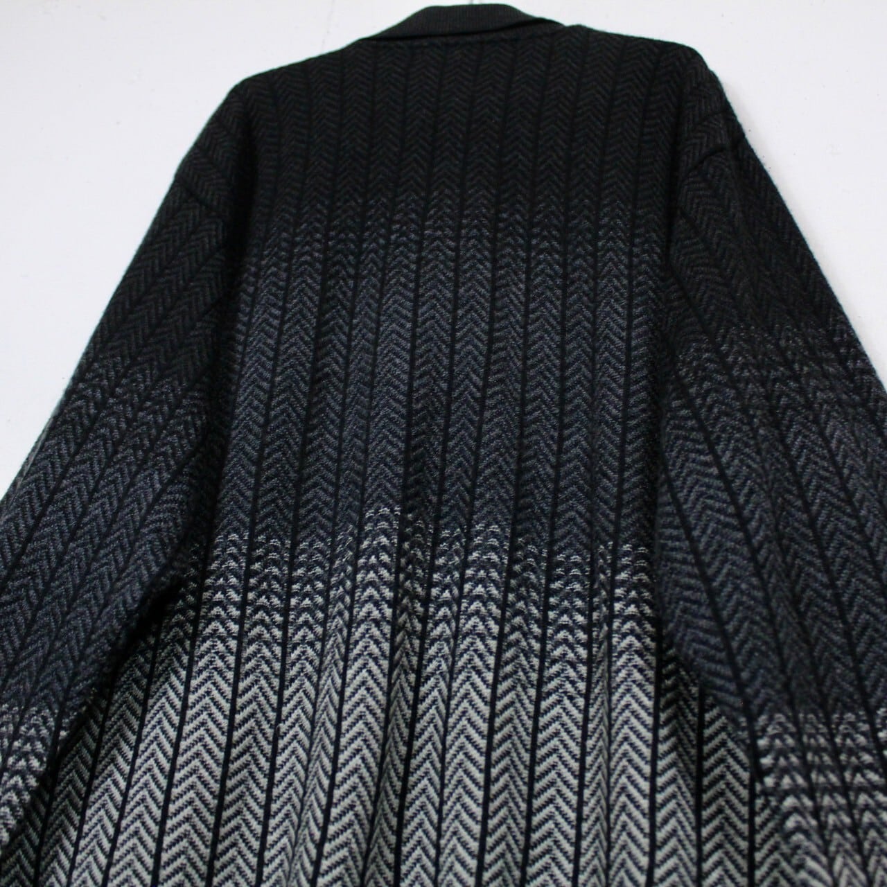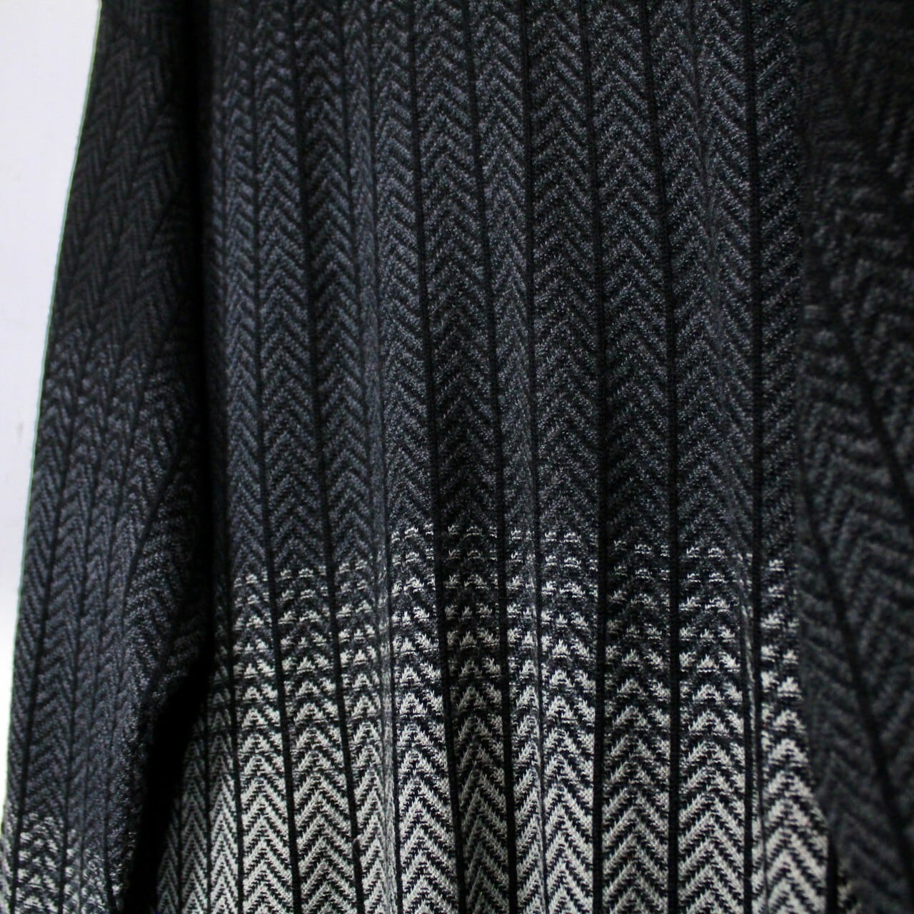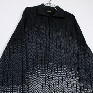 黒からライトグレーへも移り変わるグラデーションに、ジグザグ状の柄を載せたニットポロ。