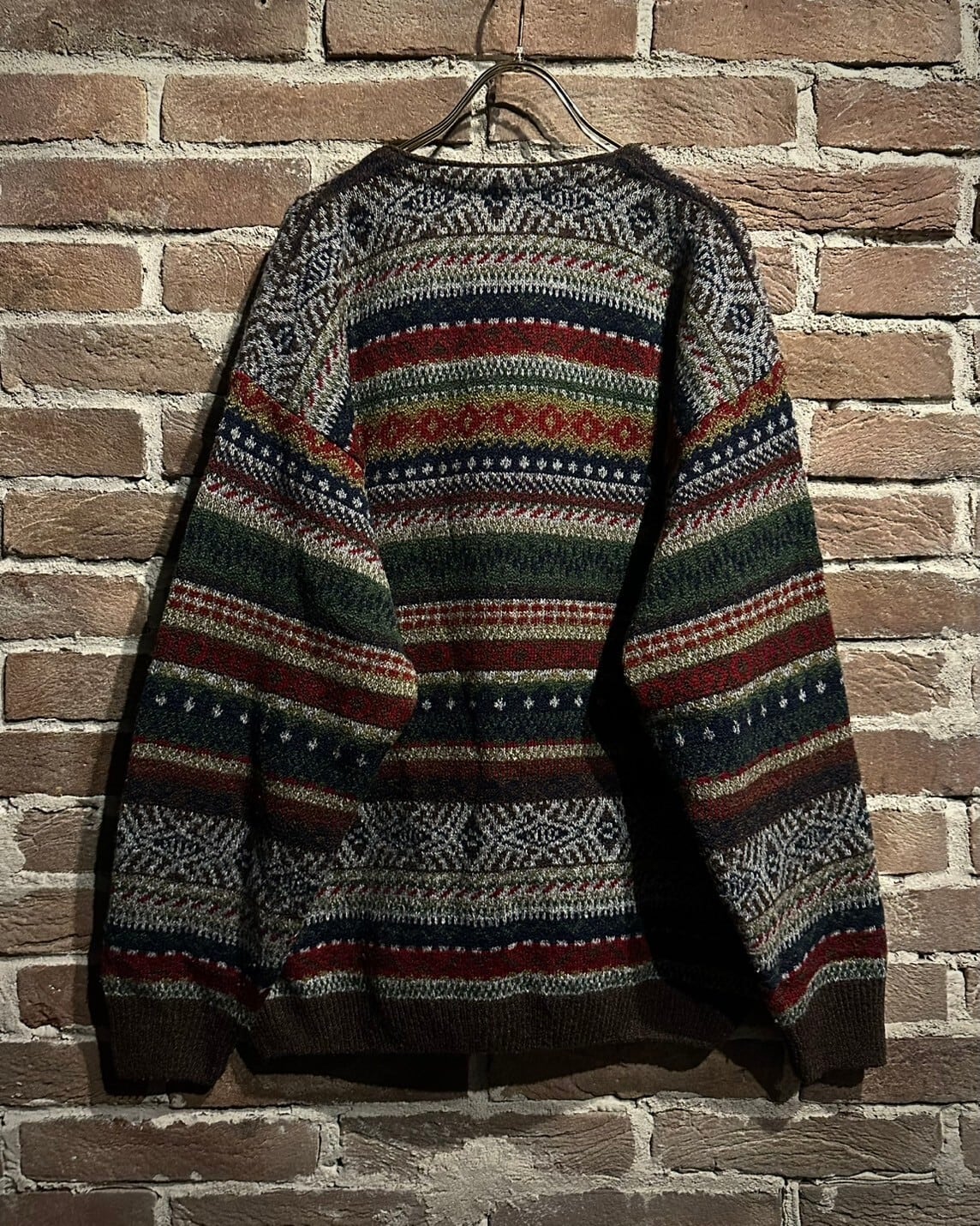 赤、グレー、緑、ネイビーなどの多彩なカラーリングでボーダーを表現したユーロヴィンテージ、イタリーメイドのニットカーディガン。